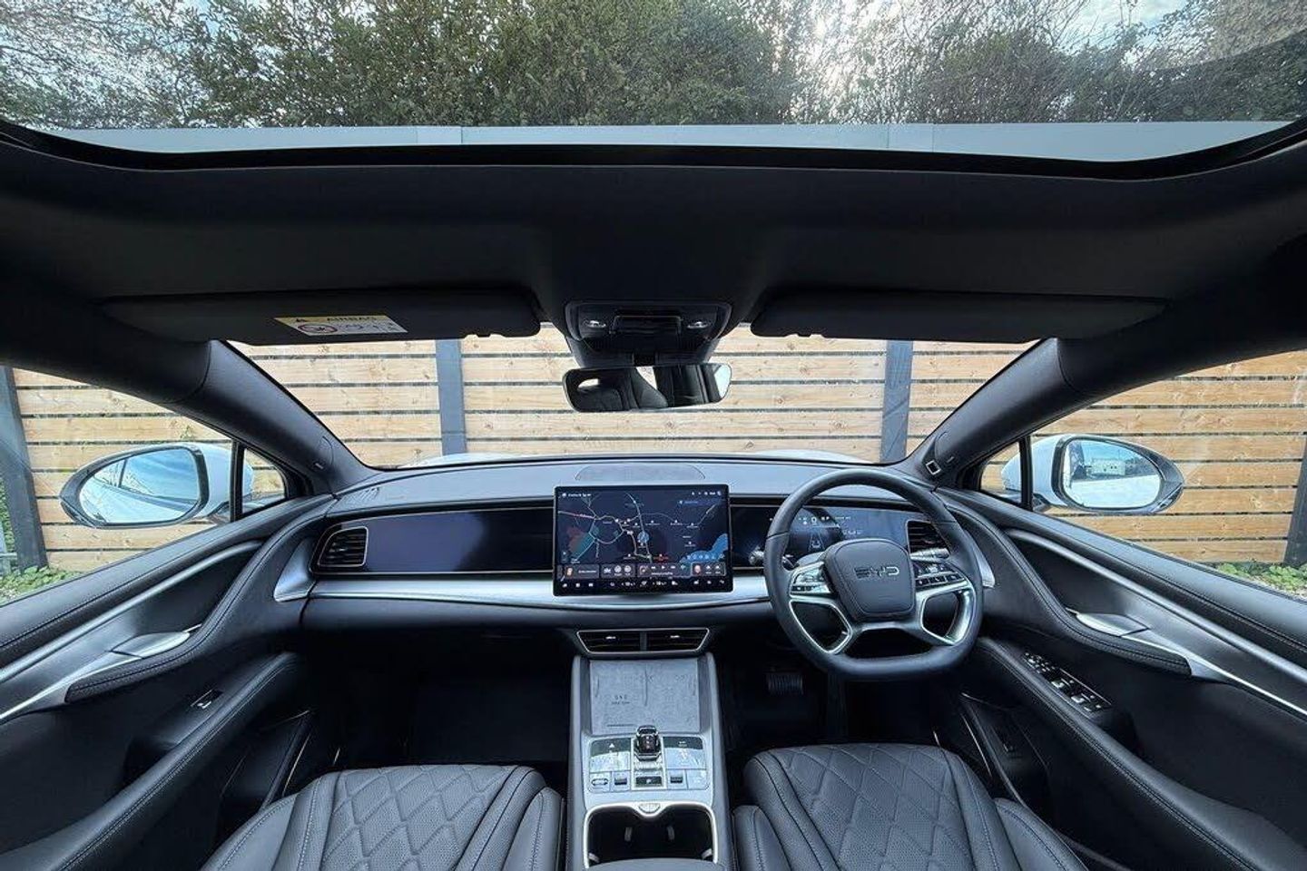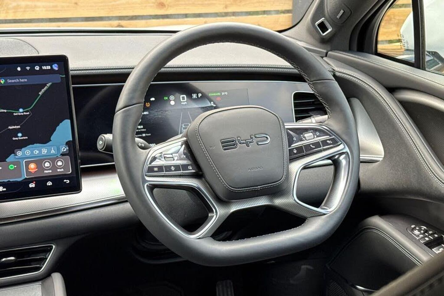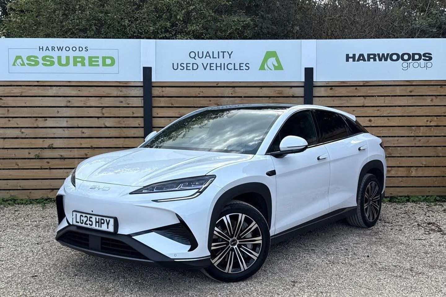 SATELLITE NAVIGATION, PANORAMIC SUNROOF WITH ELECTRICALLY ADJUSTABLE BLIND, HEADS-UP DISPLAY, ELECTRIC TAILGATE WITH KICK TO OPEN FUNCTION, DUAL ZONE CLIMATE CONTROL, PM2.5 PARTICULATE FILTER, NEGATIVE ION GENERATOR, HEAT PUMP, 10.25 DIGITAL INSTRUMENT CLUSTER, AUTOMATIC LED HEADLIGHTS WITH HIGH BEAM ASSIST, 360 CAMERA, FRONT AND REAR PARKING SENSORS, ADAPTIVE CRUISE CONTROL, SPEED LIMITER, ELECTRICALLY ADJUSTABLE FOLDING HEATED DOOR MIRRORS WITH POSITION MEMORY AND PUDDLE LIGHTS, DYNAUDIO SOUND SYSTEM, DAB RADIO, APPLE CARPLAY (R), ANDROID AUTO (R), VOICE CONTROL, BLUETOOTH, USB CONNECTIVITY, 15.6 ROTATABLE INFOTAINMENT TOUCHSCREEN, WIRELESS PHONE CHARGER, LEATHER MULTI-FUNCTION HEATED STEERING WHEEL, FINISHED IN POLAR WHITE, LEATHER UPHOLSTERY, ELECTRICALLY ADJUSTABLE HEATED AND VENTILATED FRONT SEATS, DRIVERS SEAT POSITION MEMORY, HEATED REAR SEATS, MULTI-COLOUR AMBIENT CABIN LIGHTING, REAR PRIVACY GLASS, 20 BI-COLOUR ALLOY WHEELS, RAIN SENSING WINDSCREEN WIPERS, ISOFIX, ELECTRONIC HANDBRAKE WITH HILL HOLD, KEYLESS ENTRY, PUSH BUTTON START, TYRE PRESSURE MONITORING SYSTEM, TRAFFIC SIGN RECOGNITION, FRONT & REAR COLLISION WARNING, FRONT AND REAR CROSS TRAFFIC ALERT AND BRAKING, BLIND SPOT DETECTION, DRIVER FATIGUE MONITOR, LANE CENTRING CONTROL, AWD ALL WHEEL DRIVE, AUTOMATIC GEARBOX, 91.3KWH BYD BLADE BATTERYThis car comes with the remainder of the manufacturer's warranty (details on request), a thorough history check, comprehensive service history and has been prepared by our manufacturer trained technicians. We are proud to be part of the Harwoods group, a family run business established in 1931. If this isn't the car for you, our wider selection of BYD stock includes Active, Boost, Comfort, Design and Excellence specifications including 360 Cameras, panoramic sunroofs, heat pumps, adaptive cruise control, AWD. Other colour options include Black, Blue, Silver, White, Red, Green and Grey as well as Tahiti & Black interiors.-SUNROOF, 360 CAMERA, SAT NAV