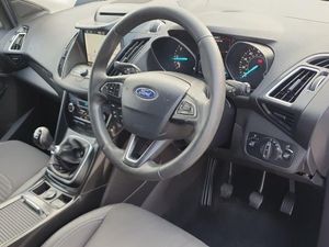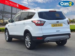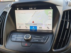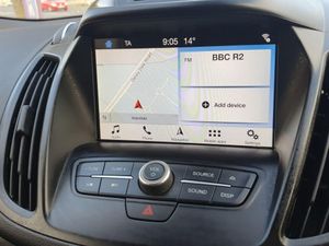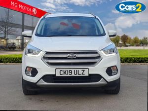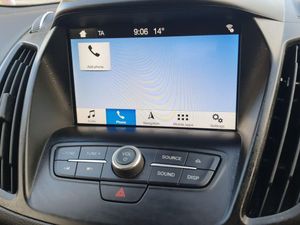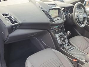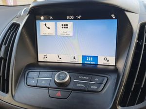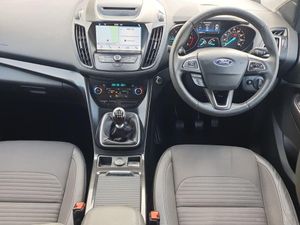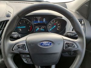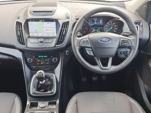 Apple car play/Android Auto, EPAS, Hands free telephone, Trip computer, Auxiliary socket for external device, Remote audio controls on steering wheel, USB connection, Auto dimming rear view mirror, Automatic halogen headlights with LED daytime running lights, Body colour bumpers, Body colour rear spoiler, Electrically operated and heated door mirrors with side indicators, Electrically operated front and rear windows with global closing, Front fog lights, Front scuff plate, Power folding door mirrors, Quickclear heated windscreen, Rain sensor windscreen wipers, Tailgate wash/wipe, Twin exhausts and rear diffuser, 6 way manually adjustable passenger seat with lumbar support, 60/40 split/folding rear back and cushion, Auxiliary power socket in luggage area, Centre console with stowage tray/bottle holder/CD stowage/front and rear 12V power point, Driver/passenger front seatback pockets, Dual electronic automatic temperature control, Folding rear centre armrest, Footwell courtesy lights front and rear, Front floor mats, Front head restraints, Front overhead courtesy lights with theatre style dimming and delay, Front/rear reading lights, Isofix system on outer rear seats, Leather steering wheel and gear knob, Multi-colour ambient interior lighting, Part leather upholstery, Reach + rake adjustable steering column, Rear floor mats, Rear head restraints, Sports style front seats, Stowage unit in upper instrument panel, Tie down hooks, Tonneau cover, Variable intensity instrument illumination, Appearance pack - Kuga, 3 point seatbelts on all 3 rear seats, ABS/EBD, Airbags - front driver/passenger, front and rear curtain, Drivers knee airbag, EBA, Electric traction assist system, Electronic Stability Programme, Front passenger airbag deactivation switch, Hill start assist, Intelligent Protection System (IPS), Tyre pressure monitoring system, Immobiliser, Keyless entry, Keyless start with 'Ford Power' starter button, Locking wheel nuts, MyKey system, Remote central locking, Thatcham Cat.1 alarm, Mini steel spare wheel