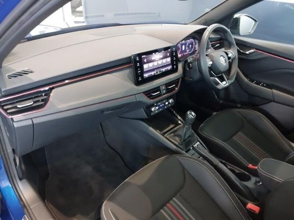 Virtual cockpit with 10.25" display, 18" Ursa black diamond cut alloy wheels, Light and view plus package - Kamiq, Bluetooth system, Front assist system, Advanced driver attention and drowsiness monitor, Rear parking sensors, Speed limiter, Voice control system, Wireless smartlink, 4 USB C ports, 9.2" Skoda navigation display, LED daytime running lights, LED high beam, LED low beam, LED third brake light, Dual zone climate control, Monte Carlo cloth upholstery