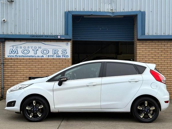 2016 (16) Ford Fiesta 1.25 Zetec White Edition 5 door hatchback.The vehicle comes in stunning Frozen white & is appearing in very good condition.The Fiesta is showing a genuine mileage of 109,000 miles.The car will come with a FULL MOT.The car comes with the following features;Euro 615'' gloss black Zetec alloy wheelsGood tyresColour coded bumpersLED DRL'sFront fog lightsBlack roofBlack mirrorsZetec cloth interior trimRadioSatellite NavigationBluetoothAux/USB inputTrip computerHeated windscreenRev counterElectric windowsElectric mirrorsPower assisted steeringRemote central lockingFront & rear headrests5 speed manual gearboxReliable, economical 1.25 petrol engineThe Fiesta comes with SERVICE HISTORY - This consists of 8 services, recently serviced by us.Both the Interior & Exterior of this car are in very good condition. Cosmetically I would say it was extremely good apart from the odd minor imperfection. The car drives exactly as it should. I welcome any inspection.All of our vehicles are fully HPI clear and have never been involved in any accidents or had any insurance claims made against them.The Vehicle comes with V5, handbooks, service book/printout, current MOT & 1 key.-15'' ALLOYS | SAT NAV | VALUE