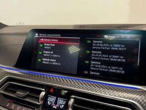 21in-22in Alloy Wheels - M Light 818 Bi-Colour with Mixed Tyres, 32GB Hard Disc Drive HDD Memory, Active M Differential, Active Protection, Adaptive M Suspension Professional, Air Conditioning - Automatic with Four Zone Control, Airbags, Alarm System, Ambient Lighting, Attentiveness Assistant, Automatic Start-Stop Button, Automatically Dimming Rear View Mirror, BMW Connected Package Professional, BMW ConnectedDrive Online Services, BMW Gesture Control, BMW Individual Headliner Alcantara Anthracite, BMW Individual High-Gloss Shadowline, BMW Individual High-Gloss Shadowline with Extended Contents, BMW Individual Instrument Panel Finished in Leather, BMW Individual Roof Rails High-Gloss Shadow Line, BMW Legal Emergency Call, BMW Live Cockpit Professional, BMW TeleServices, Brake Pad Wear Indicator, Brake System, Bumper System, Centre Lock Switch - Driver and Front Passenger Door, Child Seat ISOFIX Attachment - Outer Rear Seats - includes Top Tether, Closing System with Central Locking, Comfort Access System, Crash Sensor - Activating Central Locking Release - Hazard Warning Lights - Fuel Cut Off - Interior Lighting and Activation of the Safety Battery Clamp, Cruise Control with Brake Function, Cup Holders - Front x2 and Rear x2, DAB Tuner, DSC - Dynamic Stability Control Plus, Daytime Running Lights - LED, Door Pockets - Front and Rear, Door Sill Strips, Drive Recorder, Driving Assistant, Dynamic Brake Lights with LED Technology, EPS - Electric Power Steering with Servotronic, Electric Windows - Front and Rear with Open-Close Fingertip Control - Anti-Trap Facility and Comfort Closing Function, Electrical Steering Column with Adjustable Height and Length, Electro-Mechanical Parking Brake with Automatic Drive-Away Release and Auto-Hold Function, Enhanced Bluetooth Hands-Free Facility with Wireless Charging, Expanded Exterior Mirror Package, Exterior Mirrors - Electrically Adjustable and Heated includes Integrated Direction Indicators, Favourite Buttons, Floor Mats - Velour, Follow Me Home Headlight Function, Head Restraints - Front Anti-Whiplash, Head-Up Display, Headlights - Adaptive LED, Headrests - All Seats, Heat Comfort Package - Front, High-Beam Assistant, Interior Light - Rear Centre, Interior Trim - Aluminium Crossline, LED Rear Lights, Light Inside Glove Compartment, Lockable Glove Compartment, Locking Wheel Bolts - Thatcham Approved, Loudspeaker System - Harman Kardon, Luggage Compartment - Light, Luggage Compartment Floor Panel with Integral Storage Tray, Lumbar Support - Driver and Front Passenger, M Compound Brake - Red High Gloss, M Leather Steering Wheel, M Multifunctional Seats for Driver and Front Passenger, M Seat Belts, M Sport Differential, M Sport Exhaust System, Mechanical Childproof Lock - Rear Doors, Multi-Function Controls for Leather Steering Wheel, Multifunctional Hooks, OBC - On Board Computer, Oil Sensor For Level and Grade, PDC - Park Distance Control - Front and Rear, Parking Assistant Plus, Power Sockets 12v - 2x Centre Console - 1x Luggage Compartment, Rain Sensor with Automatic Headlight Activation and Windscreen Wiper Control, Reading Lights - Front, Run-Flat Indicator, Safety Battery - Terminal Clamp, Seat Adjustment - Front Electric with Driver Memory, Seat Back with Flap Pocket, Seat Belts - Front and Rear - Seat Belt Stopper - Seat Belt Tensioner - Front and Outer Rear Seats - and Belt Force Limiter, Seat Heating - Front, Side Impact Protection, Speed Limit Display, Speed Limiting Function, Split Folding Rear Seats 40-20-40 Configuration, Steering Wheel - Gearshift Paddles, Storage Tray and Compartment with Lid in Centre Console, Sun Protection Glazing, Sun Visors with Illuminated Vanity Mirrors, TPMS - Tyre Pressure Monitoring System, Tailgate Automatic - Two Part Top-Hinged Section Which Can Be Opened Separately, Toolkit Located in Luggage Compartment, Two Tone Horn, Tyre Repair Kit, USB Connection - USB Type A 1.5A in Cupholder - USB Type C 3A in Centre Armrest, Vehicle Key, Warning Triangl