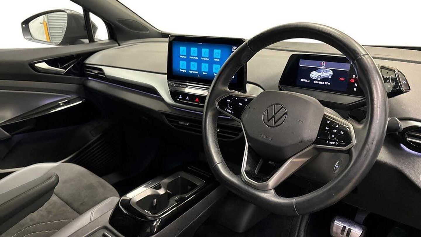 This 2022 Volkswagen ID.4 Pure Life is a Volkswagen manufacturer approved electric vehicle, offering a compelling blend of modern design and sustainable motoring. With a 55 kWh battery, this ID.4 provides a maximum range of 213 miles when new, making it a practical choice for both daily commutes and longer journeys. Charging is convenient, with a full charge at home using a 7kW charger taking approximately 7 hours and 30 minutes, while rapid public charging can replenish the battery from empty to 80% in as little as 38 minutes.The ID.4 Pure Life trim is designed for everyday usability, featuring a generous boot space that easily accommodates luggage, shopping, or sports equipment. This electric SUV stands out with its efficient electric powertrain and the assurance of Volkswagen's manufacturing approval, indicating a high standard of quality and reliability. Its thoughtful features and electric capabilities position it as a strong contender for those seeking an environmentally conscious and practical vehicle.-*2YR WARRANTY WITH VWFS PCP *