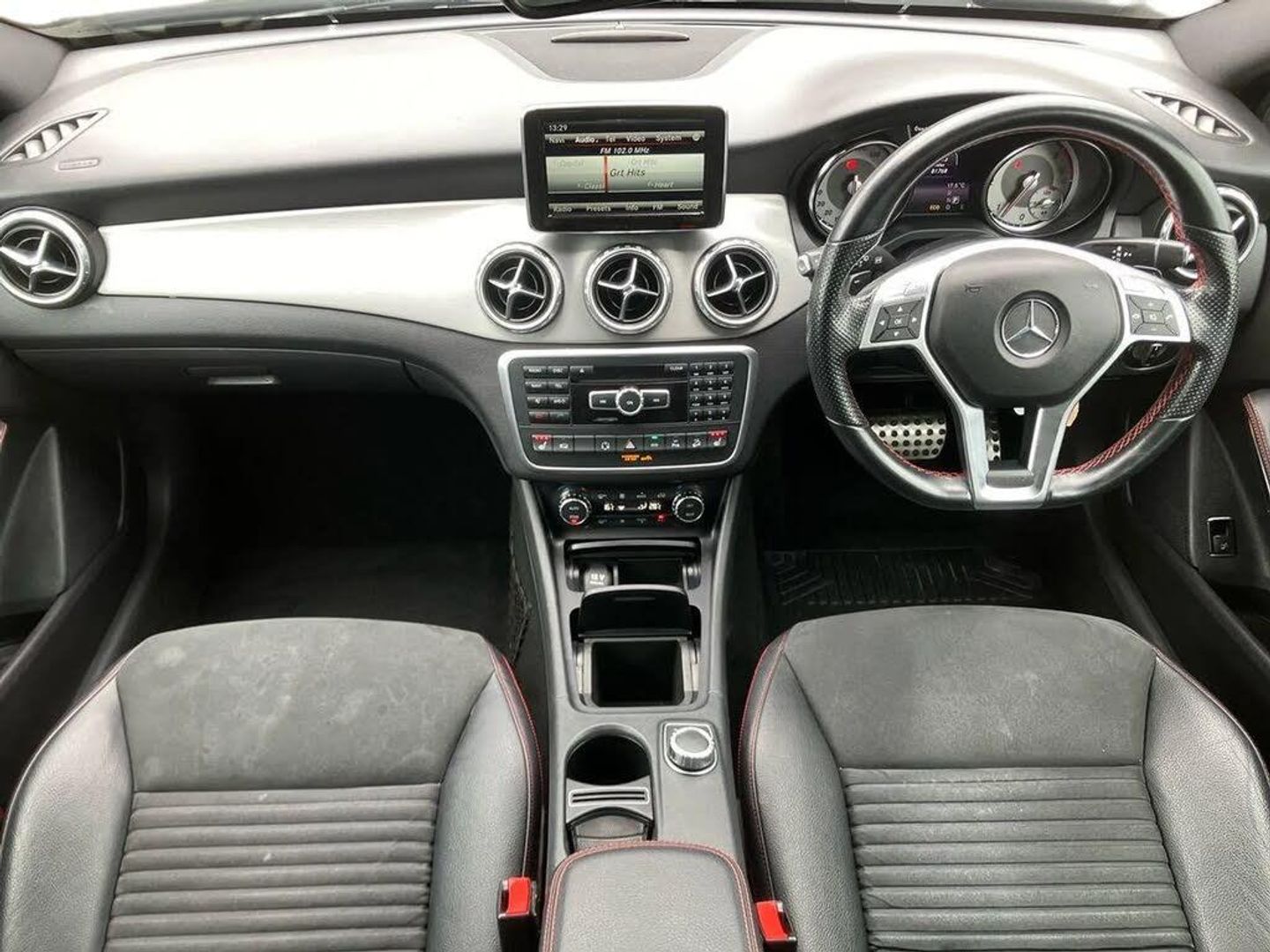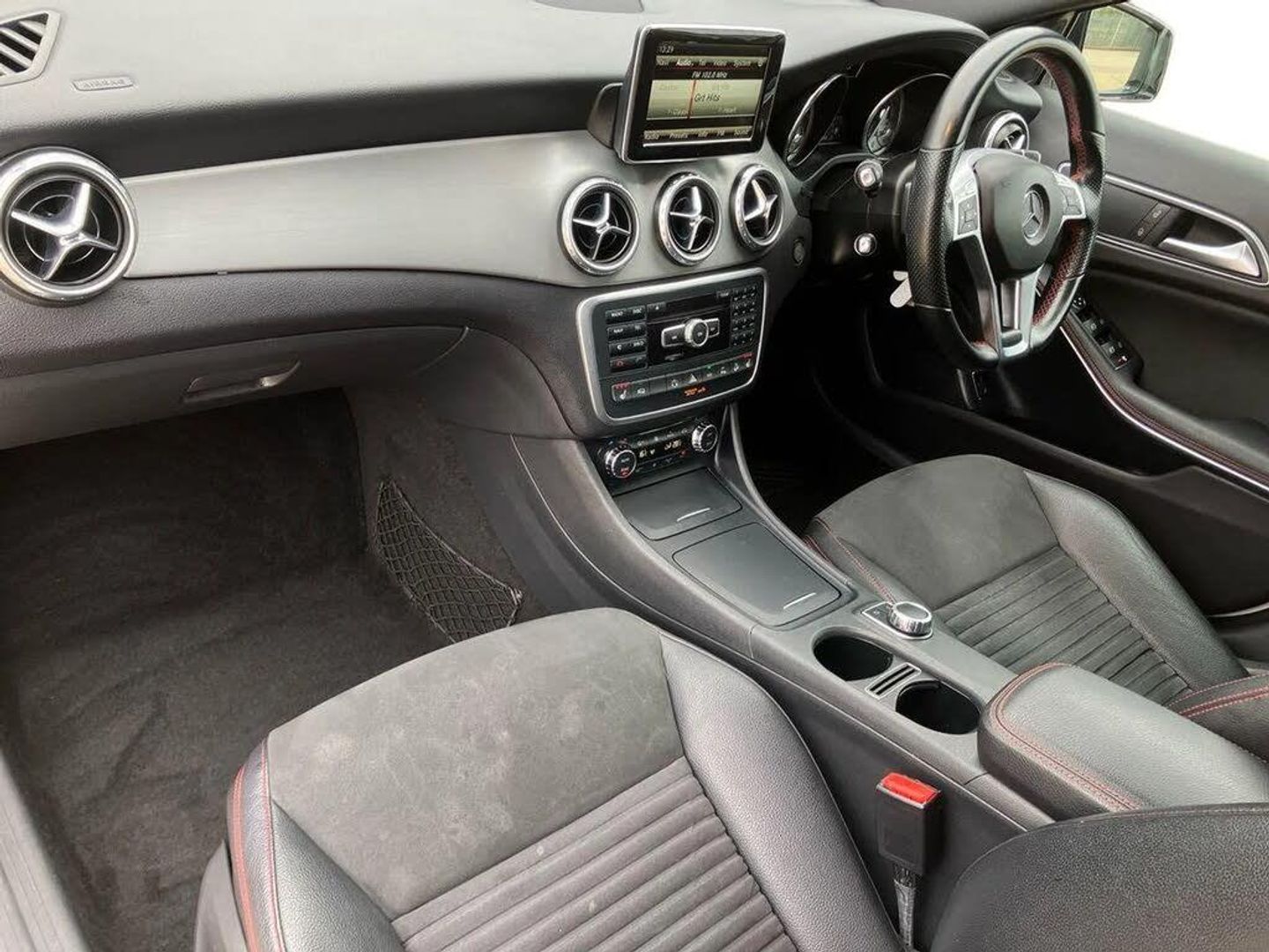 Active park assist with parktronic system,Attention assist,Bluetooth system,Collision prevention assist plus,Easy-pack tailgate - Powered opening/closing automatically,Instrument cluster,Low fluid warning light,Multi function trip computer,Outside temperature gauge,Reversing camera,Service indicator (ASSYST PLUS),Sports steering system,Comfort suspension,USB port,Adaptive brake lights,AMG body styling,Auto dimming interior + exterior mirrors,Automatic headlamp activation,Body colour bumpers,Body colour door handles,Body colour side skirt,Electric folding door mirrors,Electric front sliding and fixed rear panoramic glass sunroof,Electric front windows,Electric heated + adjustable door mirrors,Electric rear windows,Heated rear window with timer,Heated windscreen wash system,LED indicators in door mirrors,Matt titanium grey front and rear apron trim,Privacy glass,Radiator grille with 2 louvres in Silver with chrome trim,Rain sensor windscreen wipers,Roof spoiler,Twin chrome exhaust tailpipes,1/3 to 2/3 split folding rear seats,12V power socket in centre console,12V socket in luggage compartment,3 spoke flat bottom multifunction leather steering wheel,Ambient lighting,Ambient lighting in front headrests,AMG sports seats with integrated headrests,Auto Mercedes-Benz child seat recognition sensor,Centre console storage,Dual zone climate control,Footwell lights,Front centre armrest with storage compartment,Heated front seats,Height/reach adjustable steering column,Illuminated door sills,Illuminated glovebox,Isofix rear child seat preparation,Load securing rings in luggage compartment,Luggage compartment cover,Luggage compartment lighting,Luggage nets in boot,Overhead storage box/sunglasses holder,Parcel net in front passenger footwell,Parcel net on driver and front seat backrests,Rear armrest with 2 cupholders and load through provision,Sports pedals with rubber studs,Sunvisors with illuminated vanity mirrors,Storage Pack - GLA Class,3 rear 3 point seatbelts,ABS with Brake Assist,Active bonnet,Adaptive brake system,Brake calipers with Mercedes-Benz lettering + perforated brake discs,Child proof door locks,Crash responsive emergency lighting,Drivers knee airbag,Dual stage driver/passenger airbags,Electronic parking brake,ESP with ASR,Front and rear seatbelt reminder,Front passenger seat occupancy sensor,Front side airbags,Hill start assist,Tyre pressure monitoring system,Warning triangle and first aid kit,Window airbags,Alarm system/interior protection/immobiliser,Remote central locking,Chrome air vent surrounds,Leather gear knob with chrome insert,Light aluminium with longitudinal grain interior trim