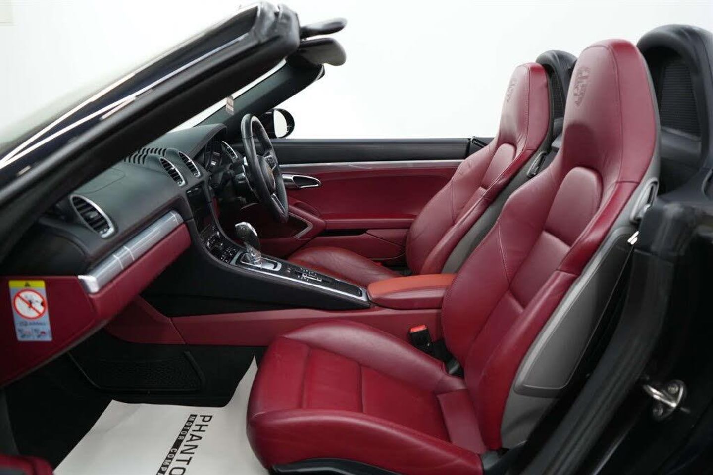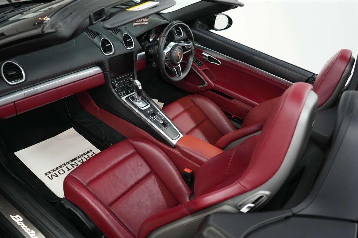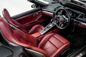 Windscreen with Grey Top-Tint,Windscreen Wiper System with Aero Wiper Blades and Washer Jets,Tyre Sealing Compound and Electric Air Compressor,Tyre Pressure Monitoring - TPM,Two Individual Cupholders,Twin-Tract Exhaust System with Central Twin Tailpipe in Stainless Steel,Storage Compartment in Each Door,Steering Wheel Rim - Gear Lever - Door Pull Inlays all in Smooth Finish Leather,Sports-Look Pedals and Footrest,Sports Steering Wheel - Diameter 375mm with Manual Fore-Aft and Height Adjustment,Convertible Top Colour - Black,Full Size Airbags for Driver and Front Passenger,Floor Mats,Fixed Roll-Over Bar,Fan with Air Recirculation and Defroster Functions,Engine Immobiliser and Central Locking with Remote Control,Electric Parking Brake,Door Sill Guards with Model Logo,Door Panels Armrest and Centre Console Main Storage Compartment Lid in Smooth Finish Leather,Digital Displays for Driving Speed - Selected Gear - Odometer - Trip Meter and Time,Deletion of Model Designation,Fully Automatic Fabric Hood,Clothes Hooks on Seat Backrests,Bi-Xenon Main Headlights with Integrated LED Daytime Running Lights,Automatic Headlight Activation including Welcome Home Lighting,Automatic Deploying Rear Wing,Ascending Centre Console with One Uncovered and One Covered Storage Compartment,Anti-Theft Wheel Bolts,Alarm System,Air Conditioning with Integrated Active Carbon Filter,64 Litre Fuel Tank,19in Alloy Wheels - Boxster S,PORSCHE Logo on Accent Strip and Model Designation on Rear Apron in Silver Colour - High Gloss,Sports Seats with Electric Backrest Adjustment and Manual Fore-Aft and Height Adjustment,Sound Package Plus,SPORT Button to Activate Dynamic Driving Setting for Engine and Transmission,Reinforced Version of 718 Boxster Brake System - Brake Calipers in Red,Power Windows with One-Touch Operation and Door Seal Protection Function,Power Steering,Porsche Vehicle Tracking System Plus,Porsche Side Impact Protection - POSIP,Porsche Communication Management - PCM,PSM - Porsche Stability Management,12-Volt Socket in Passenger Footwell,Net-Type Wind Deflector,Luggage Compartments at Front and Rear,LED Tail Lights with Integrated Four-Point Brake Lights and Reversing Lights,LED Auxiliary Lights Units in Front Apron with Position Lights - Direction Indicators and Side Indicators,Instrument Dials in Black with Rev Counter in Silver,Instrument Cluster with Central Rev Counter and High Resolution 4.6inch Colour Display,Hood Lining in Black Fabric,Heated Rear Screen,Green Tinted Heat-Insulating Glass