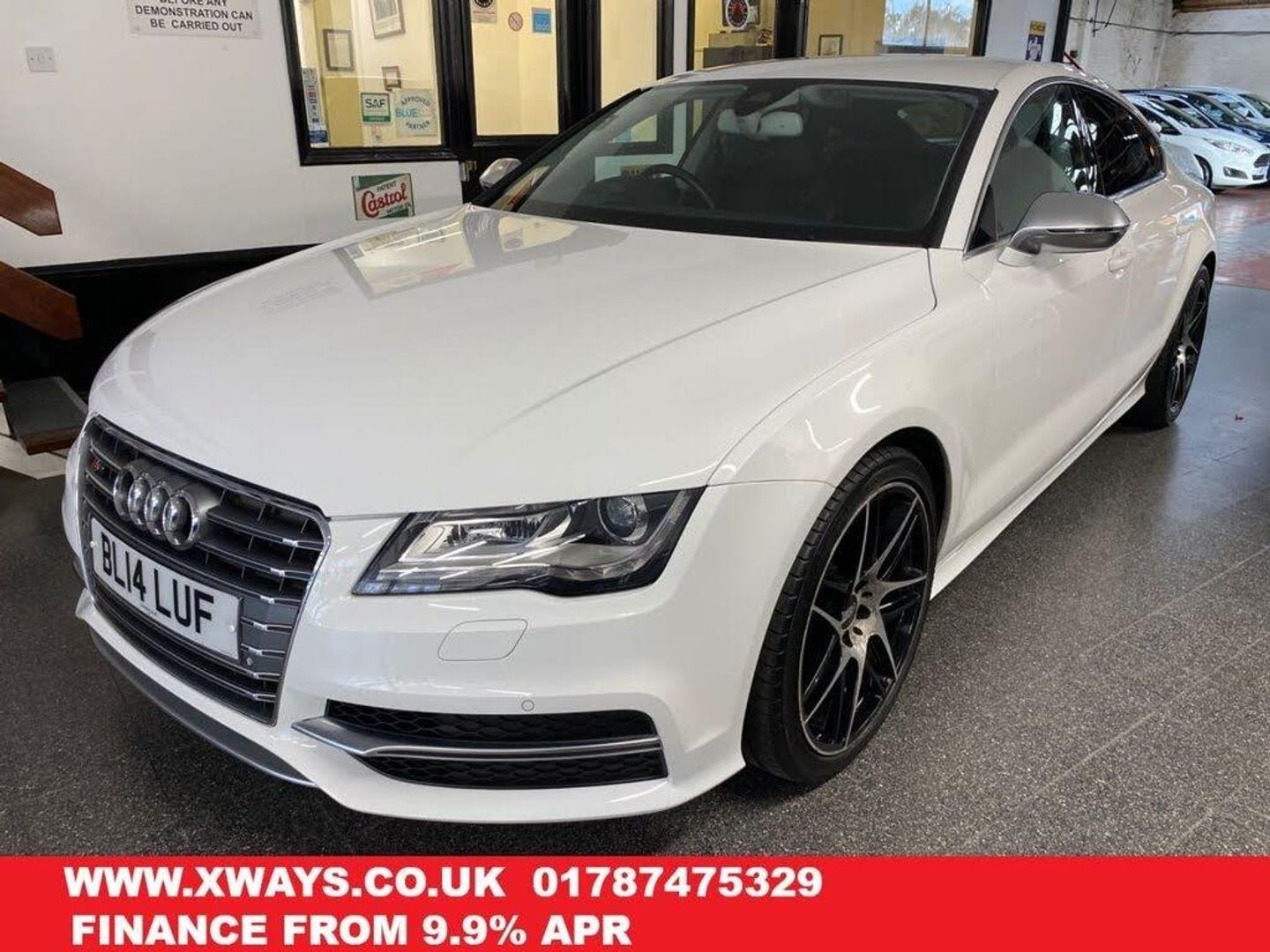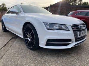Just 3 owners from new.. This Audi S7 4.0 TFSI V8 5dr Petrol S Tronic quattro Euro 5 (420 ps) is finished in Glacier White with Full Black leather/White stitching electric front heated driver memory seats and heated rear seats. It comes with 20" BBS alloys (to be refurbished for the new owner), space saver spare wheel, Head Up Display, Power bootlid, Front and rear Park Distance Control, LED headlights with Headlamp wash, LED day lights, Privacy Glass, Power folding heated wing mirrors, Audi multi function steering wheel with paddles, Climate control Air con front and rear, Sat Nav, Bluetooth, Audi Multimedia system, BOSE Hi-Fi, CD Changer, DAB, Cruise control, central locking, electric windows plus more. This car has had 11 services including 9 Audi Main Dealer and 2 Independent invoices done at 3628/21612/24300/28862/32868/37134/42410/46876 and 56699 miles. 2 keys. The current MOT runs to April 2026... We will supply it with a 12 month MOT and 12 month RAC Insured Warranty along with 12 months roadside assistance. Finance available from 9.9% APR and extended warranties available. This car has been meticulously looked after and needs to be viewed to be appreciated. It has a folder full of history.. No unwanted smoke or pet smells present. WHATSAPP Available 07967962192. For more information please visit www.xways.co.uk or phone 01787 475329/07967962192, HIGH STREET LOCATION CARS UNDERCOVER IN SHOWROOM, p/x considered