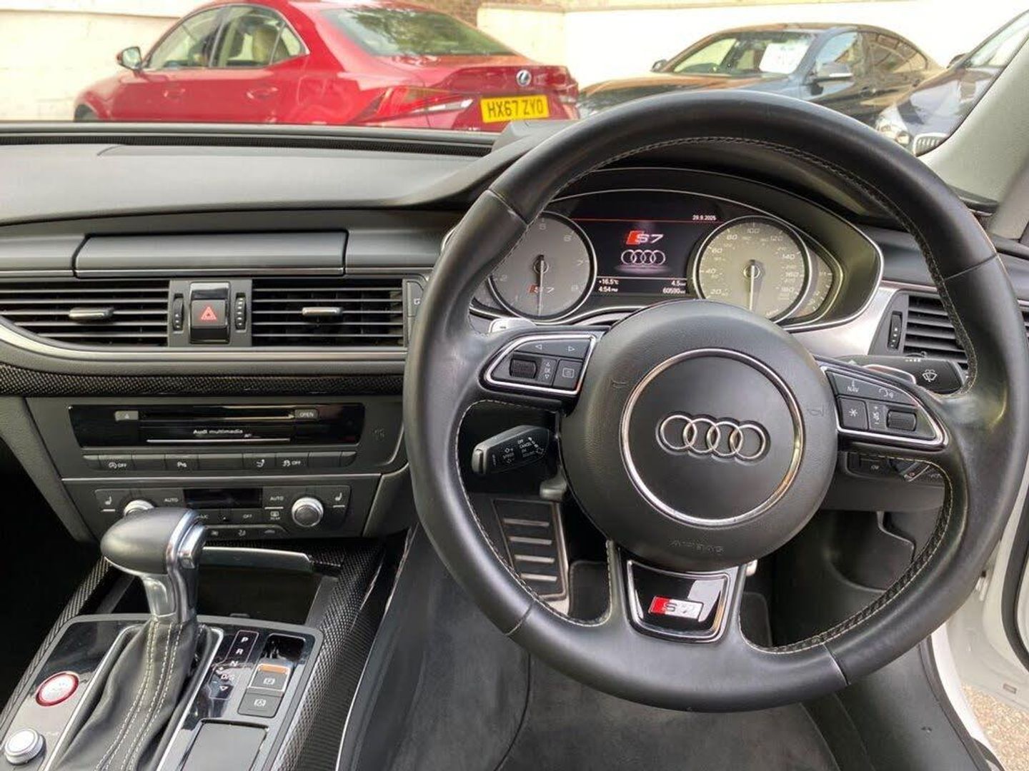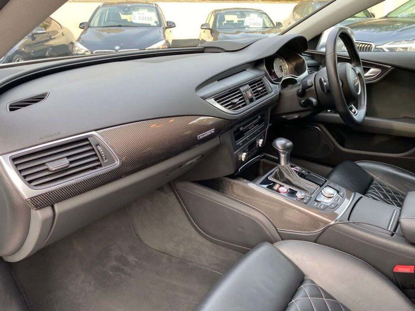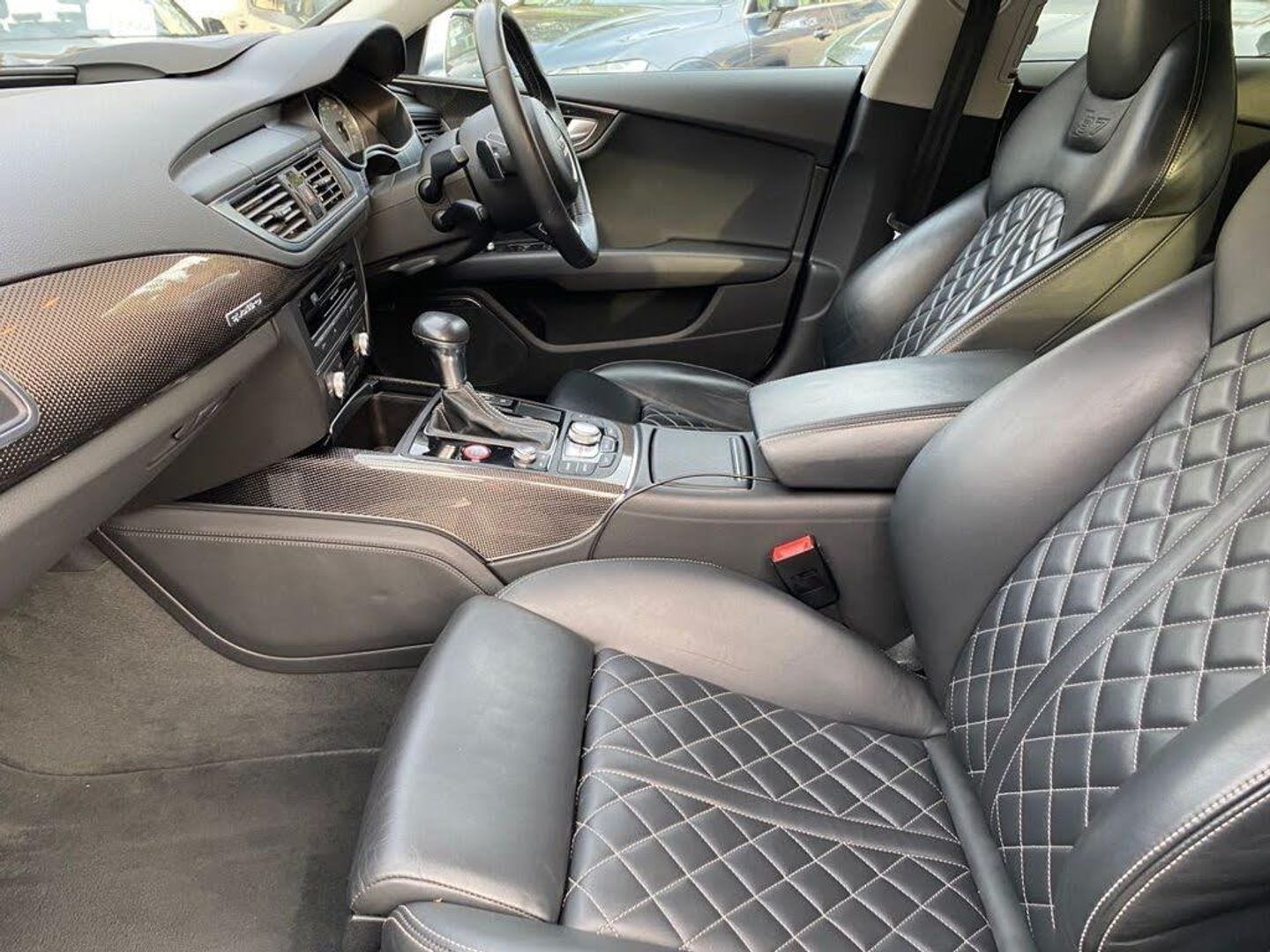 12V Power Socket, 12V Power Socket - Rear, 12V Power Socket - Rear x2, 19in Alloy Wheels - 5-Parallel Spoke S Design, 20in Alloy Wheels - 5-Parallel Spoke Star S Design, 4-Seat Option, 6CD Changer, ABS - Anti-Lock Braking System, Acoustic and Visual Parking System - Rear, Active Noise Cancellation System, Airbags - Curtain, Airbags - Driver, Airbags - Front Passenger, Airbags - Front Side, Aluminium-Effect Door Mirror Housings, Ambient Lighting - Centre Console, AMI - Audi Music Interface, Amplifier - 180 Watt, Amplifier - 6 Channel, Anti Theft Locking Wheel Bolts, Anti-Theft Alarm, Armrest Doors - Leather, Audi Drive Select, Audi Hill Hold Assist, Audi Parking System Plus, Audi Sound System, Auto-Dimming Rear-View Mirror, Automatic Wipers with Rain Sensor, AUX-IN Socket, Bi-Xenon Headlights, Body Coloured Side Sill Trims, BOSE Surround Sound System, Brake Calipers - Matt Black with S7 Logo, Cables x2 - MP3 Connection Including iPod, Car Jack, Climate Control - Electronic Deluxe 4-Zone, Cloth Headlining, Cruise Control, DAB Digital Radio, DIS - Drivers Information System with Display Screen Colour - 7in, Display Screen Colour 6.5in for MMI, Door Mirrors - Automatic Kerb View Dipping Function When Reversing, Door Mirrors - Heated-Electrically Adjustable-Folding and Auto Dimming with Memory Function, Door Sill Trims - Aluminium with S7 Logo, Door Trim Inserts in Selected Leather, Dynamic Route Guidance, Efficiency Program in the Drivers Information System - DIS, Electric Windows - Front and Rear, Electrically Adjustable 4-Way Lumbar Support, Electrically Adjustable Front Seats with Memory Function for Drivers Side, Electromechanical Parking Brake, Enhanced Braking System, Entrance Lights, ESP - Electronic Stability Programme, Exhaust Tailpipe - Dual-Branch Oval Twin with Chrome Finish, First Aid Kit, Front and Rear Floor Mats, Front and Rear Reading Lights, Front Bumper Air Intakes with Aluminium Effect Accents, Front Centre Armrest - Selected Leather, Front Passenger Airbag Deactivation Switch, Glacier White, Head Restraints - Leather, Head Restraints - Rear x2, Head-Up Display, Headlights - Automatic Activation, Headlights - Automatic Adjustment, Headlights Washers, Heated Front Seats, High Gloss Package, Immobiliser, Inlays - Carbon Atlas, ISOFIX Child Seat Mounting for Front Passenger, ISOFIX Child Seat Preparation for Rear Seats with Top Tether, Keyless Go, LED Daytime Running Lights, LED Lighting for Front Footwell/Inside Door Handles/Vanity Mirror Lights/Centre Console, LED Tail Lights, Lighting - Door Handles LED for Easy Entry in the Dark, Lighting - Under the Door Handles, Lighting Package, Luggage Compartment - Net, MMI Navigation - SD Card Based, MMI Radio Plus, Mobile Telephone Preparation - Low with Bluetooth and Voice Control, MP3 - WMA and AAC Compatible CD Player, Non-Smoking Package, Outside Temperature Display, Parking Sensors - Front, Platinum Grey Rear Bumper Diffuser Insert with Aluminium-Effect Strip, Pollen Filter, Power Operated Tailgate, Power Steering - Electromechanical/Servotronic Speed Sensitive, Privacy Glass, Quattro Sports Differential, Radiator Grille - Single Frame - Platinum Grey, Radiator Grille - Single Frame - with Platinum Grey Chrome Horizontal Bars, Rear Central Storage Tray, Rear Centre Armrest, Remote Boot Release, Remote Central Locking, Rest Recommendation System, S Instrument Dials, SDHC Card Reader x2, Seats - Drivers Memory Function, Seats - Front Electric Adjustment, Seats - Front Electric Height Adjustment, Seats - Super Sports, Space Saver Spare Wheel, Speakers x10, Speakers x10 Including Subwoofer, Split-Folding Rear Seats, Spoiler - Retractable, Start-Stop Button, Steering Wheel - 3-Spoke Leather - Multi-function - Sports - Shift Paddles, Steering Wheel - Contrast Stitching with S7 Emblem, Steering Wheel - Gear Shift Paddles, Steering Wheel - Height and Reach Adjustable, Steering Wheel - Multi-function, Storage Package, Suspension - Adaptive Air - S Models, Tie-Down Straps, TMC Traffic Information, Tool Kit, TP Memo - Automatically Saves Traffic News, Tracking Preparation, Trip Computer, Two Cup Holders in the Rear Centre Armrest, Tyre Pressure Monitoring System, Valcona Leather - Comfort Seats - Black, Voice Control - Navigation, Warning Triangle