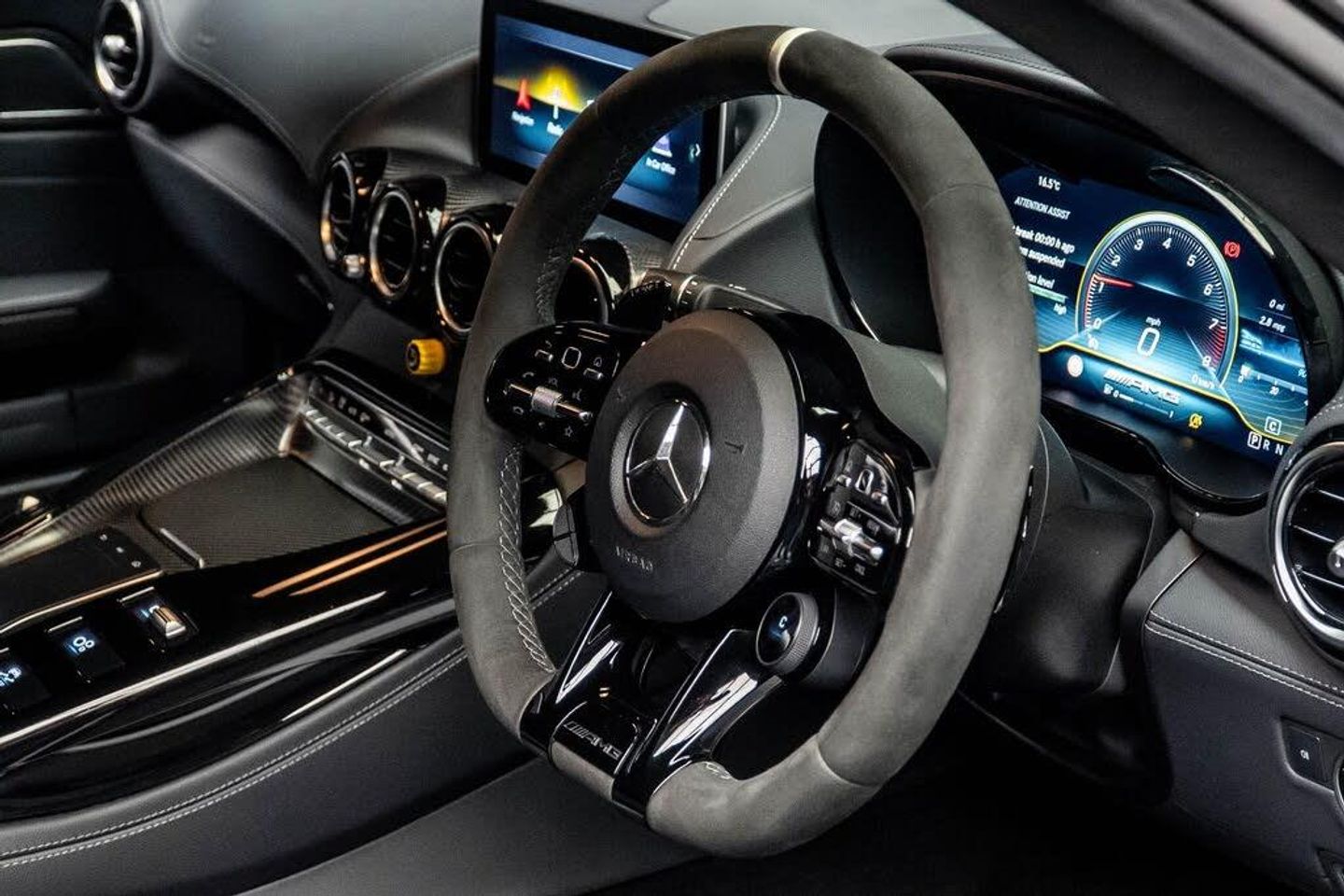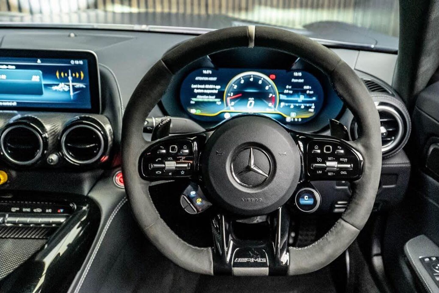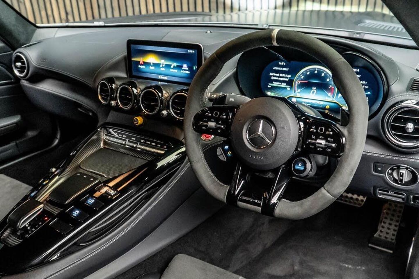 19in Front-20in Rear Alloys Wheels - AMG Performed Forged 5-Twin-Spoke - Polished Titanium with High-Sheen Rim Flange, 3-Stage Electronic Stability Programme - ESP, ABS - Anti-Lock Braking System, AMG Carbon Fibre Door Sills - Not Illuminated, AMG Carbon Fibre Package I, AMG DYNAMICS, AMG Door Sill Panels in Carbon Fibre with AMG Lettering, AMG Drive Unit, AMG Dynamic Select with a Choice of Driving Modes, AMG Emblem Embossed in Front Centre Armrest, AMG Floor Mats with AMG Lettering, AMG GT R PRO Bodystyling, AMG High-Performance Ceramic Composite Braking System, AMG Interior Night Package, AMG Matt Black Carbon-Fibre Trim Package, AMG Performance Exhaust System - Switchable with Titanium Rear Silencers, AMG Performance Steering Wheel in Black DINAMICA Microfibre, AMG RIDE CONTROL Sports Suspension with Adaptive Adjustable Damping, AMG Rear Axle Limited-Slip Differential Lock - Electronically Controlled, AMG Rear Axle Steering, AMG Sports Bucket Seats Made of Carbon Fibre with Integrated Head Restraints and Optimised Lateral Support, AMG Track Pace - Records Lap Times on the Racetrack, AMG Track Package, AMG Track Package with Roll Cage Painted Black, AMG Traction Control, AMG-Specific Radiator Grille, ASR - Acceleration Skid Control, ATTENTION Assist, Active Aerodynamics, Active Air Control System, Active Brake ASSIST, Adaptive Brake Assist with Hold Function - Hill-Start Assist - Priming and Dry Braking in the Wet, Adaptive Brake Lights, Airbags - Driver and Front Passenger, Airbags - Window, Anti-Theft Protection Package, Armrest for Driver and Front Passenger, Automatic Child Seat Recognition Sensor, Automatic Front Passenger Airbag Deactivation, Bluetooth Interface for Hands-Free Telephone, Brake Calipers - Painted Black with AMG Carbon Ceramic Lettering, Brake Wear Warning Display, Braking - BAS-Brake Assist with Brake Servo Assistance when Emergency Braking is Detected, Broad Front End with Louvres in Wings to Vent Wheel Arches and Reduces Front-Axle Lift, Broad Rear End with Carbon Fibre Aero Elements from Wheel Arches to Tail Lights, Burmester Surround Sound System, COMAND Online System with Media Interface and Touchpad, Carbon Fibre Roof, Carbon-Fibre Torque Tube, Centre Console with Storage Compartment, Cruise Control with Variable Speed Limiter, DAB Digital Radio Tuner, Dividing Net for Luggage Compartment Partition and Occupant Protection, Door Mirrors - Electrically Adjustable and Heated, Door Mirrors - High-Gloss Black, Double Cup Holder in Centre Console, Dynamically Shaped Side Sill Panels in Vehicle Colour, Electric Parking Brake with Automatic Release when Moving Off, Electric Windows - 2 - with One-Touch Control and Obstruction Sensor, Expressive Diffuser in Carbon Fibre with Motor Racing Look, First Aid Kit, Front View and Reversing Cameras, Front Wings - Carbon Fibre, Glove Compartment Illuminated and Lockable, Headlamp Assist - Automatic Headlamp Activation, Heated Rear Window with Timer Control, High-Resolution 10.25in Multimedia Colour Display, Horizontal Fins in the Side Air Inlets, Instrument Cluster - 12.3in High Resolution Digital Instrument Cluster, Interior Lighting, KEYLESS-GO Package, KEYLESS-GO Starting Function, Kneebag for Driver and Front Passenger, LED High Performance Headlamps with Adaptive Highbeam Assist, LED Indicators Integrated in Exterior Mirrors, LED Tail Lights, Luggage Compartment Brace in Black, Mercedes Me Connect - Standard Services, Mirror Package, Outside Temperature Display, Parking Assist PARKTRONIC, Power Assisted Steering, Privacy Glass - Dark Glass from B-Pillar Backwards, Racing Stripes, Rear Aerofoil - Static, Roof Lining - Black Dinamica Microfiber, Seat Belts - Black, Service Interval Indicator ASSYST, Sidebags for Driver and Front Passenger, Smartphone Integration, Solid Roof, Sports Tyres, Sporty Front Apron in Jet-Wing Design with Extended Front Splitter in Carbon Fibre, Steering Column - Electronically Adjustable for Height and Reach, Sun Visors with Vanity Mi