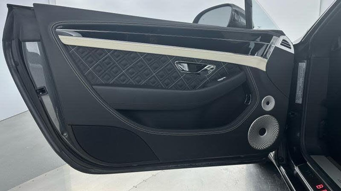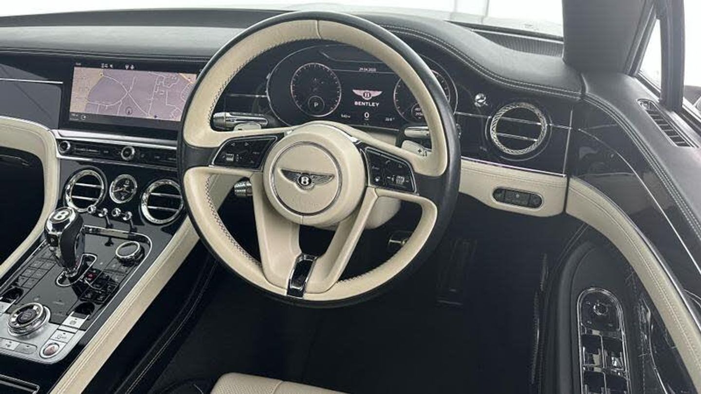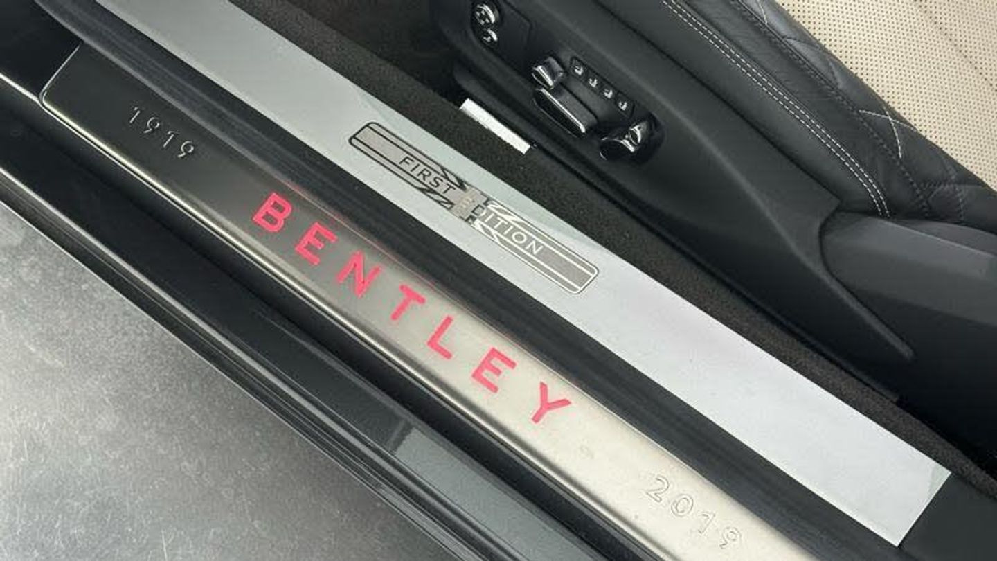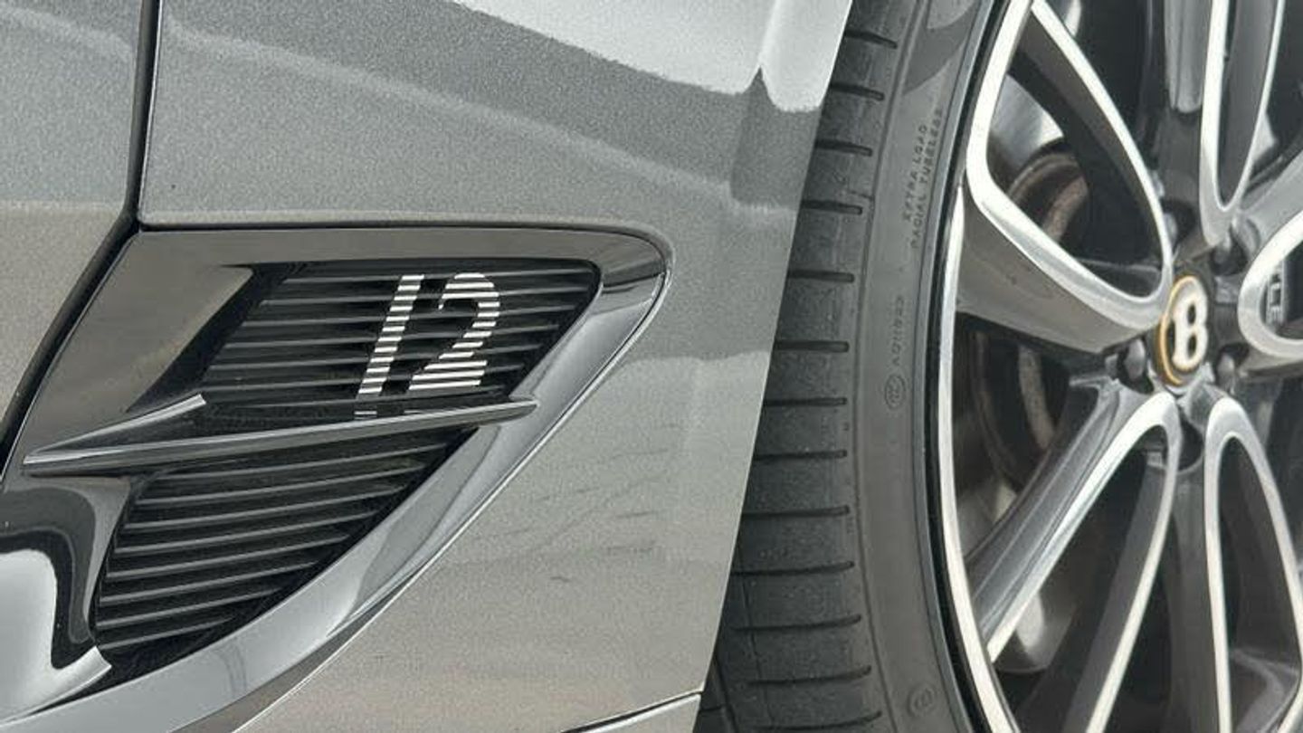 Apple car play, Blind spot warning, Bluetooth and Wi-Fi audio streaming, Brake pad wear indicator warning light, Collision prevention assist, Engine start/stop button, Front/rear park distance control, Infotainment system with 12.3 high resolution touch screen retina disp + proximity sensors + advance music interface, single DVD/CD, 2 SD card slots, Navigation system, Park assist system, PAS, Power latching to all doors for easy entry, Reversing camera, Trip computer, Acoustic and heat insulating front windscreen, Acoustic glass, Adaptive brake lights, Auto dimming rear view mirror, Black and Chrome bonnet and boot Bentley wing badges, Branded Bentley sills, Bright boot finisher, Bright wing vent with 12 in the black ribbed matrix, Deployable rear boot spoiler, Electrically adjustable door mirrors with heating, power fold, memory and dip on reverse functions, Full LED Matrix headlamps with high-beam assist, Full LED tail lamps, Heated rear windscreen, Lower front bumper grilles in black, Polished bright ware to side windows, Rain sensing windscreen wipers, Treadplates inner with Handbuilt in Crewe, England inserts, Twin oval exhaust finishers, 12v power sockets 2 in cabin and 1 in boot, 2 cupholders in front centre console, Black seat belt buckles, Boot carpet in Beluga, Boot lid down lighters, Deep Pile Carpets to match upholstery, Electric tilt and reach adjustment steering column with memory and easy entry functions, Four occupant seating positions, Leather trimmed gearshift lever, Lockable cooled glovebox, Metal bulls eye vents with organ stop, Multi-zone automatic climate control - two zone, Nappa leather upholstery, Rear headrests, Seats with straight fluted style hide cover, Single front armrest with fore/aft adjust and stowage, Ski hatch, Steering wheel gearshift paddles, Stowage to front doors, centre console and under centre armrest, Sunvisors with illuminated vanity mirrors, Two rear seats with centre stowage and cup holders including 12v socket and 2 USB charging points, Driver and passenger airbags, Electronic parking brake with drive away assist, Electronic stability programme with traction control, Anti lock braking System, Electronic brake force distribution, HBA + drag torque control, Electronic tyre pressure monitoring, Exit warning, Front vented 420x40mm disc brakes with Bentley branded black brake callipers, Multicollision braking system, Pre crash system, Pre sense braking system, Rear vented 380x30mm disc brakes with Bentley branded black brake callipers, Side airbags, Torque vectoring brake