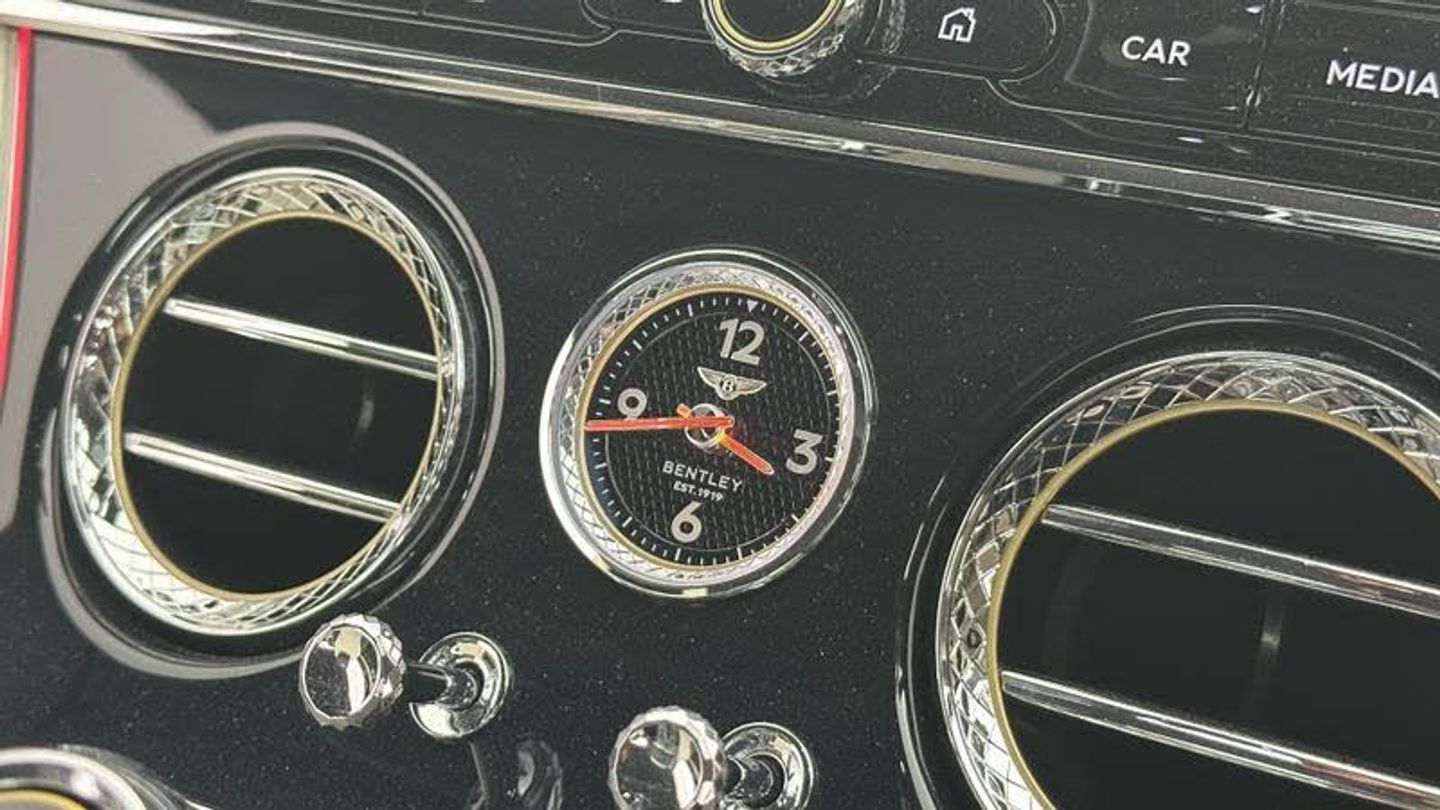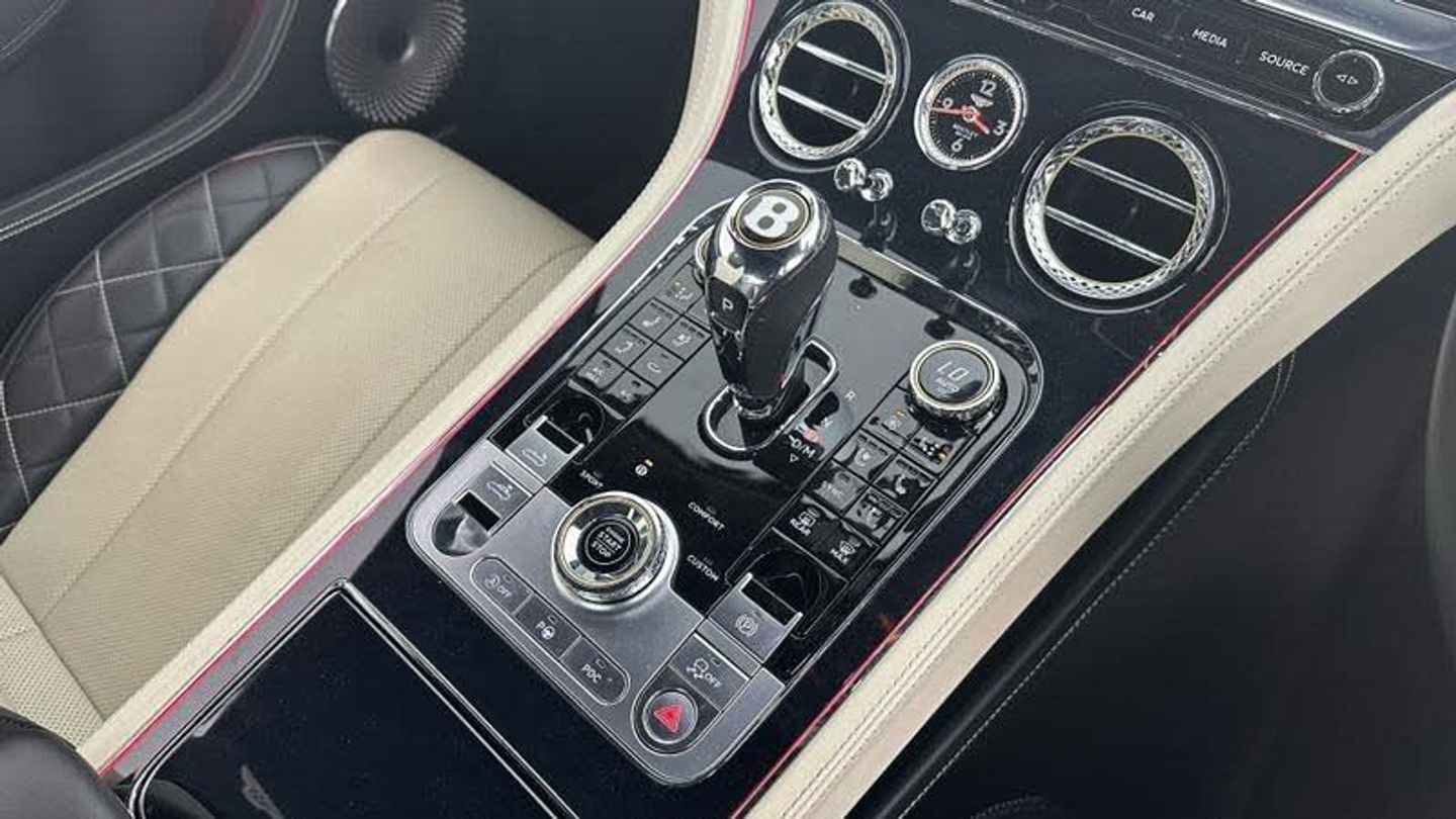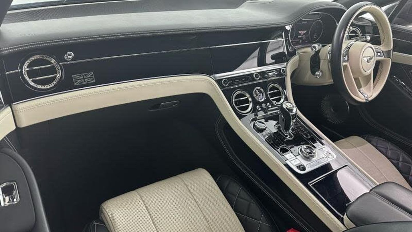 Apple car play, Blind spot warning, Bluetooth and Wi-Fi audio streaming, Brake pad wear indicator warning light, Collision prevention assist, Engine start/stop button, Front/rear park distance control, Infotainment system with 12.3 high resolution touch screen retina disp + proximity sensors + advance music interface, single DVD/CD, 2 SD card slots, Navigation system, Park assist system, PAS, Power latching to all doors for easy entry, Reversing camera, Trip computer, Acoustic and heat insulating front windscreen, Acoustic glass, Adaptive brake lights, Auto dimming rear view mirror, Black and Chrome bonnet and boot Bentley wing badges, Branded Bentley sills, Bright boot finisher, Bright wing vent with 12 in the black ribbed matrix, Deployable rear boot spoiler, Electrically adjustable door mirrors with heating, power fold, memory and dip on reverse functions, Full LED Matrix headlamps with high-beam assist, Full LED tail lamps, Heated rear windscreen, Lower front bumper grilles in black, Polished bright ware to side windows, Rain sensing windscreen wipers, Treadplates inner with Handbuilt in Crewe, England inserts, Twin oval exhaust finishers, 12v power sockets 2 in cabin and 1 in boot, 2 cupholders in front centre console, Black seat belt buckles, Boot carpet in Beluga, Boot lid down lighters, Deep Pile Carpets to match upholstery, Electric tilt and reach adjustment steering column with memory and easy entry functions, Four occupant seating positions, Leather trimmed gearshift lever, Lockable cooled glovebox, Metal bulls eye vents with organ stop, Multi-zone automatic climate control - two zone, Nappa leather upholstery, Rear headrests, Seats with straight fluted style hide cover, Single front armrest with fore/aft adjust and stowage, Ski hatch, Steering wheel gearshift paddles, Stowage to front doors, centre console and under centre armrest, Sunvisors with illuminated vanity mirrors, Two rear seats with centre stowage and cup holders including 12v socket and 2 USB charging points, Driver and passenger airbags, Electronic parking brake with drive away assist, Electronic stability programme with traction control, Anti lock braking System, Electronic brake force distribution, HBA + drag torque control, Electronic tyre pressure monitoring, Exit warning, Front vented 420x40mm disc brakes with Bentley branded black brake callipers, Multicollision braking system, Pre crash system, Pre sense braking system, Rear vented 380x30mm disc brakes with Bentley branded black brake callipers, Side airbags, Torque vectoring brake