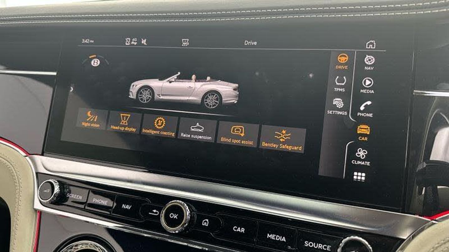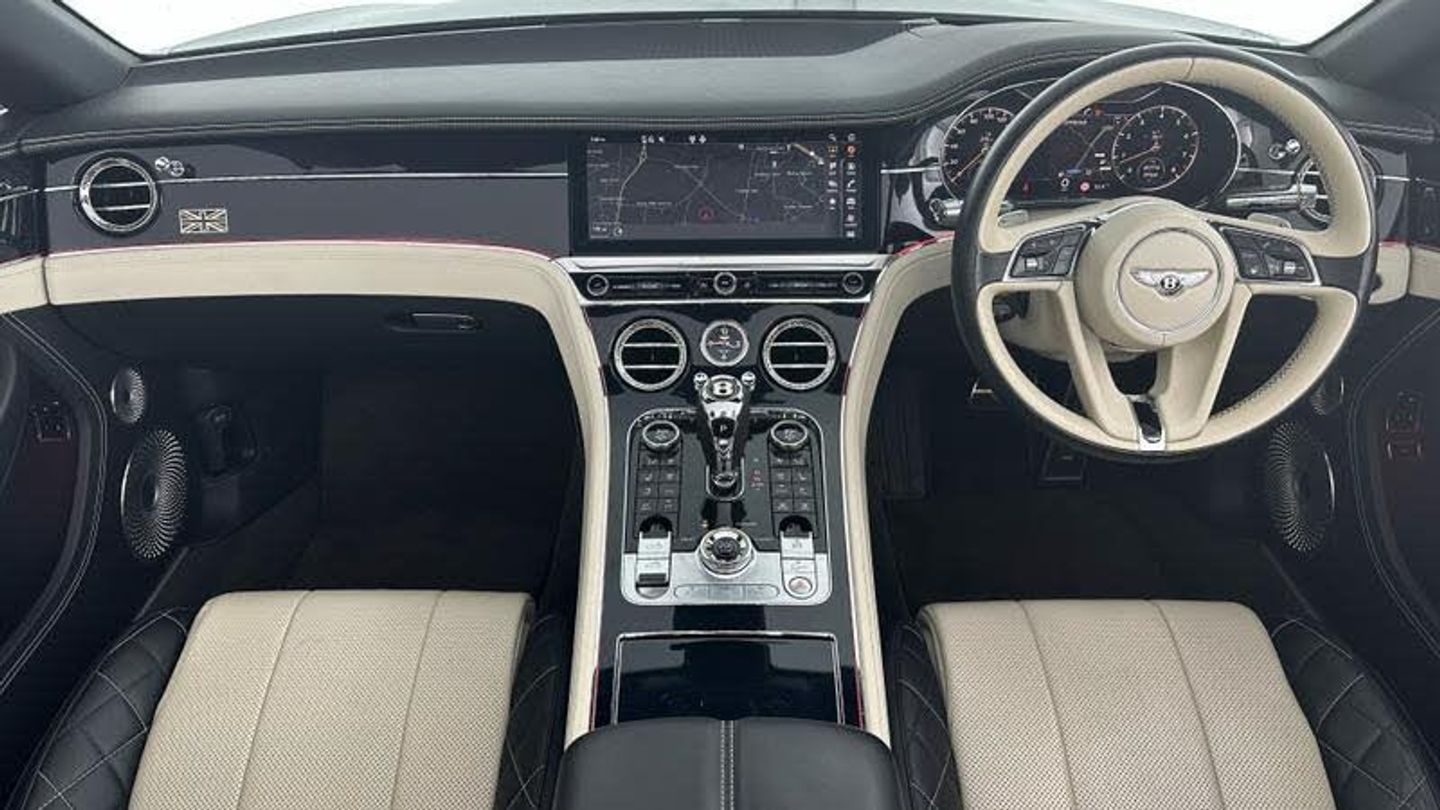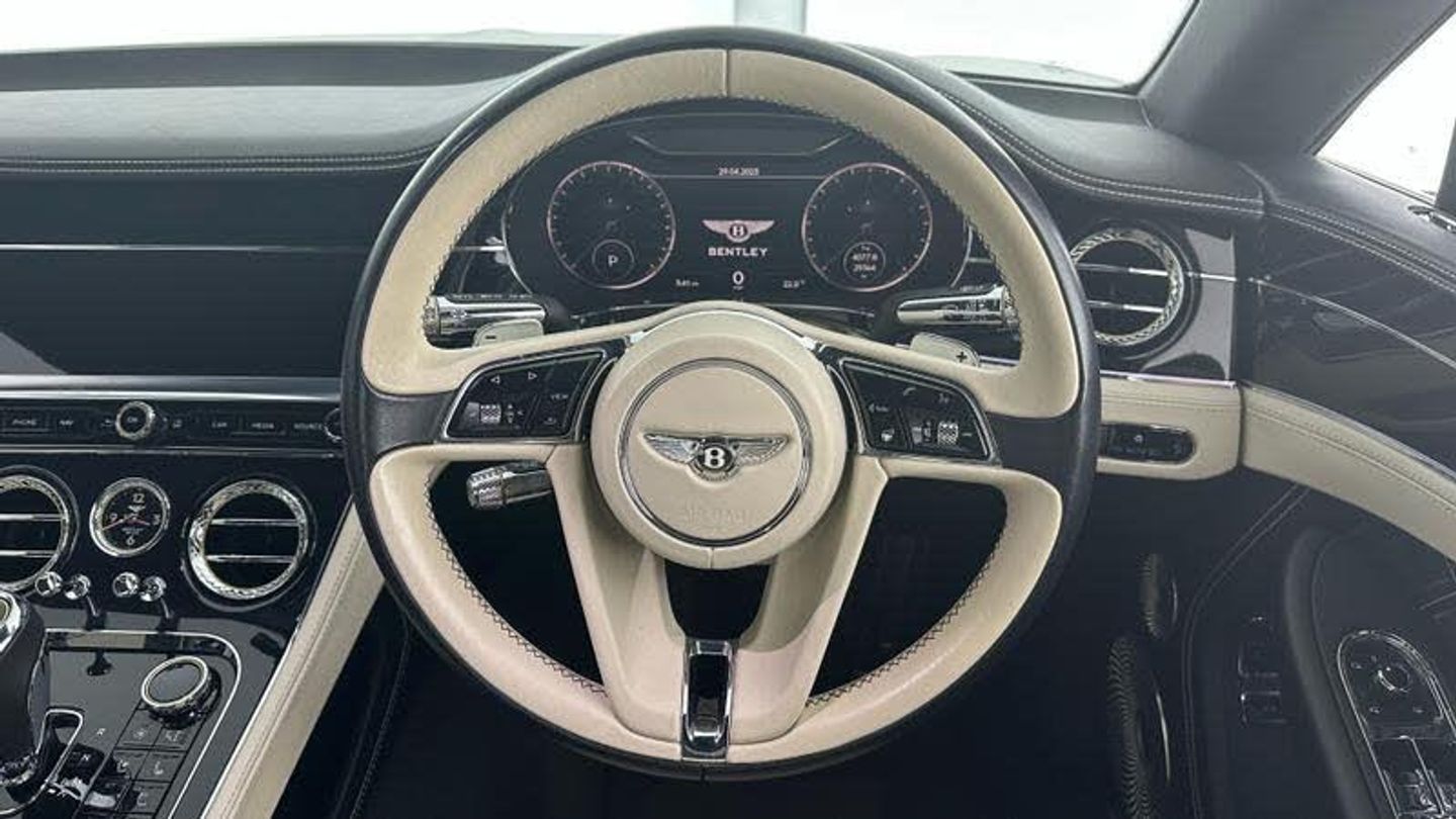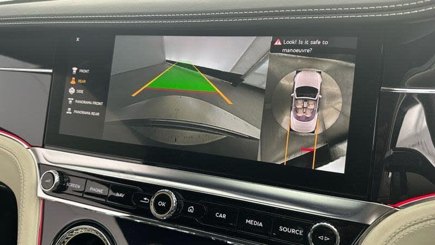 Apple car play, Blind spot warning, Bluetooth and Wi-Fi audio streaming, Brake pad wear indicator warning light, Collision prevention assist, Engine start/stop button, Front/rear park distance control, Infotainment system with 12.3 high resolution touch screen retina disp + proximity sensors + advance music interface, single DVD/CD, 2 SD card slots, Navigation system, Park assist system, PAS, Power latching to all doors for easy entry, Reversing camera, Trip computer, Acoustic and heat insulating front windscreen, Acoustic glass, Adaptive brake lights, Auto dimming rear view mirror, Black and Chrome bonnet and boot Bentley wing badges, Branded Bentley sills, Bright boot finisher, Bright wing vent with 12 in the black ribbed matrix, Deployable rear boot spoiler, Electrically adjustable door mirrors with heating, power fold, memory and dip on reverse functions, Full LED Matrix headlamps with high-beam assist, Full LED tail lamps, Heated rear windscreen, Lower front bumper grilles in black, Polished bright ware to side windows, Rain sensing windscreen wipers, Treadplates inner with Handbuilt in Crewe, England inserts, Twin oval exhaust finishers, 12v power sockets 2 in cabin and 1 in boot, 2 cupholders in front centre console, Black seat belt buckles, Boot carpet in Beluga, Boot lid down lighters, Deep Pile Carpets to match upholstery, Electric tilt and reach adjustment steering column with memory and easy entry functions, Four occupant seating positions, Leather trimmed gearshift lever, Lockable cooled glovebox, Metal bulls eye vents with organ stop, Multi-zone automatic climate control - two zone, Nappa leather upholstery, Rear headrests, Seats with straight fluted style hide cover, Single front armrest with fore/aft adjust and stowage, Ski hatch, Steering wheel gearshift paddles, Stowage to front doors, centre console and under centre armrest, Sunvisors with illuminated vanity mirrors, Two rear seats with centre stowage and cup holders including 12v socket and 2 USB charging points, Driver and passenger airbags, Electronic parking brake with drive away assist, Electronic stability programme with traction control, Anti lock braking System, Electronic brake force distribution, HBA + drag torque control, Electronic tyre pressure monitoring, Exit warning, Front vented 420x40mm disc brakes with Bentley branded black brake callipers, Multicollision braking system, Pre crash system, Pre sense braking system, Rear vented 380x30mm disc brakes with Bentley branded black brake callipers, Side airbags, Torque vectoring brake