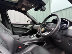 10in Touch Pro, 16-Way Heated Electric Driver and Passenger Memory Front Seats with 2-Way Manual Headrests, 2-Zone Climate Control, 20in Alloy Wheels - 10 Spoke Gloss Black Style 1067, 3 Rear Headrests, 3-Flash Lane Change Indicators, 380mm Front and 325mm Rear Brakes, 3D Surround Camera, 40-20-40 Split Fold Rear Seat, ABS - Anti-locking Braking System, AM-FM Radio, ASPC - All Surface Progress Control, Adaptive Dynamics, Air Distribution Speed, Airbags - Front Side, Airbags - Full Length Side Window Curtain, Android Auto, Animated Directional Indicators, Apple CarPlay, Approach Illumination, Auto High Beam Assist, Auto-Dimming - Power Fold - Heated Door Mirrors with Memory and Approach Lights, Auto-Dimming Interior Rear View Mirror, Automatic Headlights, Blind Spot Assist, Bluetooth Connectivity, Bluetooth Streaming, Body Coloured Door Mirror Caps, Brake Pad Wear Indicator, Cabin Lighting, Centre Console - Side Stowage, Centre Console with Armrest, Clear Exit Monitor, Configurable Dynamics, Cruise Control with Speed Limiter, Digital Audio Broadcast - DAB - Radio, Door Trim - Luxtec, Driver Condition Monitor, Dynamic Stability Control - DSC, Dynamic Volume Control, EBA - Emergency Brake Assist, ECO Driving Style Assistant, EPAS - Electric Power Assisted Steering, EPB - Electronic Parking Brake, Ebony Morzine Headlining, Electric Windows - Front and Rear with One-Touch Open-Close and Anti-Trap, Emergency Braking, Engine Spin Aluminium Trim Finisher, F-PACE Badge, Front Airbags with Passenger Seat Occupant Detector, Front Door Storage Space, Front and Rear Parking Aid, Glovebox Finisher with Jaguar Script, Green Tinted Glass, Heated Front Seats, Heated Front Windscreen, Heated Rear Window, Heated Steering Wheel, Hill Launch Assist, Hook in Loadspace, ISOFIX Rear, Illuminated Metal Treadplates with Brand-Name Script, InControl Apps, Interactive Driver Display, Interior Front Door Handles with Separate Locking Switches, Jaguar Script and Leaper, Jaguar Sound System, Jaguar Tyre Repair System, JaguarDrive Control, Keyless Entry, LED Tail Lights, Lane Keep Assist, Lockable Glovebox, Luggage Tie Downs in Loadspace, Metal Loadspace Scuff Plate, Mist Sensing, No Loadspace Storage Rails, Online Pack with Data Plan, Open Differential with Torque Vectoring by Braking, Outside Temperature Gauge, Overhead Lighting Console, Overhead Stowage for Sunglasses, P400 Badge, Passive Front Head Restraints, Pivi Pro Connected, Power Operated Child Locks, Powered Tailgate - Boot Lid, Premium Carpet Mats, Premium LED Headlights with Signature DRL, Push Button Start, R-Dynamic Branded Leather Steering Wheel, Rain Sensing Windscreen Wipers, Rear Air Vents, Rear Armrest with Twin Cupholders, Rear Centre Headrest, Rear Door Storage Space, Rear Fog Lights, Rear Metal Treadplates, Rear Traffic Monitor, Remote, Satin Chrome Gearshift Paddles, Seat Belt Reminder, Secure Tracker (12 Month Subscription From New), Shopping Bag Hook, Speed Proportional Steering, Start Up Sequence with Movement - Dials and Lighting, Steering Column - Electrically Adjustable, Steering Wheel - Multi-Function, Summer Tyres, Sunvisors with Illuminated Vanity Mirrors, Traffic Sign Recognition with Adaptive Speed Limiter, Trailer Stability Assist, Trip Computer, Twin Front Cupholders, Tyre Pressure Monitoring System, Unpainted Brake Calipers, Valet Mode, Variable Intermittent Wipers, Voice Control, iPod Integration, Sliding Panoramic Roof