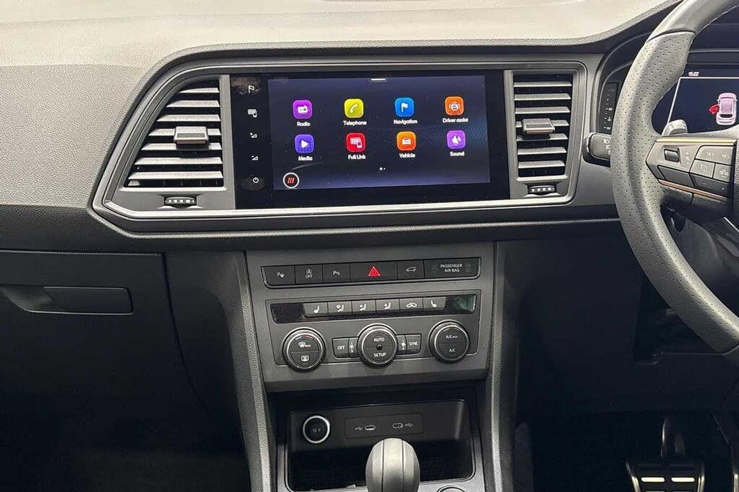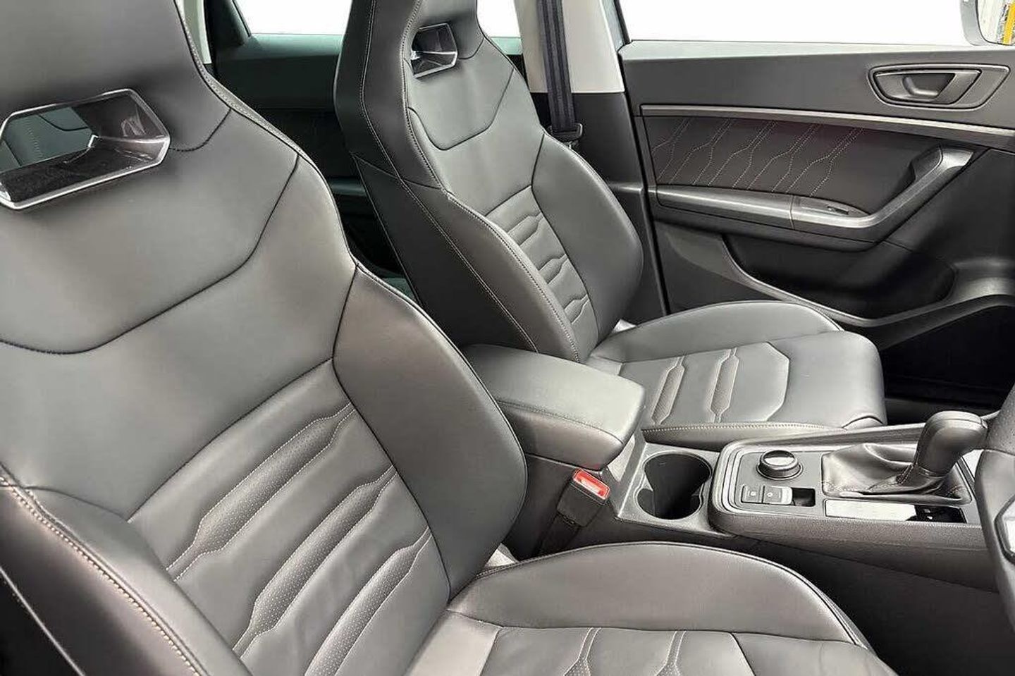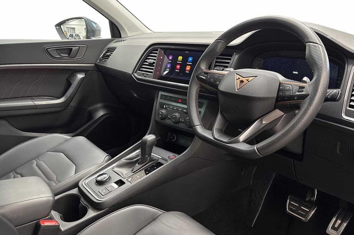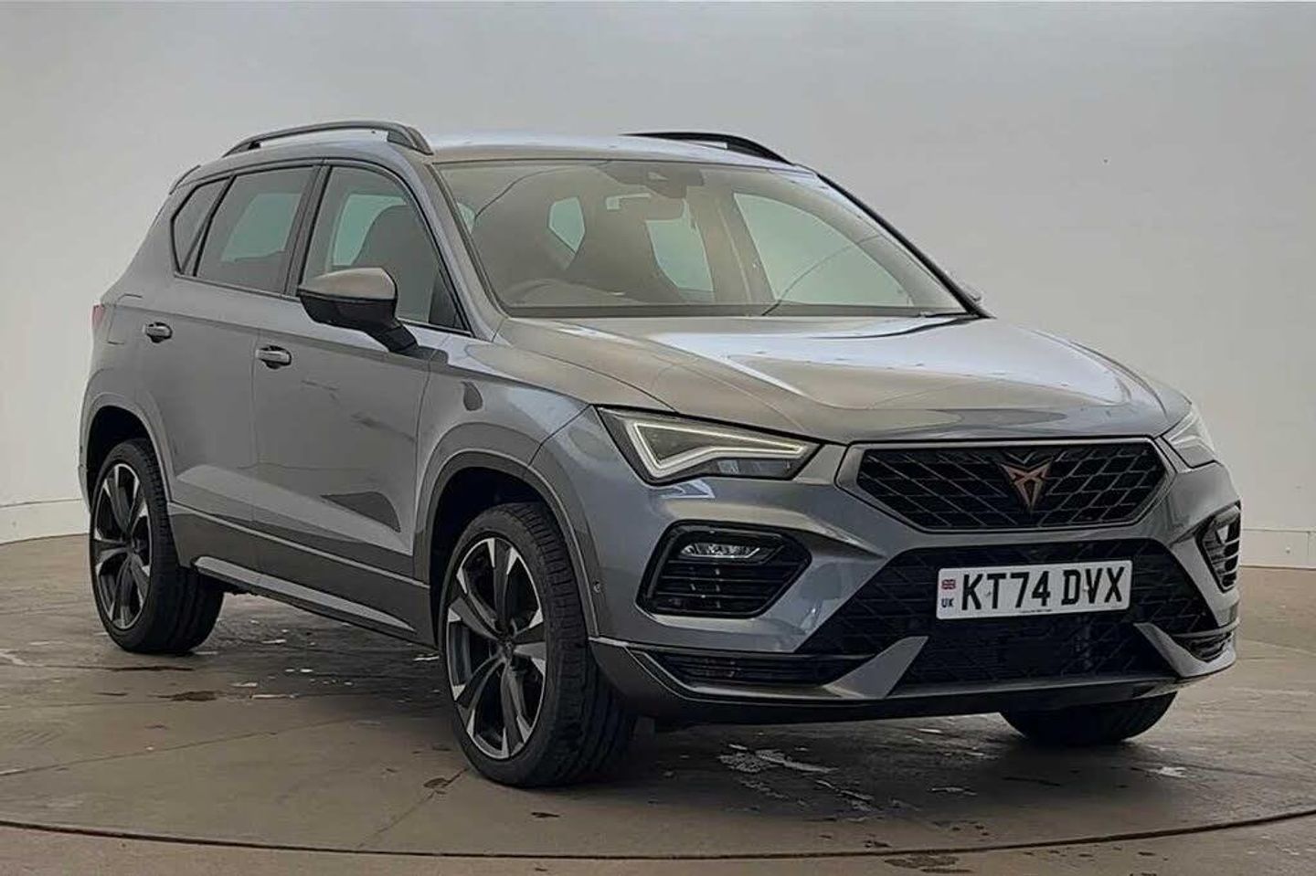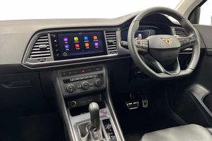 Exterior Features, Metallic paint, Paint - Metallic, Metallic - Graphite grey, Exterior Features, Dark tinted rear windows, Front and rear electric windows, Rear wash/wipe, Front and rear shock absorption, chassis with increased ride height, Body colour bumpers with dark aluminium diffusor, Body coloured wheel arch surrounds, Front grille frame in chrome, Gloss black roof rails, Gloss black side mouldings, Gloss black side window trim, Illuminated aluminium front door sill, Rear side wing doors, Rear spoiler, Specific CUPRA design front bumper, Standard rear exhaust tailpipes, Daytime running lights, Dynamic headlight range control with self adjusting whilst driving, Full LED headlamps with lens and LED front fog lamps with cornering function, LED rear tail lights with dynamic indicators, Rear fog lights, Third brake light, Safety, ABS, Traction control system (TCS), Electronic stability control (ESC) and Electronic differential lock system (XDS), Black brake callipers with CUPRA logo, Electric parking brake with auto hold function, Front assist with autonomous emergency braking, Hill hold control, Cruise control system with speed limiter, Driving profile selection and conventional shock absorber, Progressive power assisted steering, Rear view camera, Self parking functionality (includes front and rear parking sensors), Door mirrors with welcome CUPRA light silhouette, Electric adjustable/heated/folding door mirrors, Gloss black door mirrors, 3x3 point rear seatbelts, Airbags - Driver and front passenger airbag with deactivation, front side, two curtain and driver's knee airbags, Front and rear seatbelt reminder, Manual rear child locks, Single tone horn, Tiredness recognition system, Tyre pressure monitoring system, Audio / Communications, E-call, wired and wireless full link smartphone integration, Steering wheel mounted audio/phone controls, Driver Convenience, Electric tailgate with virtual pedal, Wireless phone charger, Miscellaneous, Digital cockpit, Outside temperature gauge, Trip computer, Interior Features, Dual zone climate control, 12v socket in front, Aluminium pedals, Cupra steering wheel emblem, Front centre armrest, Grey roof lining, Heated steering wheel, Leather sport bucket seats, Leather steering wheel and gear knob, Pedal cluster, Sports steering wheel, Steering wheel mounted gearshift paddles, Storage compartment in roof console for sunglass, Storage compartment under driver's seat, Multicoloured ambient lighting with LED interior illumination, Packs, Convenience pack - Ateca, Interior lighting pack - Ateca, Navigation system plus pack with DAB - Ateca, Safety and driving pack - Ateca, Trim, 3 seat bench in 2nd row, 60/40 split folding rear seat, Electric driver seat with memory function, Front and rear head restraints, Front seat back storage pockets, Heated front seats, Height adjustable driver and passenger seat with lumbar adjustment, ISOFIX points in outer rear seats with top tether anchorage points, Rear armrest and easy back seat release mechanism from boot, Single front passenger seat, Security, Alarm, Keyless entry, Locking wheel bolts, Wheels, 19" Sport machined alloy wheels 36/3 in black/silver