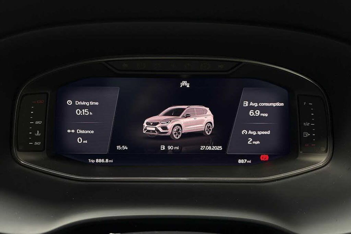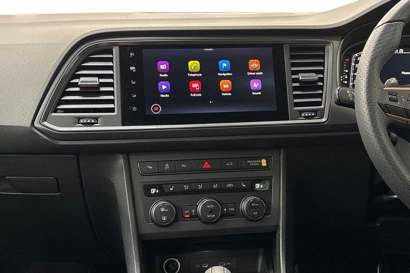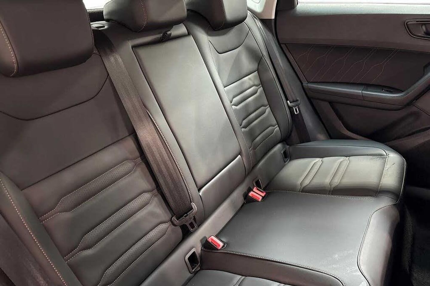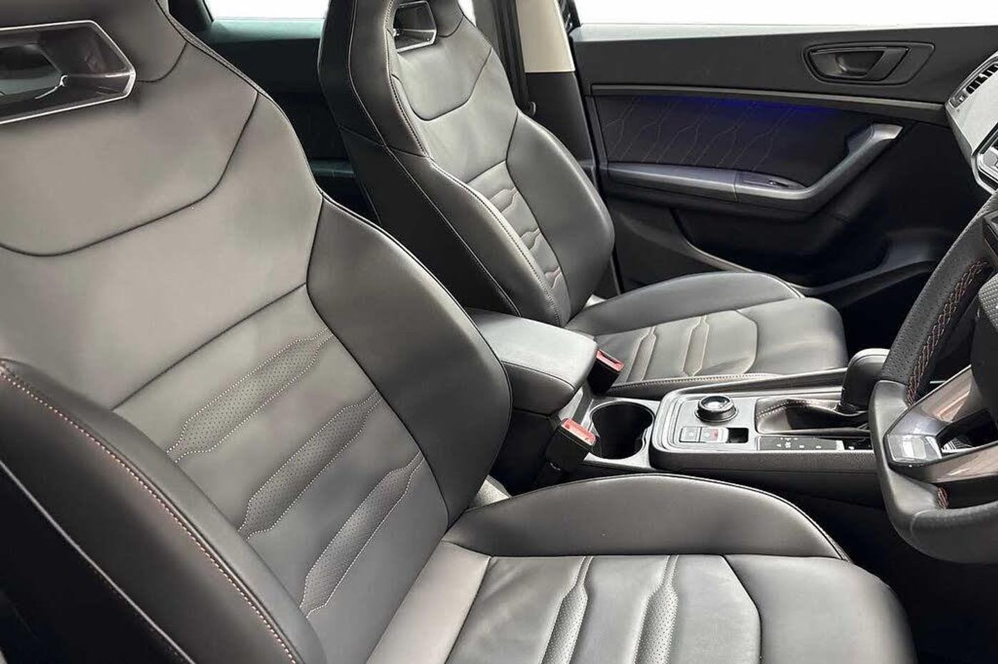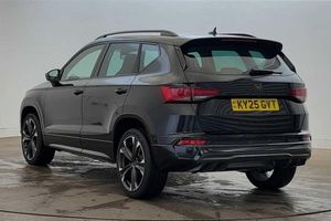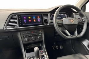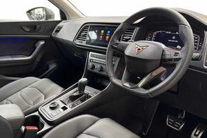 Exterior Features, Premium metallic paint, Paint - Special, Premium metallic - Black magic, Exterior Features, Dark tinted rear windows, Front and rear electric windows, Rear wash/wipe, Front and rear shock absorption, chassis with increased ride height, Body colour bumpers with dark aluminium diffusor, Body coloured wheel arch surrounds, Front grille frame in chrome, Gloss black roof rails, Gloss black side mouldings, Gloss black side window trim, Illuminated aluminium front door sill, Rear side wing doors, Rear spoiler, Specific CUPRA design front bumper, Standard rear exhaust tailpipes, Daytime running lights, Dynamic headlight range control with self adjusting whilst driving, Full LED headlamps with lens and LED front fog lamps with cornering function, LED rear tail lights with dynamic indicators, Rear fog lights, Third brake light, Safety, ABS, Traction control system (TCS), Electronic stability control (ESC) and Electronic differential lock system (XDS), Black brake callipers with CUPRA logo, Electric parking brake with auto hold function, Front assist with autonomous emergency braking, Hill hold control, Cruise control system with speed limiter, Driving profile selection and conventional shock absorber, Progressive power assisted steering, Rear view camera, Self parking functionality (includes front and rear parking sensors), Door mirrors with welcome CUPRA light silhouette, Electric adjustable/heated/folding door mirrors, Gloss black door mirrors, 3x3 point rear seatbelts, Airbags - Driver and front passenger airbag with deactivation, front side, two curtain and driver's knee airbags, Front and rear seatbelt reminder, Manual rear child locks, Single tone horn, Tiredness recognition system, Tyre pressure monitoring system, Audio / Communications, E-call, wired and wireless full link smartphone integration, Steering wheel mounted audio/phone controls, Driver Convenience, Electric tailgate with virtual pedal, Wireless phone charger, Miscellaneous, Digital cockpit, Outside temperature gauge, Trip computer, Interior Features, Dual zone climate control, 12v socket in front, Aluminium pedals, Cupra steering wheel emblem, Front centre armrest, Grey roof lining, Heated steering wheel, Leather sport bucket seats, Leather steering wheel and gear knob, Pedal cluster, Sports steering wheel, Steering wheel mounted gearshift paddles, Storage compartment in roof console for sunglass, Storage compartment under driver's seat, Multicoloured ambient lighting with LED interior illumination, Packs, Convenience pack - Ateca, Interior lighting pack - Ateca, Navigation system plus pack with DAB - Ateca, Safety and driving pack - Ateca, Trim, 3 seat bench in 2nd row, 60/40 split folding rear seat, Electric driver seat with memory function, Front and rear head restraints, Front seat back storage pockets, Heated front seats, Height adjustable driver and passenger seat with lumbar adjustment, ISOFIX points in outer rear seats with top tether anchorage points, Rear armrest and easy back seat release mechanism from boot, Single front passenger seat, Security, Alarm, Keyless entry, Locking wheel bolts, Wheels, 19" Sport machined alloy wheels 36/3 in black/silver