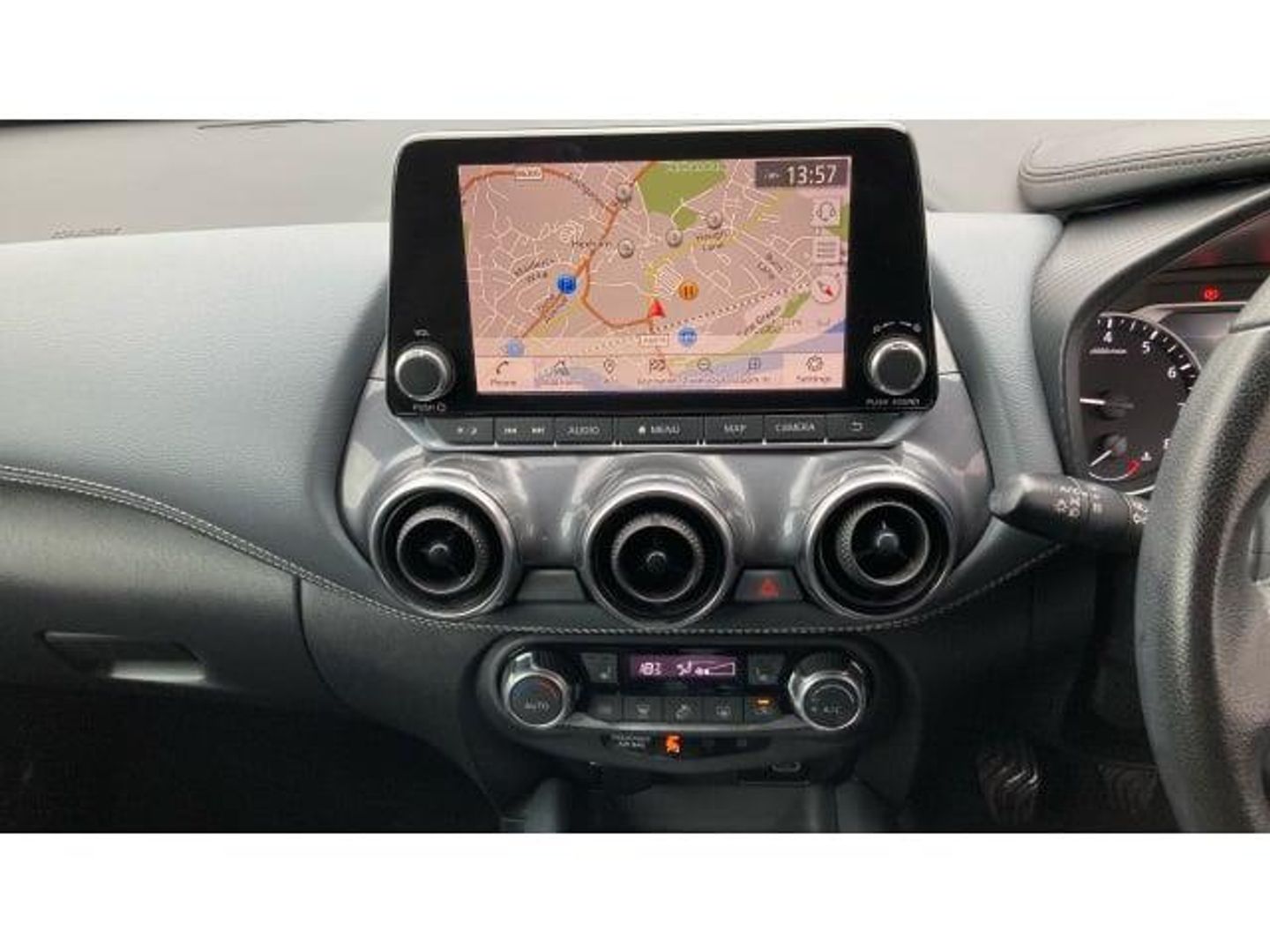 Air Conditioning, Climate Control, Metallic Paint, Cruise Control, Satellite Navigation, Heated Seats, Bluetooth, Parking Sensors, Stop Start, USB, Diamond Cut Alloy Wheels, Apple-Android Play, Rear Camera& Auto Lights, Rain sensor windscreen wipers, Rear privacy glass, Thermaclear heated windscreen, Front and rear electric window with one touch driver window, Rear wiper, VDC Dynamic Vehicle Control, Hill start assist, Electronic Stability Programme (ESP), ABS with EBD and brake assist, Intelligent emergency braking with pedestrian and cyclist recognition, Electric handbrake with auto hold function, Ventilated rear brake discs, Traction control, Voice recognition, Power Steering, Rear parking sensor, Lane departure warning system, Front parking sensor, Traffic sign recognition, Intelligent lane intervention, Drive modes select (Eco, normal and sport), Idle start/stop system, Nissan connect services and Wifi connection, Outside temperature sensor