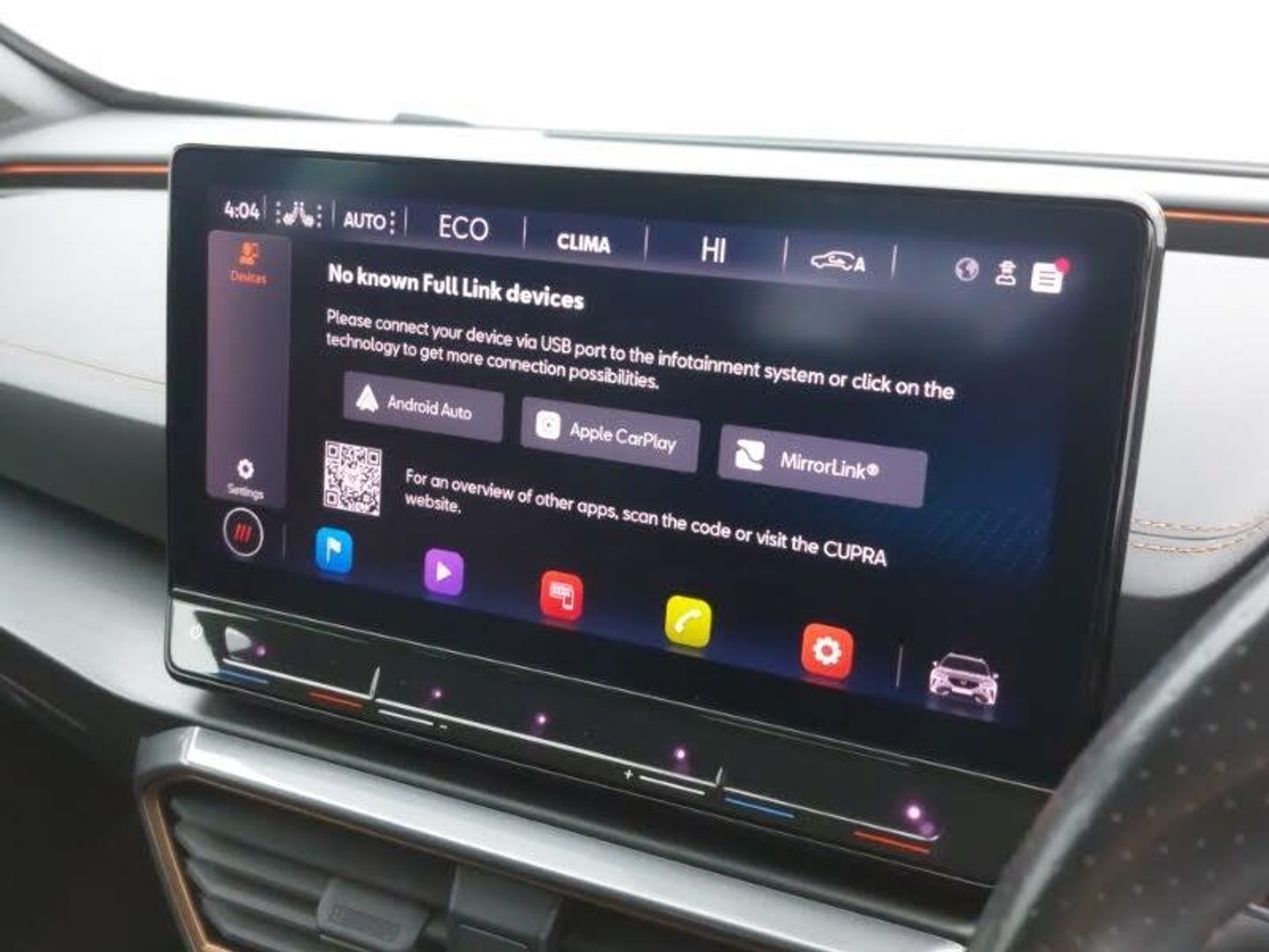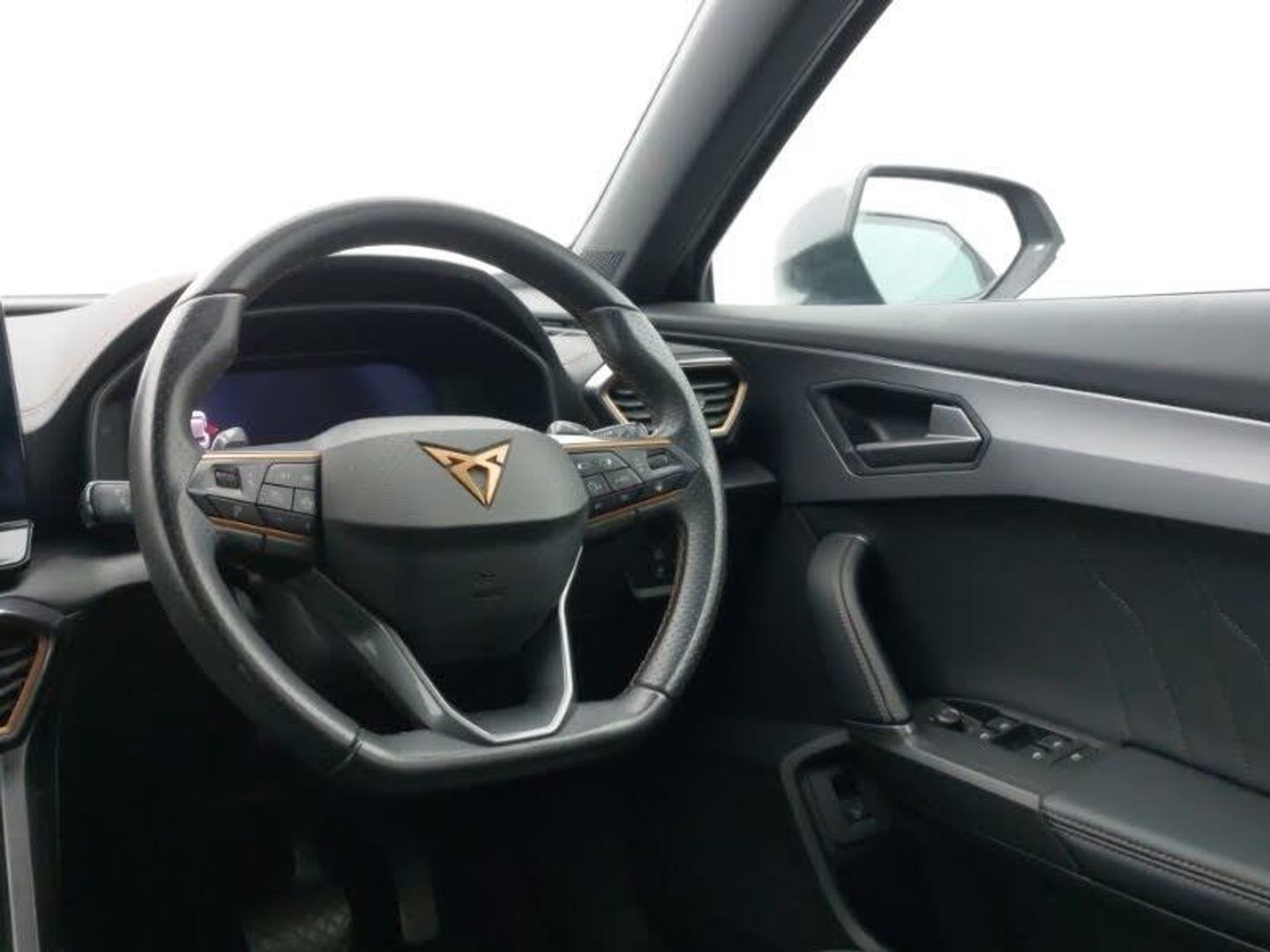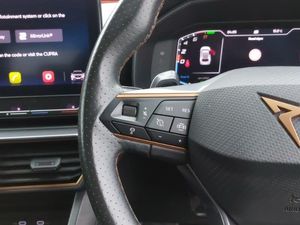 Genuine Nappa leather Pack - Cupra, Navigation system pack - Formentor, Digital cockpit and configurable dashboard, Lane assist, Park assist (inc front/rear parking sensors), Predictive adaptive cruise control with speed limiter, Rear view camera, RPM, trip computer, outside temp gauge, instrument light brightness, low fuel warning light, lights on reminder, gearshift indicator, Wireless apple carplay, Wireless phone charger, 10 amp mode 2 charging cable, 16 amp mode 3 charging cable, 3.6 kw On-board charger, Electronic locking differential and dynamic traction support, DAB radio, 2 front and 2 rear USB type C sockets, Auto dimming rear view mirror, Daytime running light with automatic headlight control and coming home feature, Dynamic headlight range control, Electrically adjustable heated and folding door mirrors with memory function, LED Headlights, LED Taillights with dynamic indicator, Rear diffuser with black simulated exhaust pipes