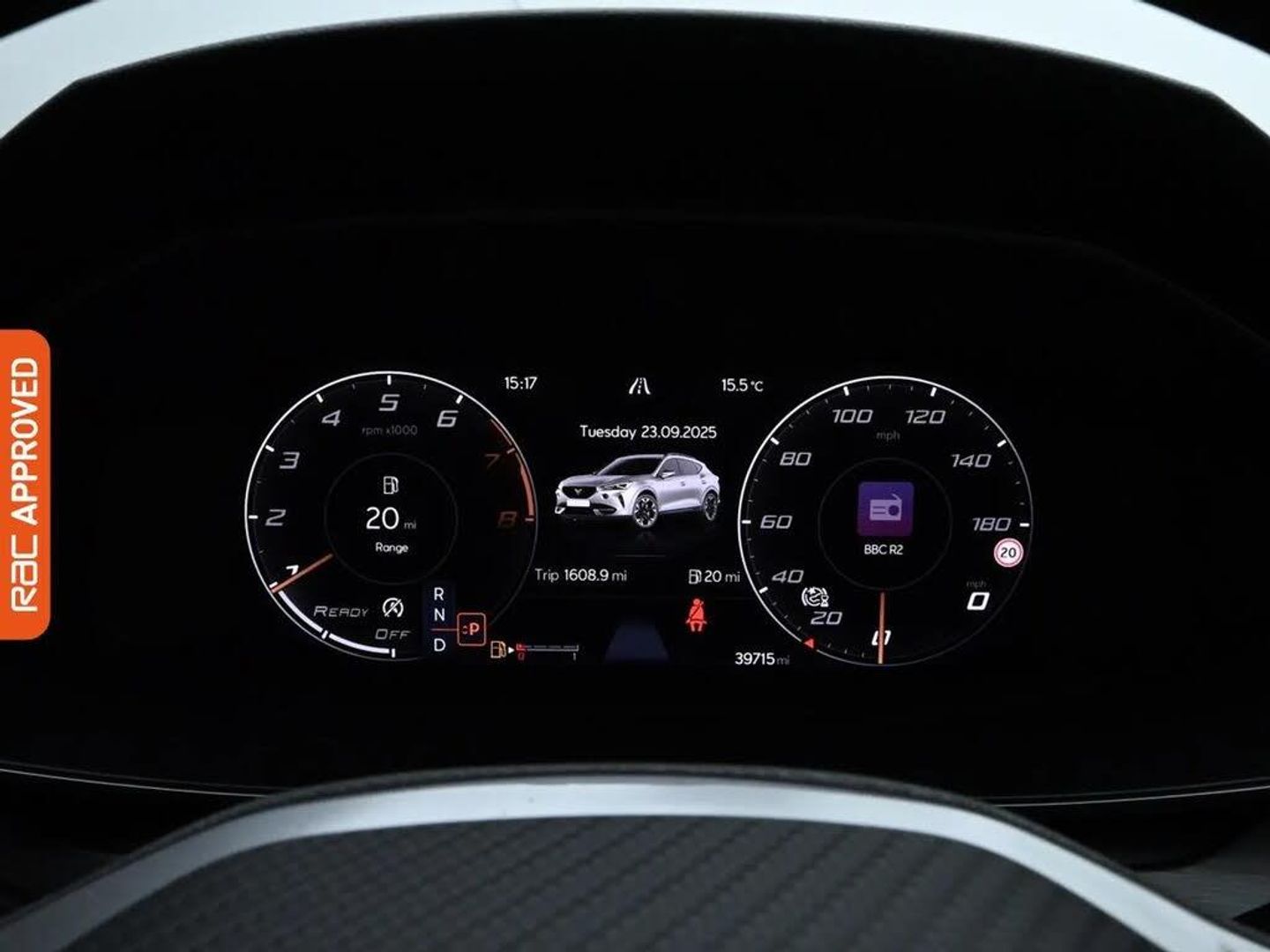 12V Socket in Front,Navigation System,USB Type C x4 - x2 Front and x2 Rear,Wireless Phone Charger,19in Alloy Wheels - Exclusive Machined Sport - Matt Black and Silver,Breakdown Kit,Door Mirrors Electrically Adjustable - Folding and Heated,Electric Window - Front,Electrically Adjustable - Folding and Heated Door Mirrors with Memory Function,Electronic Locking Differential with Dynamic Traction Support,Gloss Black Roof Rails and Window Surrounds,Locking Wheel Bolts,Rear Diffuser with Black Simulated Exhaust Pipes,Tinted Rear Windows,60-40 Rear Seats with Central Armrest and Mechanical Seat Release,Auto Dimming Rear View Mirror,Copper and Aluminium Interior Detailing,Front Centre Armrest,Front and Rear Head Restraints,Headlining - Grey,Illuminated Interior Front Door Sills,Illuminated Sunvisor with Mirror,Leather Multi-function Steering Wheel - Heated with Gear Shift Paddles,Leather Multifunction Steering Wheel,Rain Sensing Wipers,Reading Lights - 2x Front - 2x Rear,Smart Wraparound Interior Lighting,Three Zone Climate Control with Control Panel in the Rear,Variable Luggage Compartment Floor,Welcome Lights,ABS - Anti-Lock Braking System,Airbag on Driver and Front Passenger Side with Front Passenger Airbag Deactivation,Anti-Theft Alarm,CUPRA Connect - Safety - Service - Remote and Online,Electronic Parking Brake,Front Side Curtain Airbag,ISOFIX,Kessy - Keyless Entry and Start,Lane Assist,Safety and Driving Pack M,Seat Belt Reminder,Daytime Running Lights with Automatic Headlight Control and Coming-Leaving Home Lights,Dynamic Headlight Range Control,Front Fog Lights with Cornering Function,LED Headlight,LED Taillights with Dynamic Indicator,Digital Cockpit and Configurable Dashboard,Driver Alert System,Driving Profile Selection,Forward Collision Warning with Automatic Braking,Park Assist - including Front and Rear Sensors,Predictive Adaptive Cruise Control with Speed Limiter,Rear View Camera,Tyre Pressure Monitoring System,Power Steering