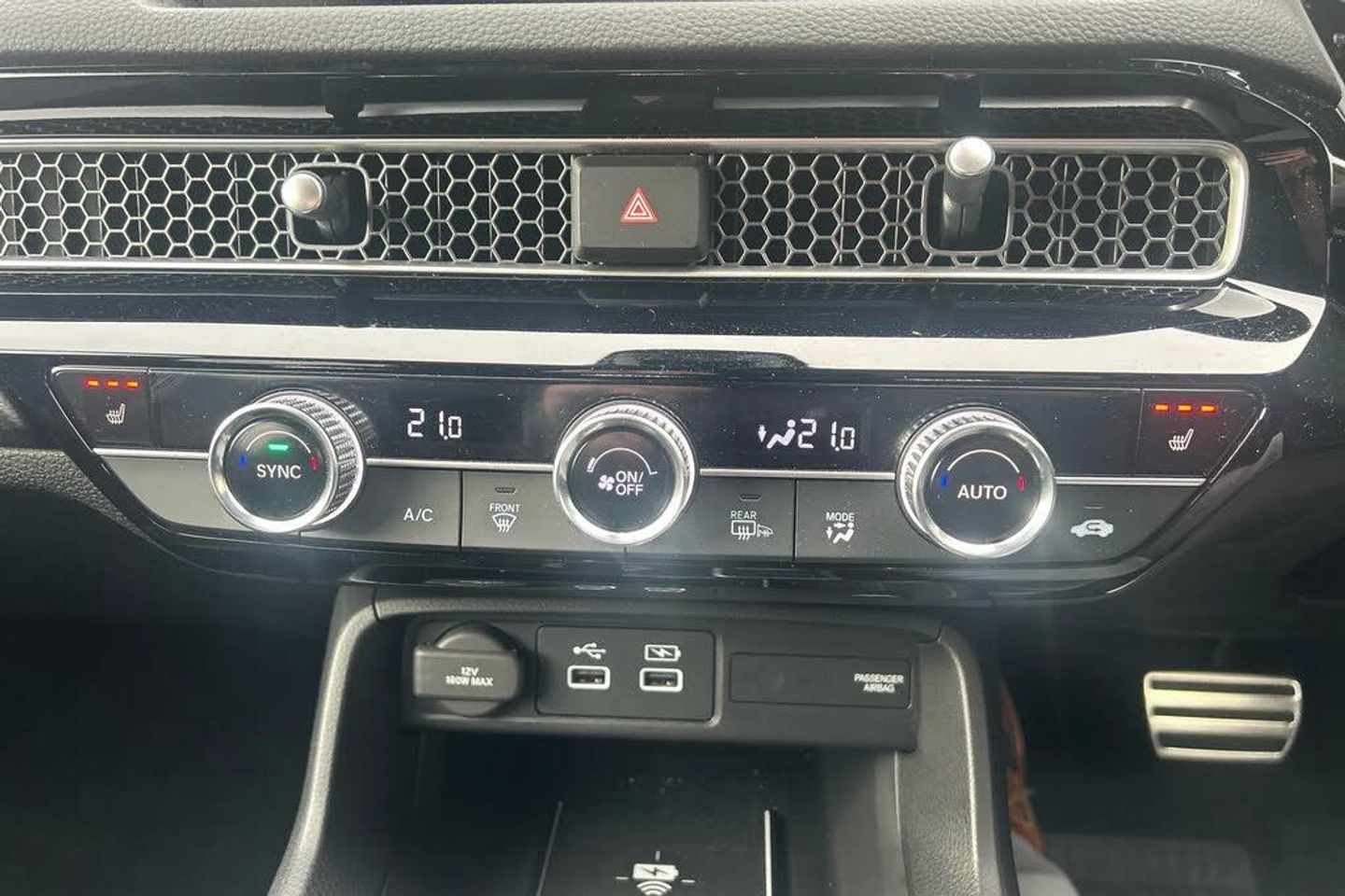 7" Multi information display screen,Adaptive cruise control,Adaptive motion for electric power steering,Adjustable speed limiter,Agile handling assist,BLIS (Blind Spot Information System) with Cross Traffic Monitor,Bluetooth hands free telephone connection,Driving modes,Economy mode,Electric power steering wheel with variable gear ratio steering,Emergency call service,Emergency stop signalling system,Forward collision warning,Front and rear parking sensors,Honda CONNECT with Navigation 9" touchscreen, AM/FM/DAB, Apple Carplay and Android Auto, live traffic info,Honda sensing,Idle stop,Intelligent speed limiter,Lane departure warning system,Lane keep assist,Low speed following,Power meter,Rear parking camera,Road departure mitigation,Smartphone wireless charging plate,Tailgate,Traffic jam assist,Traffic sign recognition,Wireless apple carplay,Vehicle stability assist,'Shark fin' mobile antenna,2x USB Front socket (1 data & 1 charge),8 Speakers,Digital Audio Broadcast (DAB) Tuner,Front tweeters,Steering wheel mounted audio controls,Aspherical driver door mirrors,Auto dimming rear view mirror,Auto headlight adjuster,Auto headlights,Automatic coming/leaving home lighting function,Automatic rain sensing wipers,Black window frames,Body colour door handles,Electric adjustable heated door mirrors,Electric front and rear windows,Electrically folding door mirrors,Gloss black mirror,Headlight extension black,High beam assist,High level LED brake light,LED daytime running lights,LED front fog lights,LED front turn type,LED Headlights,LED rear lights,Low gloss black window garnish,Material finish grille,Pop up hood,Privacy glass,Rear side wing doors,Rear wiper,Single hidden exhaust pipe,Variable front intermittent wipers,3 seat bench in 2nd row,60/40 split folding rear seat,Cargo accessory power socket,Cargo net hooks,Driver and front passenger seat armrests,Driver's electric lumbar adjustment,Driver's seat height adjustment,Dual climate control air conditioning system,Fabric/synthetic leather upholstery,Front accessory power socket,Front map lights,Front/rear courtesy lights,Glovebox light,Heated front seats,Hybrid emblem,Isofix points/i size,Leather steering wheel,Meter Illumination white,Passenger seat back pocket,Platinum chrome interior door handles,Rear air vents,Rear head restraints,Rear reading lights,Rear seat centre armrest,Single front passenger seat,Stainless steel sports pedals,Sunvisors with illuminated vanity mirrors,Tilt/telescopic adjustable steering wheel,Tonneau cover,Trunk light,USB Rear number 2 x charge,White ambient roof light,3x3 point rear seatbelts,ABS+EBD+Brake assist,Airbags - driver and front passenger,Airbags - Knee (AS),Airbags - Knee (DR),Anti-whiplash front headrests,Brake hold function,Collision mitigation braking system,Collision mitigation throttle control,Deflation detection system,Driver SRS airbag (single stage inflation),Electronic parking brake with auto hold,Front and rear curtain airbags,Front and rear seat belts with emergency locking retractor (ELR),Front centre airbag,Front side airbags,Hill start assist,Low speed brake system,Manual child lock in rear doors,Passenger airbag deactivate switch,Rear airbags,Regenerative braking/deceleration paddle control,Immobiliser,Mirrors and windows key fob,Remote central locking with 2 jack knife keys,Security alarm,Selectable door unlock,Smart entry + Smart start,Superlocking,Tilt sensors,Ultrasonic security sensor,Tyre repair kit