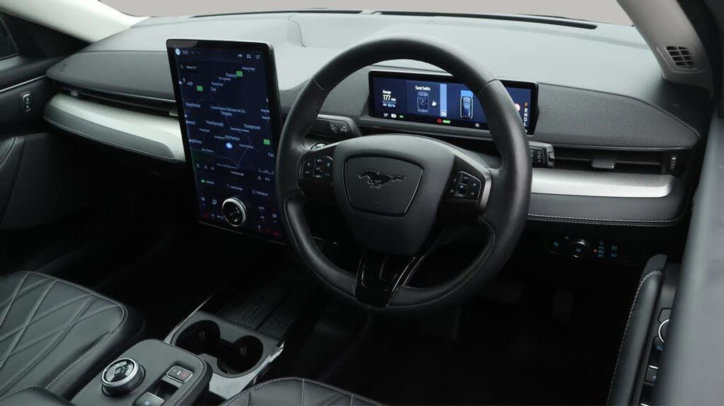 FREE £750 towards your finance-Our Ford Mustang Mach-E is finished in Black. Specification includes a range of fantastic features including FREE £750 towards your finance Deposit, 18'' alloy wheels, Leather Seats, Adaptive Cruise Control, Apple CarPlay, Android Auto, Satellite Navigation, Privacy Glass, Heated Seats, Rear View Camera Specification information is supplied by CAPHPI and may vary to the actual car. This data does not form any part of a buying contact. Please check specification prior to purchase in-store. The MOT is valid until July 2026, visit bigmotoringworld.co.uk for more photos, a 360 tour, service history and a free HPI report.Were BIG on peace of mind and this Black Ford Mustang Mach-E has completed our comprehensive 200 point inspection and passed all checks. Its ready for you to drive away with immediate collection in-store. We include a 90-day warranty as standard plus an option to extend for up to 3 years.Reserve this car exclusively for you, safely and securely at bigmotoringworld.co.uk, with a fully refundable £99 deposit. Test drive before you buy, with no commitment, no hassle and a completely haggle free experience. Still searching and want to see thousands more cars? We are BIG on choice with over 8000 cars to choose from.Visit our award winning web site bigmotoringworld.co.uk.Were Big Motoring World and were BIG on what matters to you.-Multi Award Winning Website & Car Supermarket of the year WINNER 2018. Call now.