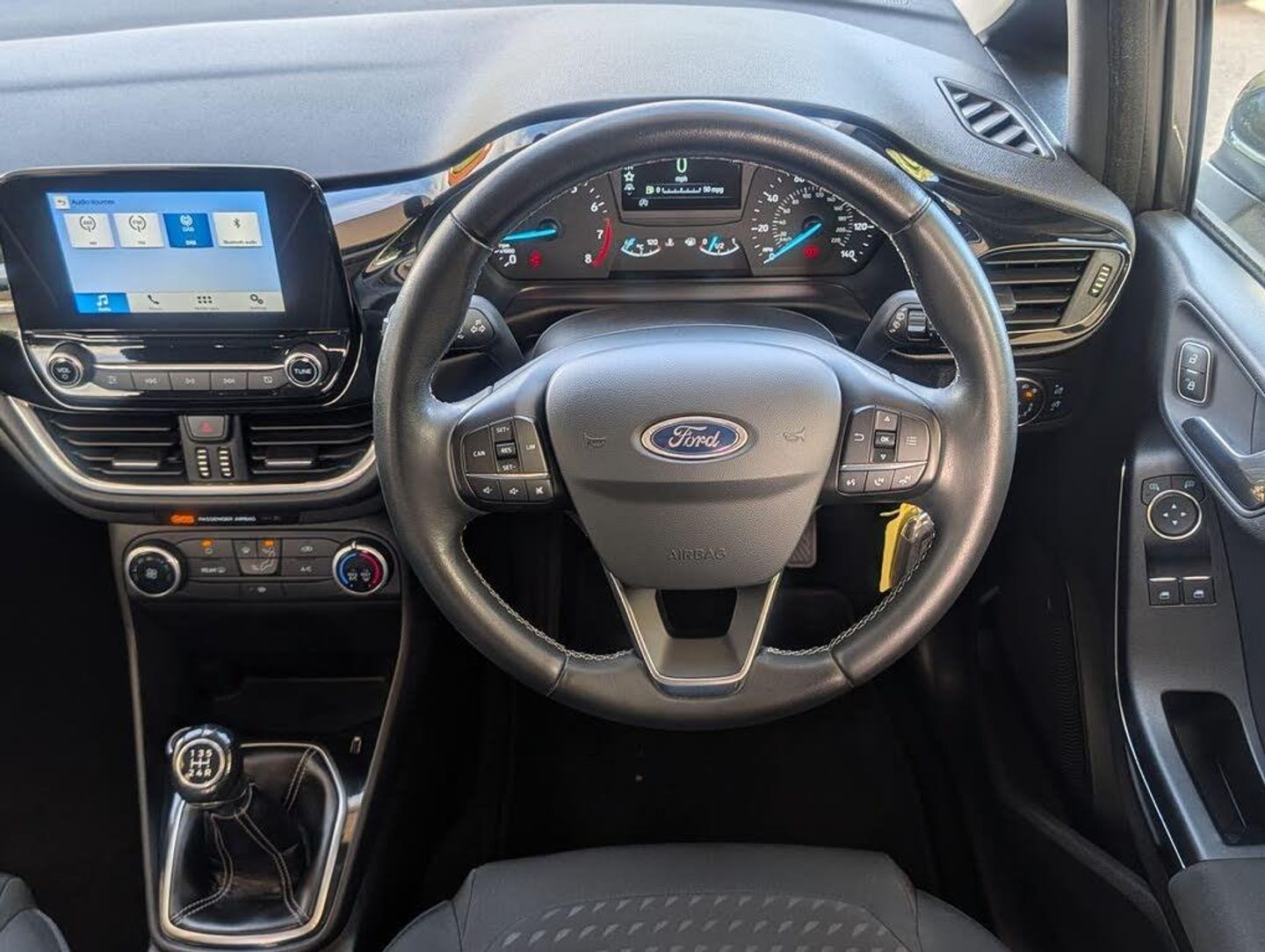 15in Alloy Wheels - 8 Spoke, 3-Spoke Leather Trimmed Steering Wheel with Audio Controls, ABS - Anti-lock Braking System, Air Conditioning - Manual, Airbags - Driver, Airbags - Front Passenger, Airbags - Front and Rear Side Curtain, Airbags - Side Curtain, Airbags - Side Impact, Body Coloured Electrically Operated Door Mirrors with Integrated Side Indicators, Centre Console with Two Cupholders and 12V Power Point, Chrome Belt Line Finisher, Chrome Upper Grille, Courtesy Light - Front Map Light and Rear - Overhead LED, Door Handles - Body Colour, Door Lever - Chrome Finish, EBD - Electronic Brakeforce Distribution, Electrically-Operated Front Windows with One Touch Drivers, Electronic Stability Control - ESC with Traction Control and Emergency Brake Assist - EBA, Electronic Stability Programme - ESP with Hill Start Assist, Ford DAB Radio with Ford SYNC3 - Apple Car Play and Android Auto, Ford Easy Fuel System, Front Bumper - Body Colour, Front Fog Lamps with Cornering Lights, Gearshift Knob - Leather-Trimmed, Glovebox - Illuminated, Headlights - Automatic On-Off, Headlights - Halogen Projector with Black Bezel and Dedicated LED Daytime Running Lights, Headliner - Woven, IPS - Intelligent Protection System, Leather-Trimmed Handbrake, Manual Drivers Seat Height Adjustment, MyKey, NCAP Pack, Overhead Console - Sunglasses Holder, Power Steering, Quickclear Heated Windscreen, Rear Bumper - Body Coloured Upper and Self Colour Lower, Rear Fog Lamps, Rear Seat - 60-40 Split Back and Cushion, Rear Spoiler - Body Colour, Remote Central Locking and Engine Immobiliser, Seats - Front Comfort Style, Steering Column - Rake and Reach Adjustment, Tailgate Wash-Wipe, Thatcham Alarm, Trip Computer, Tyre Pressure Monitoring System - TPMS, Tyre Repair Kit, Warning Triangle Storage, Wipers - Standard with 6 Speed Interval Settings