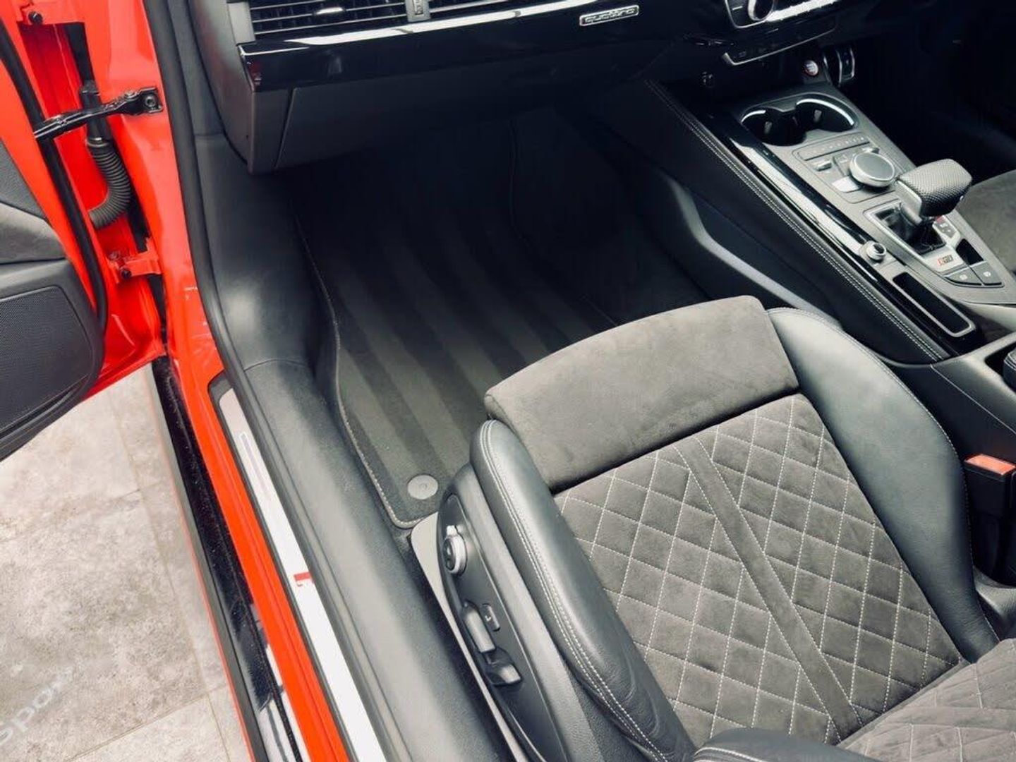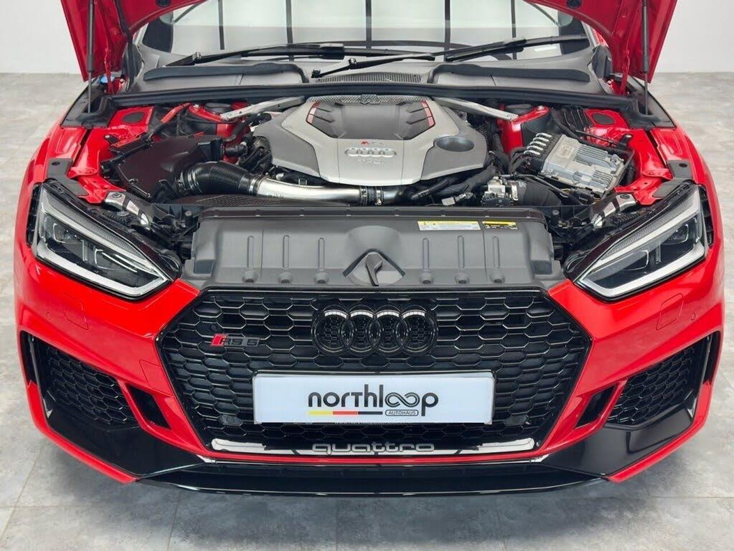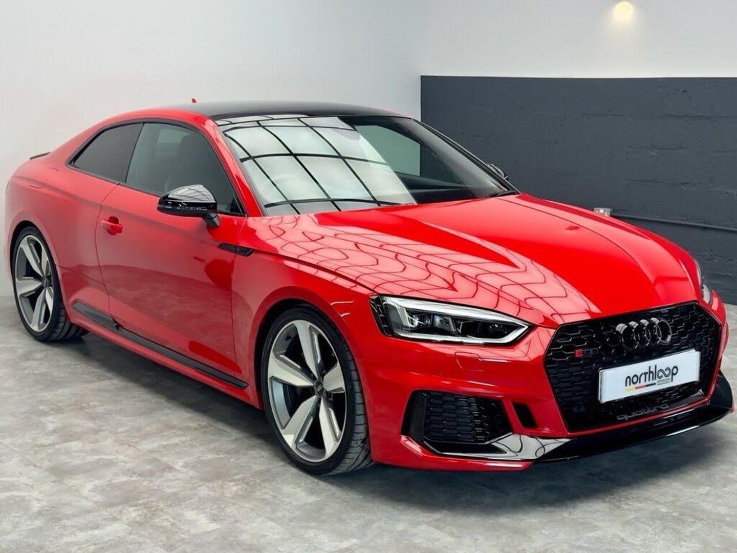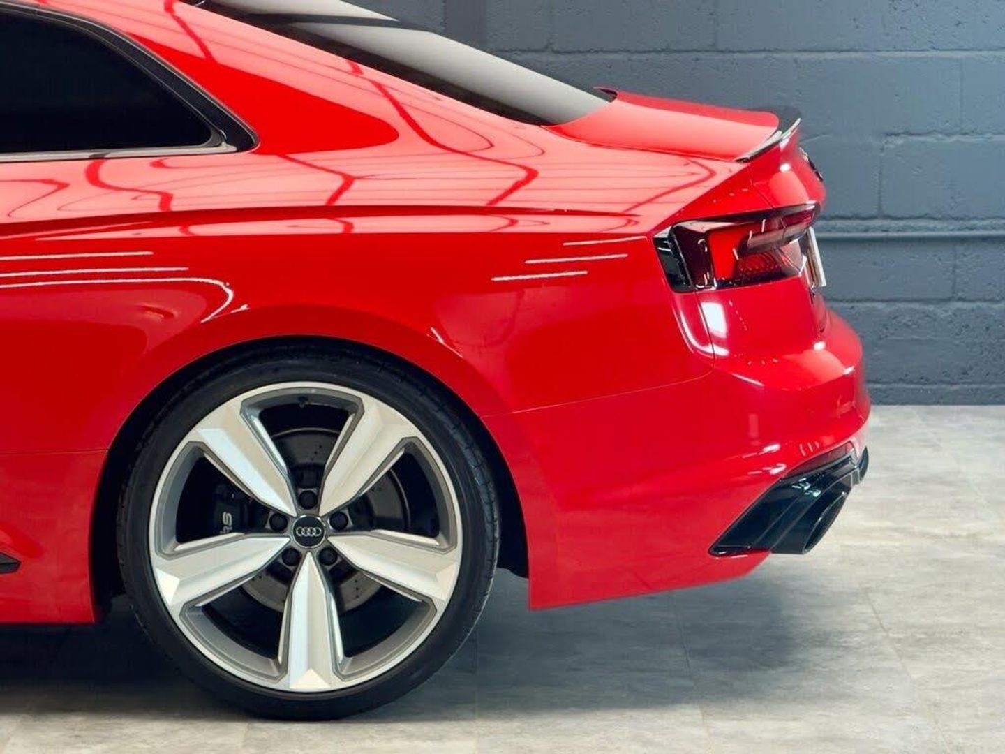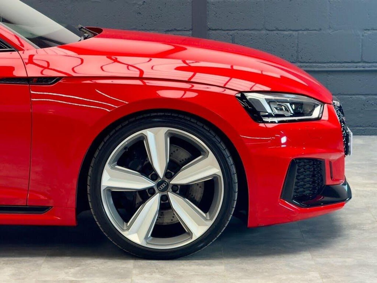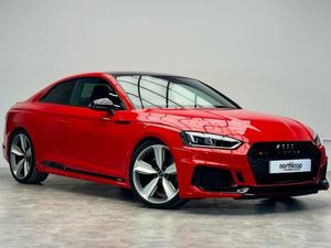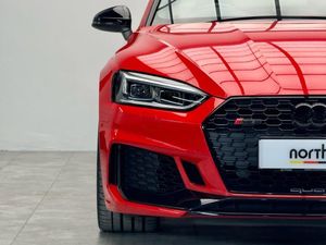 Leather-Alcantara - RS Super Sports with Pneumatic Massage Function - Black with Rock Grey Honeycomb Contrast Stitching, Misano Red, 20in Alloy Wheels - 5-Arm Peak Design Gloss Milled Aluminium in Anthracite Matt Black, 6-Airbag System, ABS - Anti-Lock Braking System, Anti Theft Locking Wheel Bolts, Anti-Theft Alarm, Audi Connect Infotainment Services - 36 Month Trial, Audi Connect Safety and Service, Audi Phone Box with Wireless Charging, Audi Side Assist, Audi Smartphone Interface, Audi Sound System, Audi Virtual Cockpit, Auto-Dimming Rear-View Mirror, Black Styling Package, Brake Calipers Painted in Black with RS 5 Logo at the Front, Cloth Headlining in Black, DAB Digital Radio Reception, Deluxe 3-Zone Electronic Climate Control, Door Handles - Body Coloured, Door Mirrors - Electrically Folding - Adjustable and Heated with Integrated LED Side Indicators and Kerb-view Function for Passenger Side, Door Sill Trims - Illuminated with RS5 Logo, Electric Windows - Front, Electrically Adjustable Front Seats, Electromechanical Power Steering, First Aid Kit and Warning Triangle, Flat-Bottomed High Multi-function 3-Spoke Leather Sport Steering Wheel with RS Badging, Front Centre Armrest, Front and Rear Floor Mats, High-Beam Assist, Hill Hold Assist, Inlays - Piano Finish - Black, LED Headlights with RS Air Intake, LED Interior Light Package, Leather Door Armrests and Knee Pad, Light and Rain Sensor, MMI Navigation Plus including MMI Touch, Multi Collision Brake Assist, Panoramic Glass Sunroof, Pedals in Stainless Steel, Pneumatic Massage Function, Pop-Up Bonnet for Pedestrian Protection, Pre-Sense City, Privacy Glass with Rear Acoustic Glazing, RS Audi Drive Select, RS Body Styling, RS Dual-branch Chrome Tailpipes with Large Oval Pipes Each on Left and Right, RS Model Enhanced Braking System, RS Sports Exhaust System, RS Sports Suspension, RS-Specific Gear Lever Knob in Perforated Leather with Contrast Stitching, RS5 Badges on Grille - Front Wing Panels and Rear, Remote Control Key with RS Emblem, Seat Belt Monitoring, Split-Folding 2-Seater Rear Seat Bench in 3 Parts - 40-20-40 with Rear Centre Armrest, Tool Kit, Windscreen with Acoustic Glazing, quattro with Sports Differential