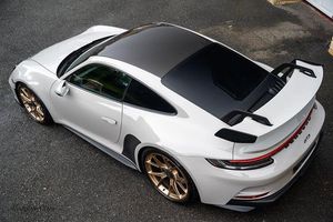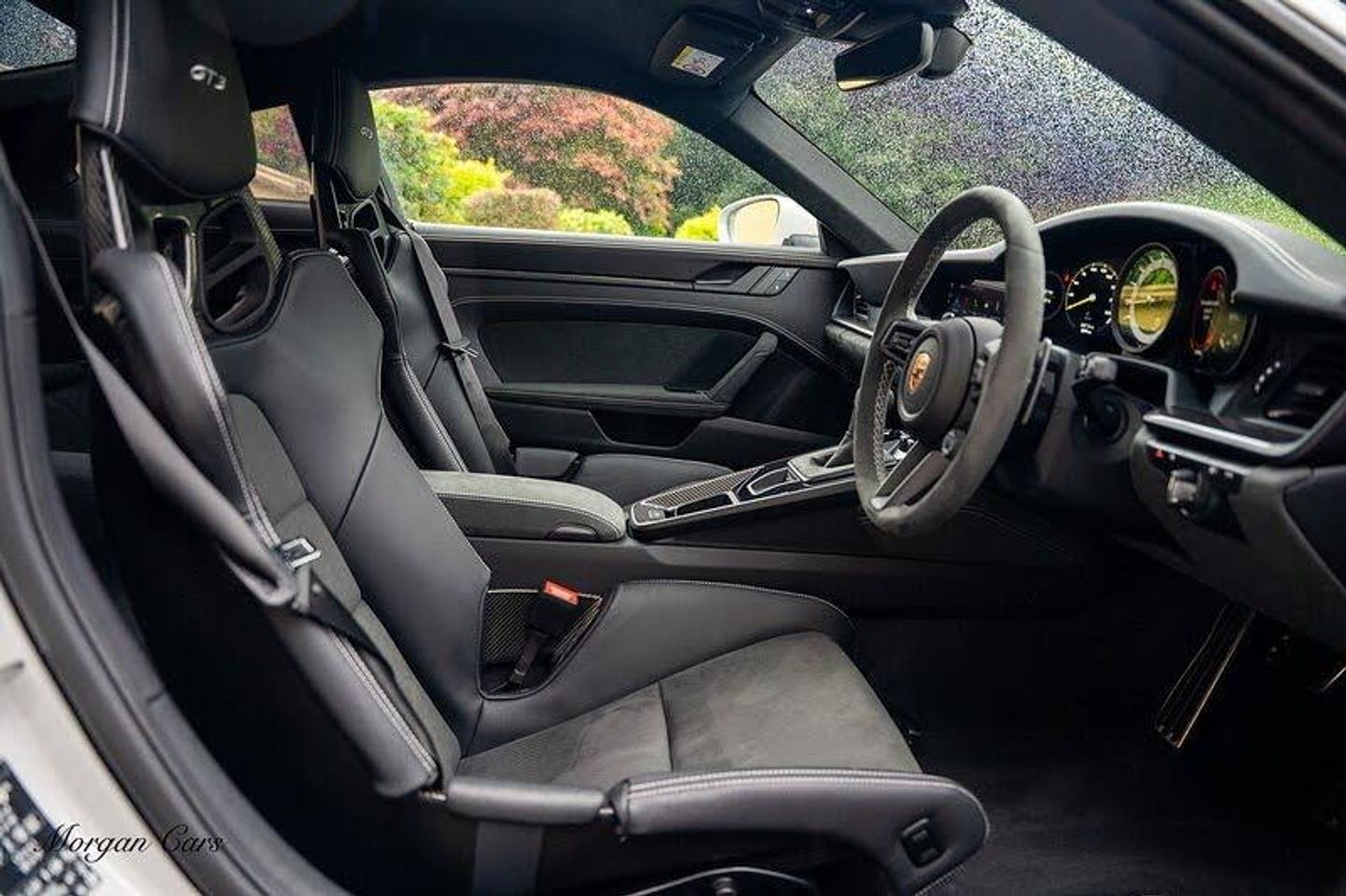 2 USB-C Ports in Centre Console Main Storage Compartment Lid - 12V Socket in Passenger Footwell, Digital Radio, PCM - Porsche Communication Management - Include Navigation, Porsche Connect Online Navigation, Porsche Track Precision App, Smartphone Integration - Apple Carplay and Android Auto, Sound Package Plus, Brake Pad Wear Indicator, Cruise Control, Tyre Pressure Monitoring - TPM, 20in Front 21in Rear Alloy Wheels - 911 GT3 Forged - Silver, Automatically Dimming Interior and Exterior Mirrors with Integrated Rain Sensor, Central Wheel Bolts in Black and Wheel Hub Cover with GT3 Logo, Exterior Mirrors on Door Waist Rails - Electrically Adjustable and Heatable - Aspherical on Drivers Side, Exterior Mirrors Upper and Lower Trim Painted in Exterior Colour - Mirror Base Painted in Satin Black, Fixed Rear Wing with Swan Neck Connection and Wing Mounts in Aluminium which are Integral to the Bodyshell, Front Apron in Exterior Colour - Black Lower Section with Integral Cooling Air Intakes with Anthracite-Coloured Grilles and Black Spoiler Lip, GT3 Model Designation in Satin Black on Rear Apron, Heated Rear Screen, Intelligent Lightweight Construction in Aluminium-Steel-Composite Construction, LED Auxiliary Lights Units in Front Apron with Position Lights - Direction Indicators and Side Indicators, Lightweight Bonnet in Carbon-Fibre Reinforced Plastic in Exterior Colour with Two Air Outlets, Lightweight Sport Exhaust System in Stainless Steel with Two Central Stainless Steel Tailpipes in Black, Power Windows with One-Touch Operation and Door Seal Protection Function, Rear Apron with Additional Air Outlets Including Anthracite-Coloured Grilles - Black Lower Section, Rear Wing in Exterior Colour with Side Plates on Rear Wing - Wing Uprights in Black, Retractable Door Handles, Seamless Taillight Strip with Integrated Porsche Logo in Satin Black, Side Window Trim Strips and Side Skirts in Black, Six-Piston Closed Type Aluminium Monobloc Fixed Brake Calipers at Front and Four-Piston Closed Type Aluminium Monobloc Fixed Brake Calipers at Rear - Brake Calipers with Red Finish, Taillight Strip as Rear Driving Lights with Integrated Parking and Rear Fog Light, Tyre Repair Kit, Water-Repellent Coating on Side Windows, Windscreen with Grey Top-Tint, Automatic Headlight Activation including Welcome Home Lighting, LED Main Headlights - Daytime Running Lights with 4-Point LED Spotlights, Taillights with Brake Light - Reversing Light and Direction Indicators Plus Third LED Brake Light, Black Race-Tex Seat Centres - Steering Wheels Rim - PDK Gear Grip Area including Gaiter - Door Pulls - Door Panel Armrest - Centre Console Main Storage Compartment Lid Armrest, Clothes Hooks on Seat Backrests, Door Release Levers in Black - Trim Strips in Black with Inlays in Brushed Aluminium in Anthracite - Dashboard and Door Panel Trim Strips and Centre Console Trim, Door Sill Guards in Brushed Aluminium in Anthracite with GT3 Logo, Floor Mats, Glove Compartment - Lockable and Storage Compartment in Each Door, GT-Specific PDK Gear Selector with Manual Gate and Grip Area including Gaiter in Black Race-Tex - Gate Surround with GT3 Logo in Yellow, Illuminated Vanity Mirrors in Sun Visors - Driver and Passenger Sides, Instrument Cluster with Central Analogue Rev Counter - Two 7in TFT Display, Keyless Go, LED Reading Lights - Orientation - Ignition Lock - Luggage Compartment - Footwell - Glove Compartment and Exit Courtesy Lighting, Lightweight Glazing made of Compound Glass and Acoustic Film, Lightweight Rear Cover - Covered with Black Carpet, Luggage Compartment - Front, Multifunction GT3 Sports Steering Wheel - PDK Shift Paddles in Dark Silver and Mode Switch, Particle-Pollen Filter with Active Carbon Filter, Rev Counter with Digital Display for Selected Gear and Vehicle Speed - Distinguishable Dial and Illuminated GT3 Logo, Roof Lining and A-B-C Pillar Trims in Race-Tex, Seat Bolsters - Headrests and Steering Wheel Airbag Module in Black Leather, Sports