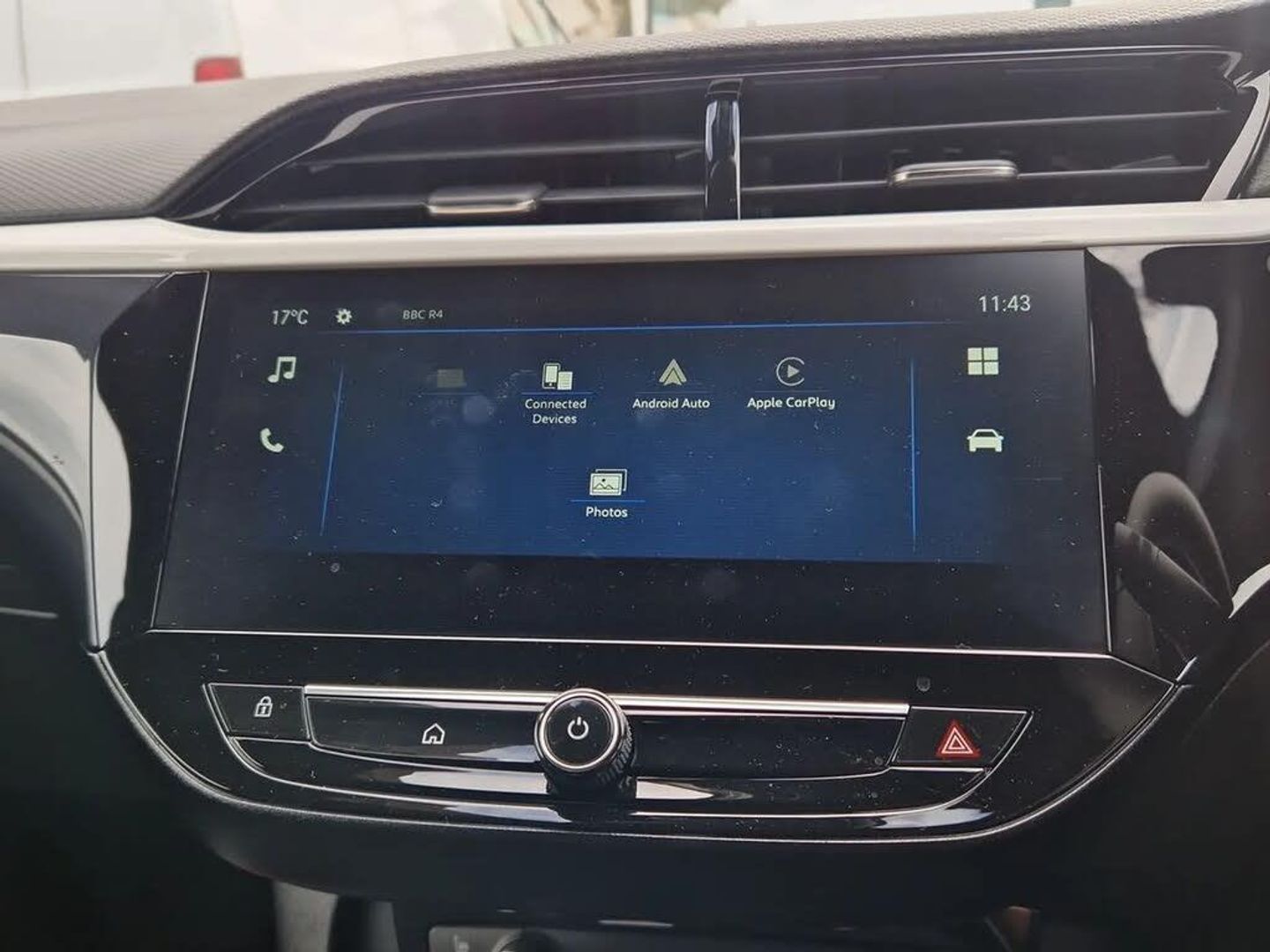 7 inch digital instrument cluster display,Breakdown call (b-call),Central facia display with digital clock, outside air temperature and audio information,Cruise control with intelligent speed limiter,Driver drowsiness alert system,E-call,Engine oil life indicator,Front camera system,Instrumentation - Speedometer, rev counter, low fuel gauge warning light + water temperature gauge warning light,Lane departure warning,Lane keep assist,Lights on audible warning,Multi function trip computer,Pre conditioning of vehicle temperature,RDS with traffic programme,Rear parking distance sensors,Remote check of battery level programming and charge management,Service indicator,Smartphone projection,Speed sensitive power steering,Speed sign recognition,Start/stop system,Vauxhall connect box,Vehicle status and information,Wireless Apple CarPlay/Android Auto,Electronic returnless fuel system,Petrol Particulate Filter,Under body shield for aero,AM/FM stereo radio,Bluetooth A2DP audio streaming,DAB Digital radio,Multimedia with 10-inch touchscreen,Six speakers,Steering wheel audio, phone and cruise controls,USB type C port,3rd brake light,Automatic headlight control system,Black door mirror housings,Black lower side window mouldings,Black rear griffin badge and model lettering,Body colour door handles,Body colour rear bumper,Bonnet/headlight/wiper structure,Corsa lettering in tailgate,Dark tinted rear side windows + tailgate window,Electrically adjustable and heated door mirrors,Electrically operated front and rear windows with safety auto reverse and one touch up/down facility,Electrochromic automatic anti-dazzle rear view mirror,Flexible roof mounted aerial,Glazed tailgate and heated rear window with wash/wipe facility,Halogen tail lamps,Hazard warning lights,Headlamps for left side traffic,High beam assist,High gloss black finish B pillar,Intelli-LED headlights,LED daytime running lights,Rain sensitive windscreen wipers,Rear fog lamp,Rear reversing lights,Rear side wing doors,Rear wiper,Solar heat absorbing windscreen and windows,Sports front and rear body styling for upper and lower bumper design,Two speed windscreen wipers with variable intermittent wipe,Windscreen and side window demist vents,12V power sockets,3 bench rear seats in 2nd row,4 speed fan with illuminated controls,6 way manual adjustable co-driver seat height up/down, reach fore/aft, backrest upright/recline,6 way manual adjustable driver seat height up/down, reach fore/aft, backrest upright/recline,60/40 split folding rear seat,Air conditioning with air recirculation facility,Banda cloth upholstery,Black headliner,Cabin particulate filter - removes dust, airborne particles and pollen,Comfort front seats,Driver/passenger sunvisors with vanity mirrors + covers,Flat bottomed steering wheel,Four adjustable facia vents,Front cupholder,Front headrests,Height adjustable head restraints,Illuminated glovebox with lid,Interior courtesy light,Internal chrome door handles,LED boot light,Polyurethane gear knob/lever,Reach and rake adjustable steering column,Rear cupholder,Rear headrests,Right hand drive (RHD),Single dome lamp with dual front reading lamps,Single front passenger seat,Two litre open door pockets,Vegan leather steering wheel,YES interior badging,Winter pack - Corsa,3 rear 3 point seatbelts,Anti-lock braking system (ABS),Automatic emergency braking with pedestrian detection,Cornering brake control,Deactivation switch for front passenger's airbag,Drag torque control,Driver and front passenger airbags, front seat side impact airbags, full size curtain airbags,EBD - Electronic brakeforce distribution,Electrical child lock system in rear door latch,Electronic Stability Programme (ESP),Emergency brake assist,Forward collision alert,Front seatbelt unfastened audible warning and warning light,Front ventilated disc brakes - 381mm,Hill hold and start system,ISOFIX child seat mountings incorporating top tether anchor points located on second row rear seats,Manual handbrake,Rear drum brakes - 203mm,Seatbelt pretensioners,Single tone horn,Straight line stability control,Traction control,Tyre deflation detection system,2 keys one folding with integral remote,Electronically protected audio equipment,Engine deadlock and immobiliser,Freewheeling door locks,Locking wheel nuts,Remote control central locking,Remote locking fuel filler flap,Steering column lock,Visible vehicle identification number,16" Diamond-cut hi-gloss black alloy wheels - Yes Petrol,Tyre repair kit