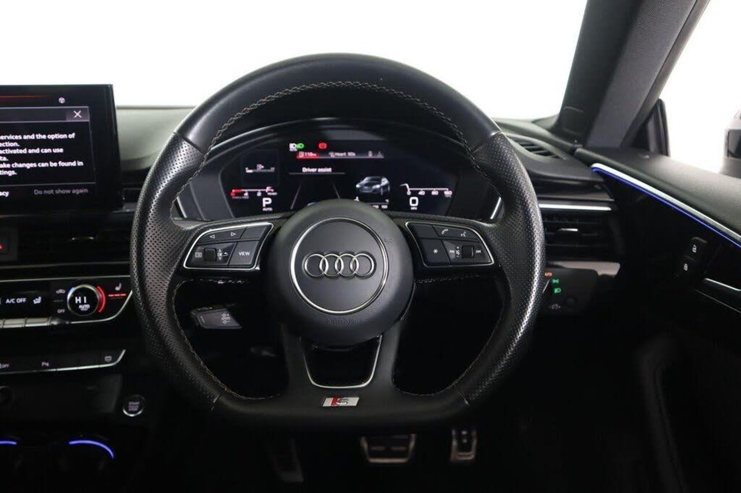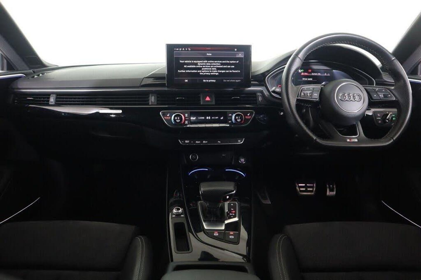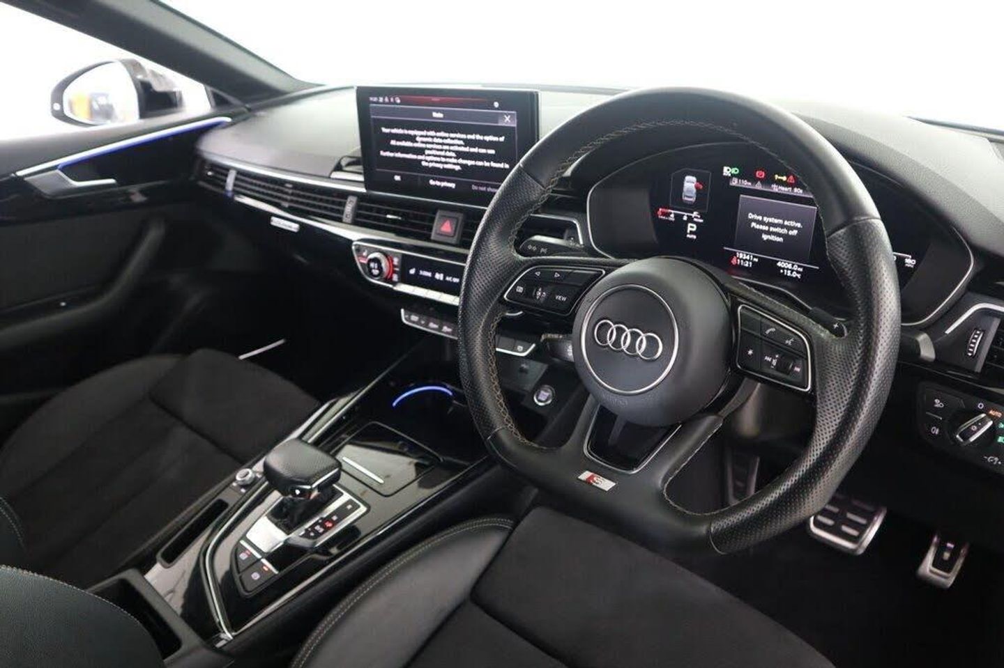 20in Alloy Wheels - 9J 5-Twin-Spoke - Polygon Design - Gloss Anthracite Black - Gloss Turned Finish, 4-Way Electric Lumbar Support, 6-Airbag System, 8 Passive Loudspeakers, Anti Theft Locking Wheel Bolts, Anti-Theft Alarm, Audi Connect Infotainment Services (36 Month Subscription From New), Audi Connect Safety and Service, Audi Connect with Amazon Alexa Integration, Audi Drive Select, Audi Matrix LED Headlights with LED Rear Lights and Dynamic Front and Rear Indicators, Audi Smartphone Interface, Audi Virtual Cockpit, Auto-Dimming Rear-View Mirror, Automatic Start-Stop with Coasting Functionality and Efficiency Programme, Black Styling Package, Bluetooth Interface, Body Coloured Side Sill Trims, Cloth Headlining in Black, Contrast Stitching on Seats - Steering Wheel and Gear Lever Gaiter, Cruise Control System with Speed Limiter, DAB Digital Radio Reception, Deluxe 3-Zone Electronic Climate Control, Door Handles - Body Coloured, Door Mirrors - Black Housing, ESC - Electronic Stabilisation Control inc ABS - ASR and EDL, Electric Windows - Front, Electromechanical Power Steering, Email - Calendar and Text Messages can be Displayed on your Vehicles MMI, First Aid Kit and Warning Triangle, Flat-Bottomed 3-Spoke Leather High Multi-Function Steering Wheel, Front Centre Armrest, Front Spoiler Lip in Body Colour, Gear Lever Knob in Black Perforated Leather, Heated Front Seats, Hill Hold Assist, ISOFIX Child Seat Mounting and Top Tether, Illuminated Door Sill Trims with S Logo, Inlays - Piano Finish - Black, Keyless Go, LED Interior Light Package, Light and Rain Sensor, MMI Navigation Plus with MMI Touch, Manual Seat Adjustment, Multi Collision Brake Assist, Parking System Plus - Front and Rear Sensors, Pedals in Stainless Steel, Pop-Up Bonnet for Pedestrian Protection, Power Operated Tailgate, Pre-Sense City, Privacy Glass, Radiator Grille with Honeycomb Structure in Grained Matt Black, Rear-View Camera, S Model Rear Spoiler in Black, Seat Belt Monitoring, Side Air Inlets in Grained Matt Black with Inlay in Matt Aluminium Silver, Split-Folding 3-Seater Rear Seat Bench in 3 Parts - 40-20-40, Sport Suspension, Tailpipe Trims in Matt Aluminium Silver, Tool Kit, Two Additional USB Ports for Rear Passengers in the Rear Centre Console, Tyre Repair Kit, Voice Control, S Line Rear Diffuser in Matt Titanium Black with Trim Strip in Matt Aluminium Silver