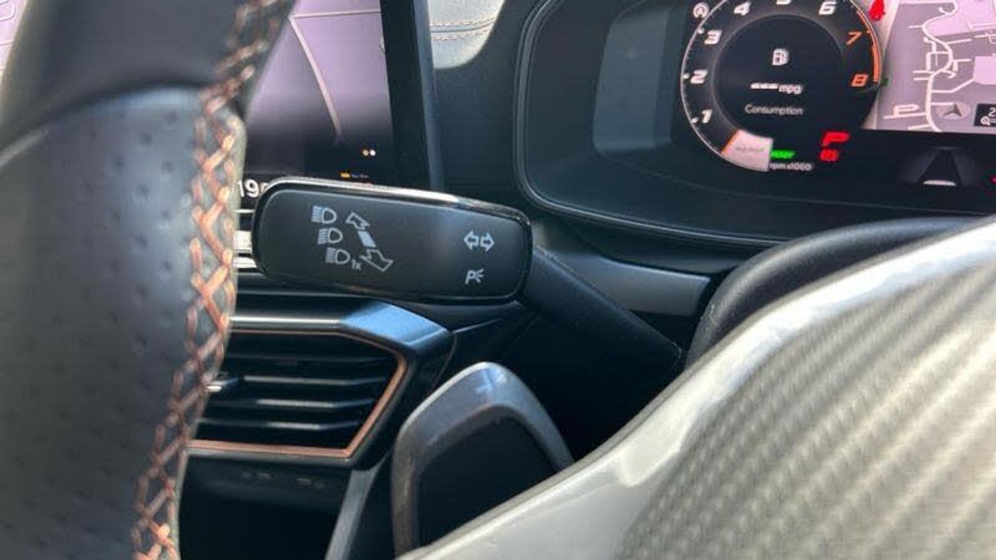 Electric front/rear windows, Rear wash/wipe, Body colour door handles, Body coloured bumpers, Cupra side skirts painted in obsidian black, Rear side wing doors, Cupra matrix LED ultra headlight with variable light distribution, high definition LED w/signature w/ceremony, High-resolution matrix beam plus digital projection, LED rear fog lamp, Separate daytime running light with automatic headlight control and coming home feature, Third brake light, Welcome light with logo projector in door mirrors, ABS, Cupra black brake calipers, Disc brakes in front, Hill hold control, Rear disc brakes, CUPRA drive profile selection with (Comfort/Performance/Individual), throttle response and gearshift mode, Front and rear parking sensors, Front assist with forward collision warning braking reaction to vehicles, pedestrians and cyclists, Side and exit assist, Electrically adjustable, heated and folding door mirrors, 3 point seatbelts on all rear seats, Child proof door locks, Driver and front passenger airbags with front passenger airbag de-activation, front side and curtain airbags, Pre-crash front and rear seat belt tensioner, window closure and hazard lights, Seat belt reminder for front and rear seats, Tiredness recognition system, E-call, Full link smartphone integration with Mirror Link, wireless Apple CarPlay and wired Google Android Auto, Auxiliary input socket, Lockable tailgate, Start/stop system with regenerative braking, Four x USB Type C ports (2 in front and 2 in rear), RPM, trip computer, outside temp gauge, instrument light brightness, low fuel warning light, lights on reminder, gearshift indicator, Service interval indicator, 3 seat bench in 2nd row, 5 headrests, 60/40 split rear bench seat with armrest, Electrically adjustable driver seat and lumbar support with memory function + manually adjustable passenger seat, Single front passenger seat, Black headlining, Cupra sports pedals, CUPRA Supersports, heated steering wheel with satellite buttons, Height/reach adjust steering wheel, Illuminated interior front door sills, Leather upholstery, Ambient lighting (glovebox, footwell, ambient lighting multicoloured), Front and rear reading lights X 4, Sunvisors with illuminated mirror, Dynamic and comfort pack - Leon Cupra, Media system plus with 12.9 display + navigation pack - Leon Cupra, Anti theft alarm system with interior monitoring in cab, backup horn and towing protection, KESSY Advanced - Keyless start, keyless entry, Locking wheel bolts, 19 Sport Matte black alloy wheel, [Audio and Communications]Wireless phone charger, 12v power supply in centre console, [Drivers Assistance]Adaptive cruise control with follow-to-stop and speed limiter, Driver alert system, Dynamic road sign display, Front cross traffic assist, Intelligent park assist, Rear view camera, Tyre pressure monitoring system, Digital cockpit, [Exterior]Dark tinted rear windows, Black roof spoiler, Cupra sports bumpers, Rear diffuser with black simulated exhaust pipes, [Illumination]High beam assist, LED front fog lamps with cornering function, [Interior]Rain sensing wipers, Auto dimming rear view mirror, Chrome and copper interior detailing, Heated front seats, Three zone climate control, Folding boot cover, Front centre armrest, Storage pockets on rear of front seats, Interior wraparound lighting, Tool kit, [Performance]Brake control system - ESC and brake booster, [Safety and Security]Electronic parking brake, Lane change assist with emergency assist, ISOFIX points in outer rear seats with top tether anchorage points