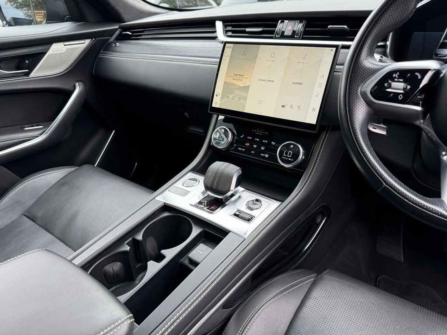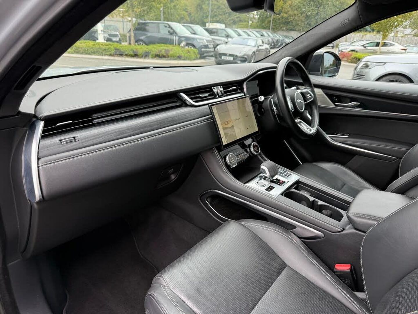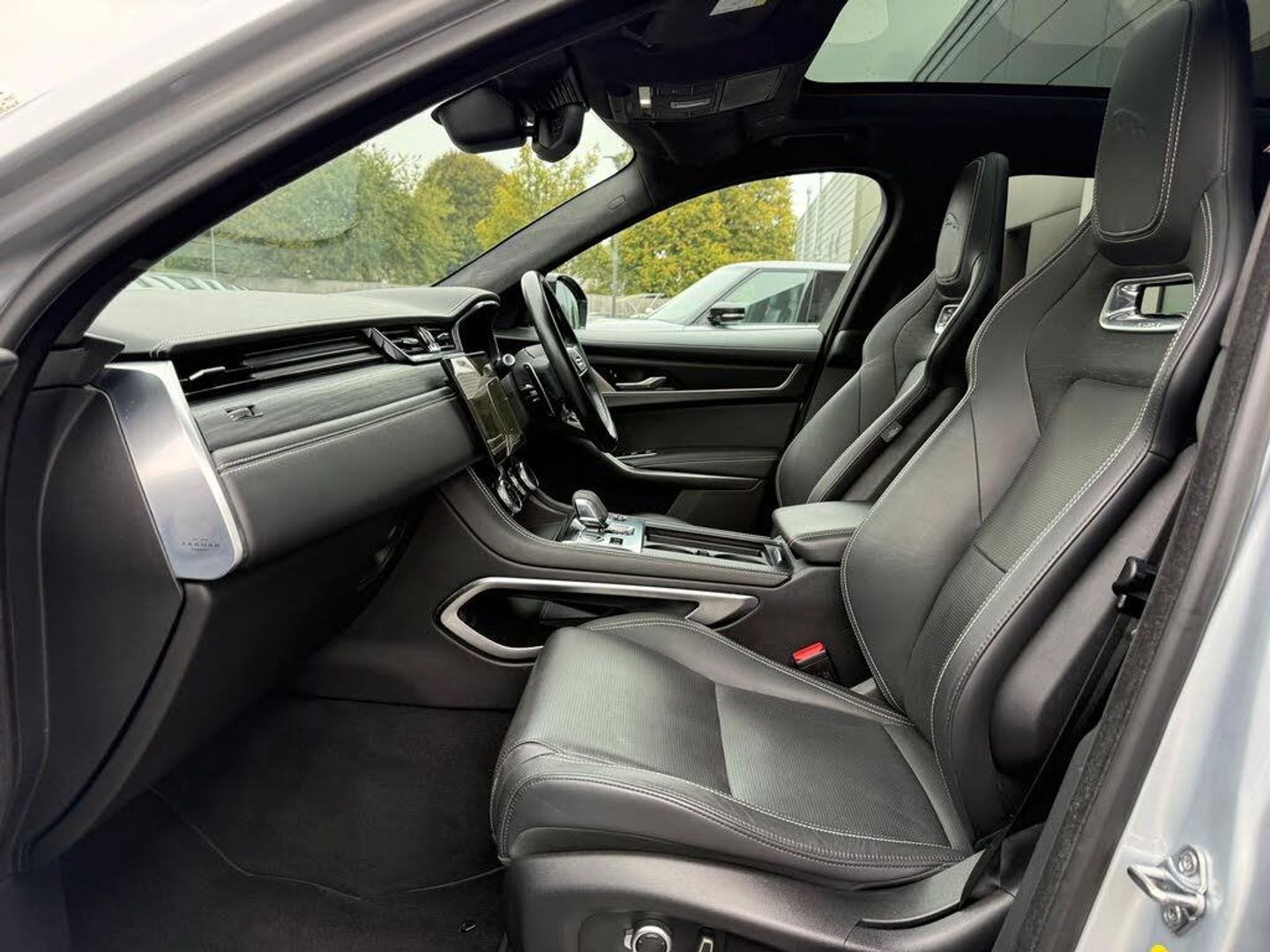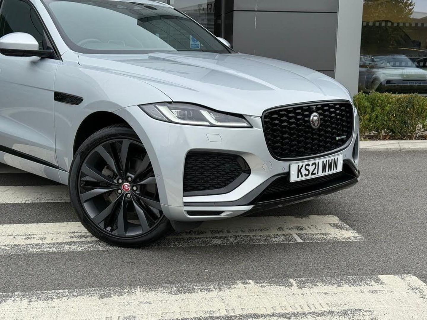 11.4in Touchscreen, 14-Way Heated and Cooled Electric Memory Performance Front Seats, 2-Zone Climate Control, 21in Alloy Wheels - 5 Split-Spoke - Style 5104 - Satin Dark Grey with Contrast Diamond Turned Finish, 3 Rear Headrests, 3-Flash Lane Change Indicators, 355mm Front and 325mm Rear Brakes, 3D Surround Camera, 40-20-40 Folding Rear Seats with Centre Armrest, ABS - Anti-locking Braking System, ASPC - All Surface Progress Control, Adaptive Cruise Control, Adaptive Dynamics, Air Distribution Speed, Airbags - Front Side, Airbags - Full Length Side Window Curtain, Android Auto, Animated Directional Indicators, Apple CarPlay, Approach Illumination, Auto High Beam Assist, Auto-Dimming Interior Rear View Mirror, Automatic Headlights, Blind Spot Assist, Bluetooth Connectivity, Bluetooth Streaming, Body Coloured Roof, Brake Pad Wear Indicator, Cabin Lighting, Centre Console with Armrest, Centre Console with Side Storage, Clear Exit Monitor, Configurable Dynamics, Digital Audio Broadcast - DAB - Radio, Driver Condition Monitor, Dynamic Stability Control - DSC, Dynamic Volume Control, EBA - Emergency Brake Assist, ECO Driving Style Assistant, EPAS - Electric Power Assisted Steering, EPB - Electronic Parking Brake, Ebony Suedecloth Headlining, Electric Windows - Front and Rear with One-Touch Open-Close and Anti-Trap, Emergency Braking, F-PACE Badge, Front Airbags with Passenger Seat Occupant Detector, Front Door Storage Space, Front and Rear Parking Aid, Glovebox Finisher with Jaguar Script, Green Tinted Glass, Heated - Electric - Power Fold Memory Door Mirrors with Approach Lights and Auto-Dimming Driver Side, Heated Front Windscreen, Heated Rear Window, Heated Steering Wheel, Hill Launch Assist, Hook or Hooks in Loadspace, ISOFIX Rear, Illuminated Metal Treadplates with Brand-Name Script, Interactive Driver Display, Interior Front Door Handles with Separate Locking Switches, Jaguar Script and Leaper, Jaguar Tyre Repair System, JaguarDrive Control, Keyless Entry, LED Tail Lights, Lane Keep Assist, Lockable Glovebox, Luggage Tie Downs in Loadspace, Meridian Sound System, Metal Loadspace Scuff Plate, Mist Sensing, Online Pack with Data Plan, Open Differential with Torque Vectoring by Braking, Outside Temperature Gauge, Overhead Lighting Console, Overhead Stowage for Sunglasses, Passive Front Head Restraints, Pivi Pro Connected, Pivi Pro Including Connected Navigation, Power Operated Child Locks, Powered Tailgate - Boot Lid, Premium Carpet Mats, Premium LED Headlights with Signature DRL, Push Button Start, R-Dynamic Badging, R-Dynamic Branded Leather Steering Wheel, R-Dynamic Exterior Pack - Bumper Finishes-Inserts - Grille - Door Cladding, Rain Sensing Windscreen Wipers, Rear Air Vents, Rear Collision Monitor, Rear Door Storage Space, Rear Fog Lights, Rear Metal Treadplates, Rear Traffic Monitor, Remote, Satin Charcoal Ash Veneer, Satin Chrome Gearshift Paddles, Seat Belt Reminder, Secure Tracker (12 Month Subscription From New), Shopping Bag Hook, Speed Proportional Steering, Start Up Sequence with Movement - Dials and Lighting, Steering Column - Electrically Adjustable, Steering Wheel - Multi-Function, Summer Tyres, Sunvisors with Illuminated Vanity Mirrors, Torque Vectoring by Braking - TVBB, Traffic Sign Recognition with Adaptive Speed Limiter, Trailer Stability Assist, Twin Front Cupholders, Tyre Pressure Monitoring System, Unpainted Brake Calipers, Valet Mode, Variable Intermittent Wipers, Voice Control, iPod Integration, 14-Way Heated and Cooled Electric Memory Performance Front Seats, Interactive Driver Display, Fixed Panoramic Roof, Hakuba Silver, Perforated Windsor Leather Performance Seats - Ebony with Ebony-Ebony Interior, Privacy Glass, Secure Tracker, 22in Alloy Wheels - 15 Spoke Style 1020 with Grey Finish and Contrast Inserts