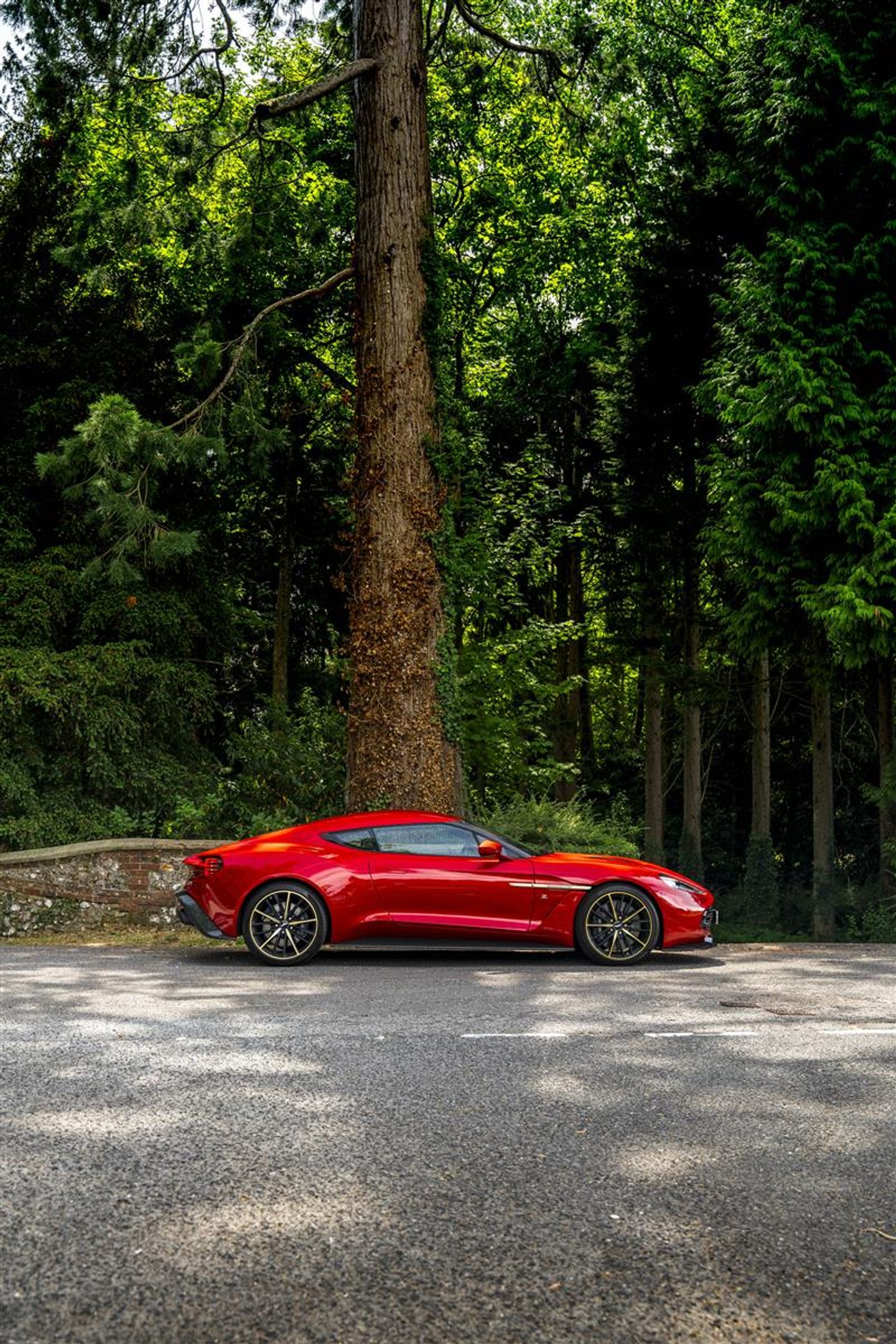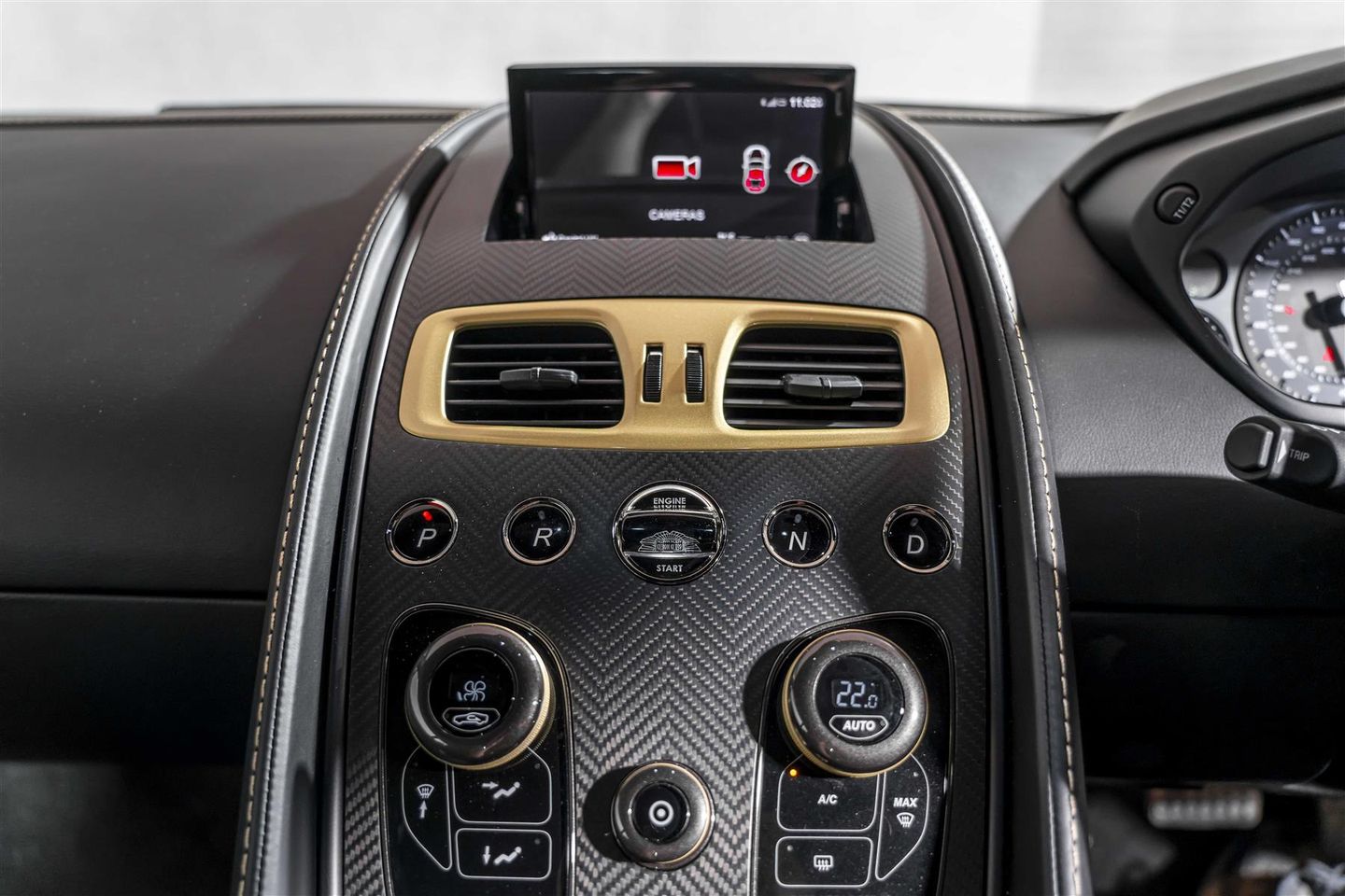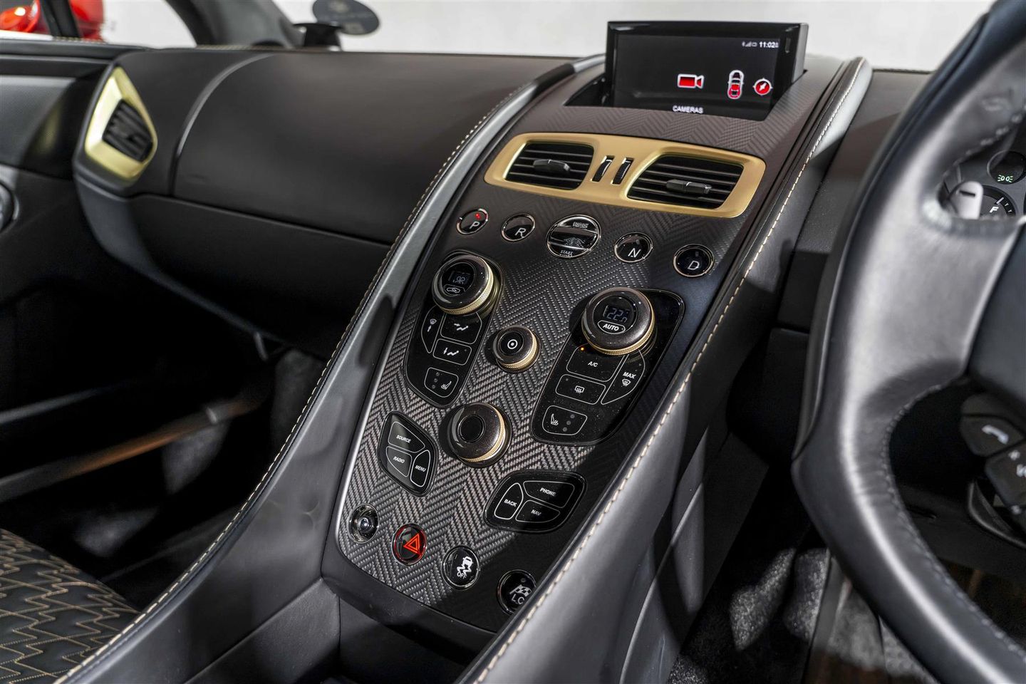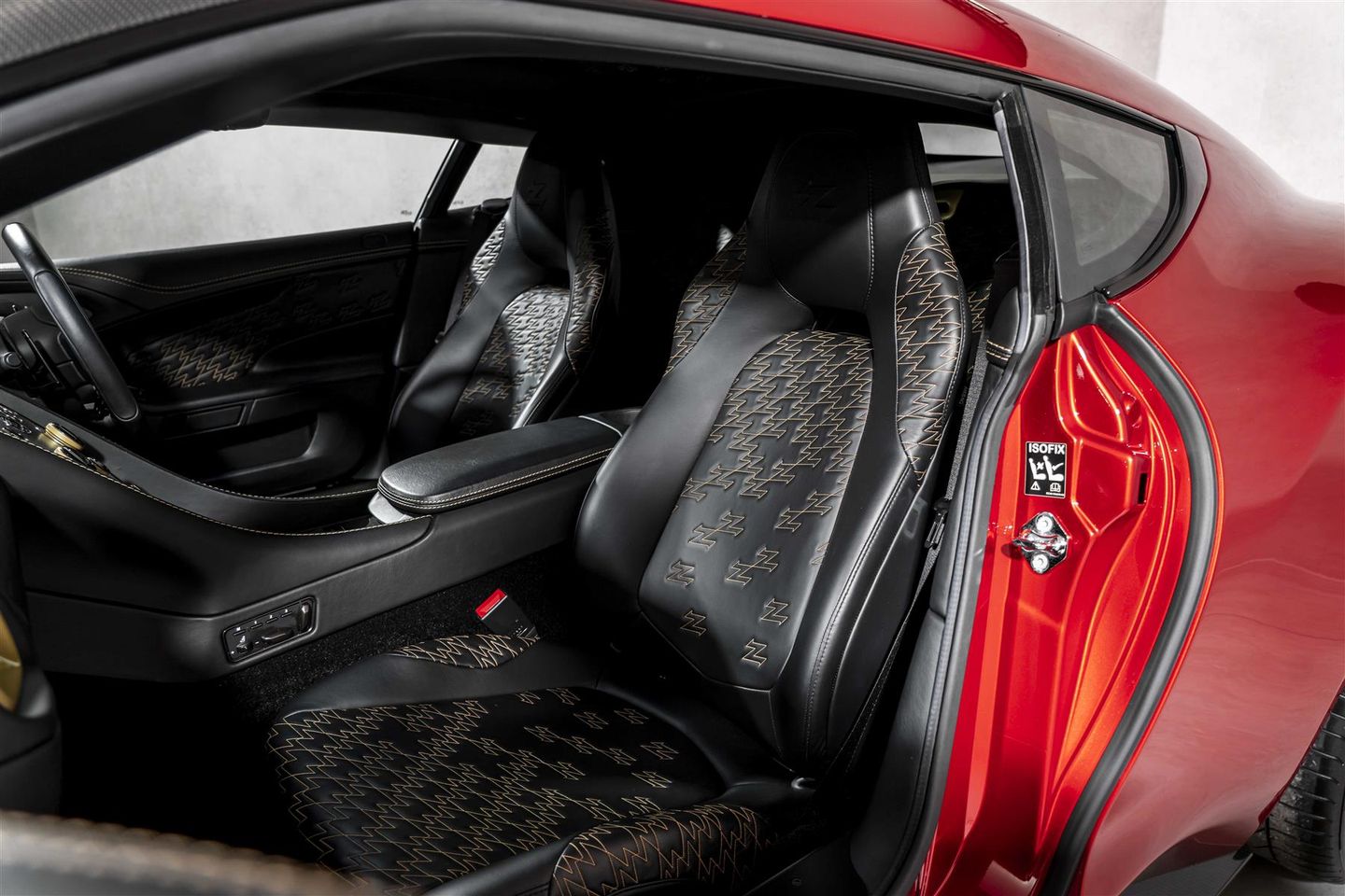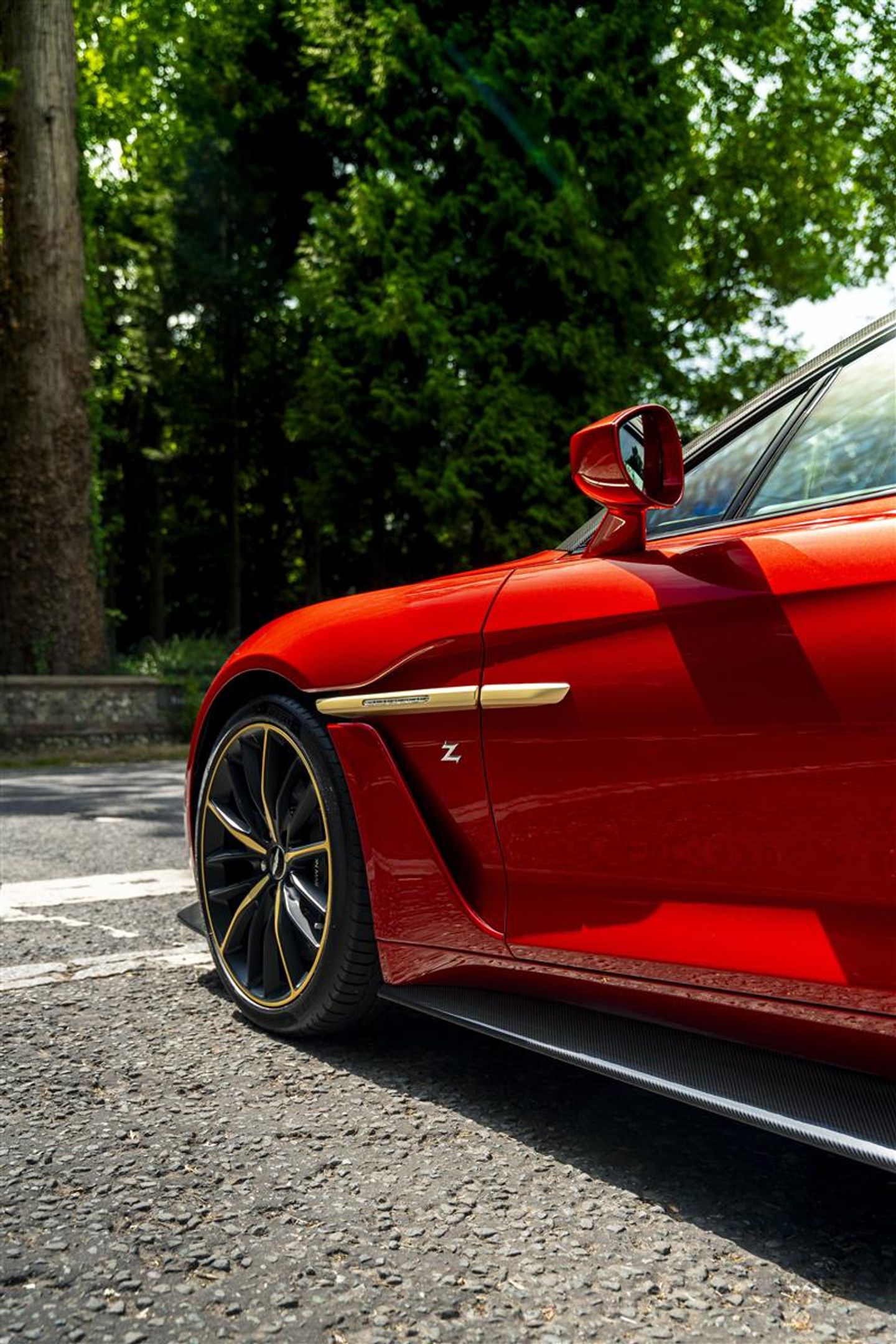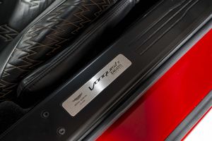 A key highlight for this example is the optional and highly sought after “Villa D’Este package” totalling £16,000 from the factory - the nomenclature a nod to the original specification that wowed onlookers at the Zagato’s reveal at Lake Como. The Villa D'Este pack consists of a Gold finish to the following items: Exterior badges, wheel spokes, exterior side strakes, interior switch gear and dashboard vents and engine plaque signed by Zagato engineers. This package also sees the interior finished in black leather complimented with gold stitch to match the Villa D'Este accents. This is the only example worldwide with this incredibly desirable colour combination