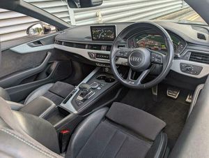 18in Alloy Wheels - 5-Twin-Spoke Star Design,2 x SDXC Card Readers,2 x USB Charging Ports and 1 x AUX-IN,4-Way Electric Lumbar Support,6-Airbag System,Air Inlets - Horizontal Inlay in Matt Aluminium,Anti Theft Locking Wheel Bolts,Anti-Theft Alarm,Audi Connect Infotainment Services - 3 Month Trial,Audi Connect Safety and Service - e-call,Audi Drive Select,Audi Smartphone Interface,Audi Sound System,Auto-Dimming Rear-View Mirror,Bluetooth Interface,Body Coloured Door Mirrors,CD Drive,Chrome-Plated Exhaust Trim,Cloth Headlining in Black,Contrast Stitching on Seats - Steering Wheel and Gear Lever Gaiter,Cruise Control with Speed Limiter,DAB Digital Radio Reception,Deluxe 3-Zone Electronic Climate Control,Door Mirrors - Electrically Adjustable and Heated with Built-in LED Indicators,Driver Information System - 7in Colour Display,Driver and Front Passenger Airbag with Front Passenger Airbag Deactivation,ESC - Electronic Stabilisation Control inc ABS - ASR and EDL,Electric Boot Lid Release,Electric Windows - Front,Electrically Adjustable Front Seats,Electromechanical Parking Brake,Electromechanical Power Steering,First Aid Kit and Warning Triangle,Front Centre Armrest,Front and Rear Floor Mats,Gear Lever Knob in Black Perforated Leather,Heat-Insulating Glass - Side and Rear Windows,Heated Front Seats,High Gloss Package,High Multi-Function 3-Spoke Leather Steering Wheel,Honeycomb Side Air Inlet Grille in Titan Black,ISOFIX Child Seat Mounting and Top Tether,Illuminated Door Sill Trims with S Logo,Inlays - Matt Brushed Aluminium,Keyless Go,LED Headlights with LED Rear Lights and Dynamic Rear Indicators,LED Interior Light Package,Light and Rain Sensor,Luggage Compartment Mat,MMI Navigation - SD Card Based,MMI Radio Plus with 7in Colour MMI Screen,Model and Engine Technology Badges at Rear,Multi Collision Brake Assist,Non-Smoking Package,Parking System Plus,Pedals and Footrest - Stainless Steel,Pop-Up Bonnet for Pedestrian Protection,Pre-Sense City,Radiator Grille - Twilight Grey Matt with Inlays in Matt Aluminium,Rear Diffuser in Twilight Grey Matt with Honeycomb Grille,Rear Grille - Black Grained,Remote Central Locking,S Line Badges on Front Wings,S Line Front and Rear Bumpers,S line Side Skirts in Black,S line Sports Package,Seat Belt Monitoring,Space Saver Spare Wheel,Split-Folding 2-Seater Rear Seat Bench in 3 Parts - 40-20-40 with Rear Centre Armrest,Sport Suspension,Sun Visors including Vanity Mirrors,Tool Kit and Car Jack,Tyre Pressure Warning Light,Variable Restraint System,Voice Control System,Windscreen with Acoustic Glazing