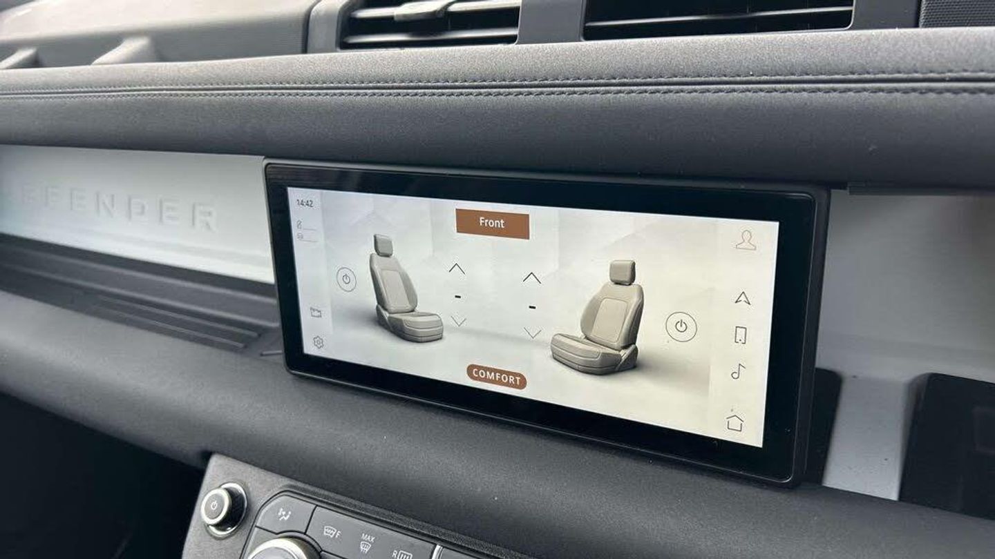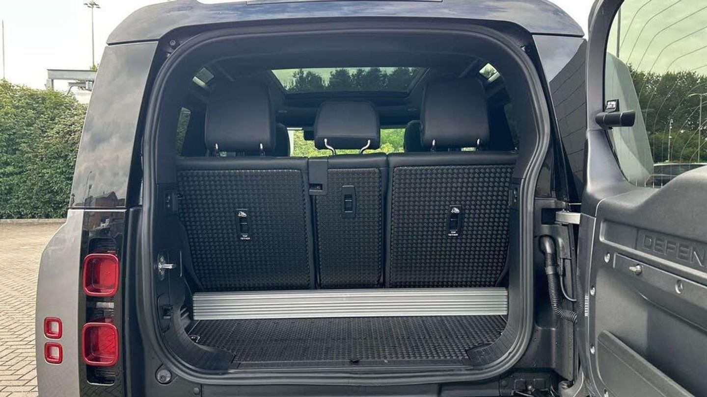 10in Touchscreen, 12V Socket in Loadspace, Android Auto, Apple CarPlay, Automatic Headlight Levelling, Automatic Headlights and Rain Sensing Wipers, Centre High Mounted Stop Light, Coil Suspension, Digital Audio Broadcast Radio - DAB, EPAS - Electric Power Assisted Steering, Follow Me Home Lighting, Front Fog Lights, LED Tail Lights, Matrix LED Headlights with Signature DRL, Meridian Sound System, Online Pack with Data Plan, Pivi Pro - Connected, Puddle Lights, Remote, Secure Tracker (12 Month Subscription From New), Twin Speed Transfer Box - High-Low Range, 12-Way Heated - Electric Memory Front Seats with 2-Way Manual Headrests, 2-Zone Automatic Climate Control, 40-20-40 Fixed Rear Seats with Centre Armrest, Alpine Lights, Assisted Tailgate with Soft Close, Auto-Dimming Interior Rear View Mirror, Carpet Mats, Centre Console with Armrest, Click and Go Integrated Base Unit, Cross Car Beam in Light Grey Powder Coat Brushed Finish, Durable Rubber Cabin Flooring, Durable Rubber Loadspace Flooring, Electric Cabin Pre-Conditioning, Electrically Adjustable Steering Column, Footwell Lights - Front, Glovebox Storage, Headlining - Light Oyster Morzine, Interactive Driver Display, LESS Wireless Charger, Leather Gearshift, Loadspace Cover, Loadspace Hooks, Non Smokers Pack, Overhead Stowage for Sunglasses, Premium Cabin Lighting, Push Button Start, Rear Reading Lights, Seats - Rear Centre Head Restraint, Side-Hinged Tailgate, Standard Leather Steering Wheel, Standard Treadplates, Sun Visors - Illuminated Vanity Mirrors, Twin Front Cupholders, 20in Alloy Wheels - Style 5094 - 5 Spoke - Gloss Sparkle Silver, 20in Full Size Spare Wheel, All Season Tyres, Body Coloured Roof, Core Exterior Pack, Electric Windows with One-Touch Open-Close and Anti-Trap, Heated Electric Power Fold Door Mirrors with Approach Lights and Auto-dimming Driver Side, Heated Rear Window with Timer, Heated Windscreen, LESS Roof Rack or Rails, Locking Wheel Nuts, Rear Fog Lights, Standard Roof, 360 Degree Parking Aid, 3D Surround Camera, Blind Spot Assist, Brake Pad Wear Indicator, Cruise Control and Speed Limiter, Driver Condition Monitor, TPMS - Tyre Pressure Monitoring System, Terrain Response, Traffic Sign Recognition and Adaptive Speed Limiter, Trip Computer, ABS - Anti Lock Braking System, Airbags - Driver, Airbags - Front Passenger, Brake Hold, CBC - Cornering Brake Control, Clear Exit Monitor, Customer Configurable Autolock, DSC - Dynamic Stability Control, EBA - Emergency Brake Assist, EBD - Electronic Brake-Force Distribution, ETC - Electronic Traction Control, Electric parking brake, Emergency Braking, Front Airbags with Passenger Seat Occupant Detector, Front Passenger Seat ISOFIX, HDC - Hill Descent Control, Hill Launch Assist, Intrusion Sensor, Keyless Entry, Lane Keep assist, Low Traction Launch, Power Operated Child Locks, RSC - Roll Stability Control, Rear Isofix, Rear Traffic Monitor, Rear Wash Wiper, Seat Belt Reminder, TSA - Trailer Stability Assist, Wade Sensing