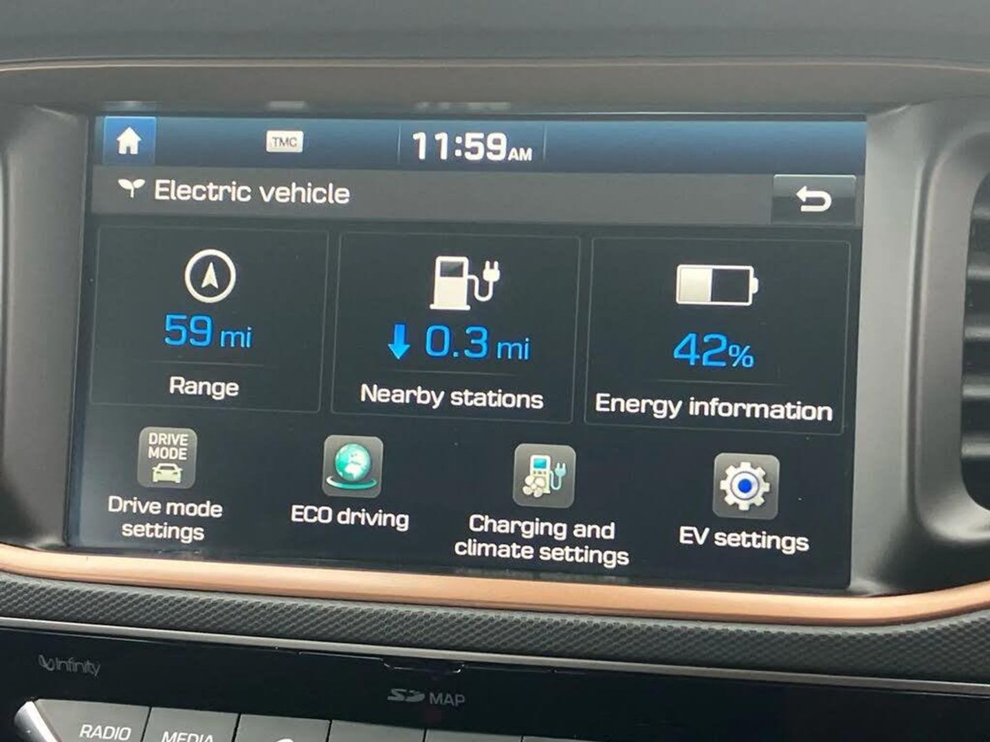 8" touch screen sat nav with TMC,Adaptive cruise control with Stop and Go,Apple car play/Android Auto,Attention assist,Blind spot monitoring,Bluetooth system,Drive mode selector,Electric power steering,Front and rear parking sensors,Lane departure warning system,Lane keep assist,Parking Brake - Foot Brake,Parking guidance system,Rear cross traffic alert,Rear view camera,Smartphone wireless charging plate,Supervision cluster with 7" TFT display,Windscreen washer level indicator,DAB Digital radio,Infinity sound system,Radio data system,Steering wheel audio controls,USB/iPod/auxiliary input connections,Active air flap radiator grille,Auto dimming rear view mirror,Automatic defog system,Automatic headlights with dusk sensor,Automatic rain sensing wipers,Body colour bumpers,Body colour door handles with chrome inserts,Body colour door mirrors,Bodyside mouldings,Chrome door scuff plates,Chrome window surround,Door mirror puddle lights,Electric adjustable door mirrors,Electric folding door mirrors,Electric front windows - anti trap + one touch,Electric heated door mirrors,Gloss black grille with chrome surround,Grey radiator grille,Heated rear windscreen,LED brake lights,LED daytime running lights,LED Headlights,LED indicators in door mirrors,LED rear fog light,Positioning Lights - LED,Rear electric windows,Rear LED lights,Rear spoiler,Solar glass with windscreen shade band,Two tone rear bumper,12V power outlets,60/40 split folding rear seat,Adjustable front and rear head restraints,Alloy pedals,Centre console storage,Centre interior light,Chrome interior door handles,Colour coded interiors,Driver's electric adjustable lumbar support,Driver's seat memory,Dual zone climate control,Electric height adjustable driver seat,Front centre armrest with storage compartment,Front cupholder,Front seat and rear pockets,Heated front seats,Heated rear seats,Heated steering wheel,Illuminated luggage compartment,Leather glove box,Leather steering wheel,Leather upholstery,Luggage net,Map and reading lights,Passenger seat height adjuster,Rear centre console with air vents,Sunglasses holder,Sunvisors with illuminated vanity mirrors,Ventilated front seats,3x3 point rear seatbelts,ABS,Autonomous emergency braking,Driver and passenger airbags,Drivers knee airbag,Electronic parking brake with auto hold,Electronic Stability Programme,Front side airbags,Full size curtain airbags,Hill start assist control (HAC),Passenger airbag deactivate switch,Traction control,Tyre pressure monitoring system,Deadlocks,Immobiliser,Keyless smart entry with push button start,Remote central locking,16" alloy wheels,Tyre repair kit