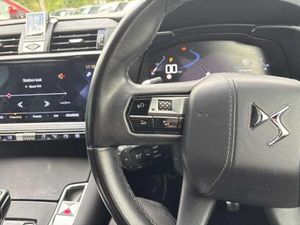 12 inch HD touchscreen, 12.3" digital instrument cluster display, Driver attention warning, DS Connect Box emergency and assistance system, DS Connect Nav - Connected 3D navigation, Electric power steering, Electric tailgate with handsfree function, Keyless entry and start, Lane departure warning system, Mirror Screen with Apple car play/Android Auto, Multi function on board trip computer, Service indicator, Speed limit recognition and speed warning, Voice recognition, Wireless charging for smartphone, 2 USB sockets in rear, Bluetooth hands free and media streaming, DAB Digital radio, Acoustic, tinted and heated windscreen, Automatic headlights, Automatic lighting at car unlocking, Body colour door handles with chrome trim, Body coloured bumpers, Chrome roof rails, Chrome window surround, Chromed DS wings, Dark tinted rear windows, Defrosting door mirrors, Door mirrors including reverse gear angle memorisation, DS 3D LED rear lights, DS active LED Vision headlights, DS badge on bonnet with chrome inserts, DS monogram on rear tailgate, Electric folding door mirrors with DS LED spotlights, Follow me home manual lighting, Frameless electrochrome interior rear view mirror, Front and rear door entry sill with DS design, Gloss black exterior door mirrors, Gloss black front grille, High beam assist, Laminated front/rear screens, LED daytime running lights, LED front fog lights with static cornering light function, 60/40 split folding rear seat backrest, Aluminium sports pedals, B.R.M R180 timepiece, Chrome controls, Cloth sunvisors with LED courtesy mirror and ticket holder, DS inspiration badged front/rear carpet mats, Electric folding rear headrests, Electric front cushion extensions, Electric lumbar adjustment, Flocked glasses storage on driver side, Front and rear door pockets, Front central armrest with storage, Front closed storage with USB connection point, Front double cupholders, Front head restraints, Front seat and rear pockets, Gear shift indicator, Heated front seats, Height and depth adjustable steering wheel, Massage function for front seats, Open storage on driver side, Premium leather gear knob, Premium leather steering wheel, Rear central armrest with storage, Rear double cupholders, Two rear isofix mounting points, Auto comfort pack - DS 7, Electric seats pack - DS7, Modularity boot pack - DS7, 3x3 point rear seatbelts, ABS, Active city braking, Child safety lock, Driver, front passenger, front lateral and curtain airbags, Electric parking brake, Emergency braking system, ESP, Height adjustable front seatbelts with pretensioners and front and rear load limiter, Hill start assist, Rear curtain airbags, Safety kit including first aid kit, yellow vest and Warning triangle, Trailer stability control, Tyre pressure monitoring system, Automatic front doors and boot locking, Immobiliser, Perimetric and volumetric anti theft alarm, Remote central locking + deadlocks, Stop/ Start function, Black centre caps with DS logo, Space saver spare wheel