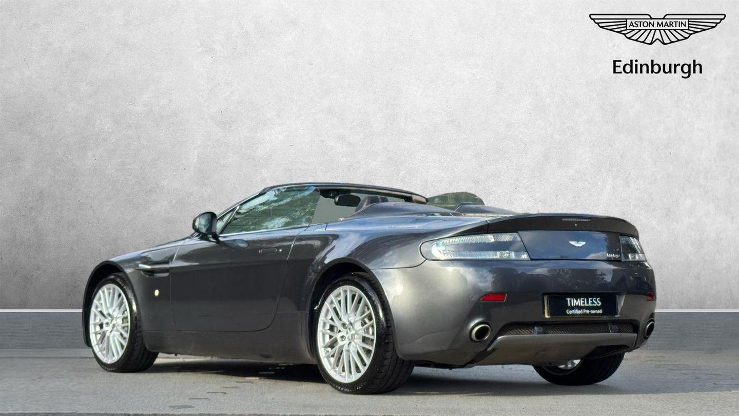 ASTON MARTIN EDINBURGH are delighted to offer for sale this stunning V8 Vantage Roadster finished in Meteorite Silver metallic paint with a full Obsidian Black leather interior. ASTON MARTIN EDINBURGH are delighted to offer for sale this stunning V8 Vantage Roadster with the following factory specification: Meteorite Silver Metallic Paint, Obsidian Black Full Leather Interior, Silver Contrast Stitching, Black Exterior Hood, Bluetooth Telephone Preparation, Brake Calipers - Grey, Gunmental Interior Facia Trim, Sportshift Gearbox, Satellite Navigation System, Black Seatbelts, Sports Seats, 19 Inch 20 Spoke Alloy Wheels in Silver and much more. This beautiful example will come with 12 months warranty and roadside assistance from date of collection. For further information and a personalised walkaround video please contact a member of the sales team at ASTON MARTIN EDINBURGH..