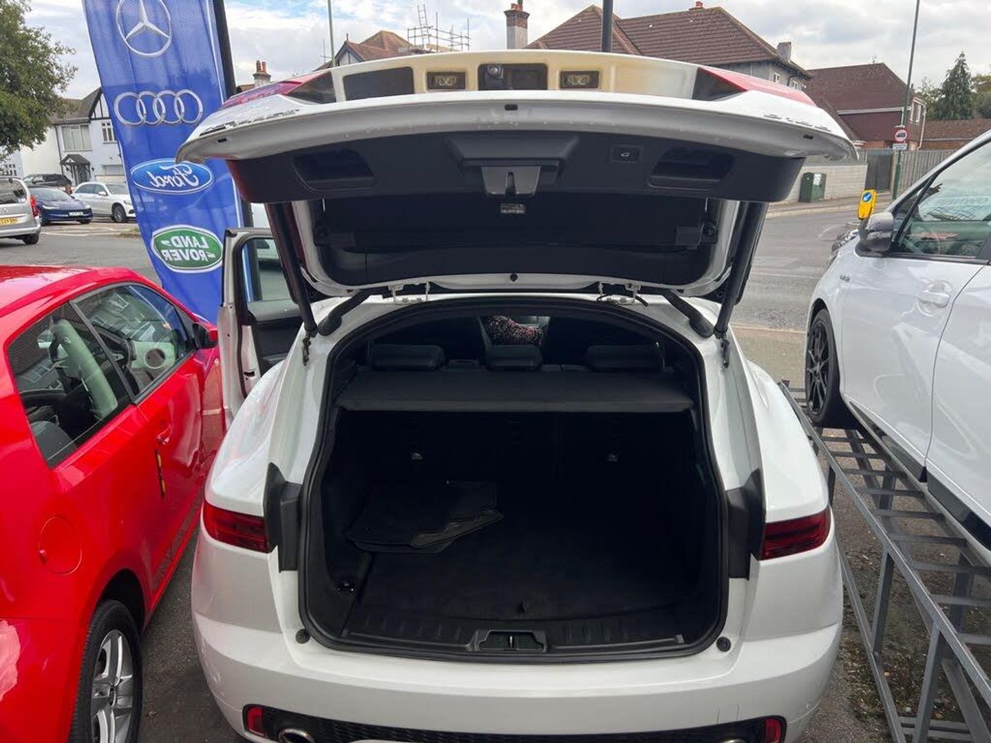 10in Touch Pro, 14-Way Electric Memory Front Seats, 19in Alloy Wheels - 5 Spoke Style 5049, 2-Zone Climate Control, 3-Flash Lane Change Indicators, 360 Degree Parking Aid, 5in Display with Instrument Panel, 60-40 Split Fold Rear Seat, ABS - Anti-locking Braking System, ASPC - All Surface Progress Control, Adaptive Cruise Control with Queue Assist, Airbags - Front Side, Airbags - Full Length Side Window Curtain, Approach Illumination, Auto High Beam Assist, Auto-Dimming - Power Fold - Heated Door Mirrors with Memory and Approach Lights, Auto-Dimming Interior Rear View Mirror, Automatic Headlights, Black Gearshift Paddles, Blind Spot Assist, Bluetooth Connectivity, Body Coloured Roof, Body-Coloured Door Claddings, Bright Metal Pedals, CBC - Cornering Brake Control, Centre Console Cubby Box, Centre Console with Armrest, Connect Pro Pack, Customer Configurable Autolock, DAB Radio, Drive Pack, Driver Condition Monitor, Dynamic Stability Control and Traction Control, Dynamic Volume Control, EBA - Emergency Brake Assist, EBD - Electronic Brake-Force Distribution, EBL - Emergency Brake Lights, ECO Driving Style Assistant, EPAS - Electric Power Assisted Steering, EPB - Electric Parking Brake, Ebony Morzine Headlining, Electric Windows - Front and Rear with One-Touch Open-Close and Anti-Trap, Emergency Braking, Front Airbags with Passenger Seat Occupant Detector, Front Fog Lights, Gloss Black Grille with Satin Chrome Surround, Heated Front Windscreen, Heated Rear Window, Heated Washer Jets, High-Speed Emergency Braking, Hill Launch Assist, Hooks in Loadspace, Intrusion Sensor - Perimetric and Volumetric Protection, Jaguar Optimised Assistance, JaguarDrive Control, LED Headlights with Signature Daytime Running Lights, LED Tail Lights, Lane Keep Assist, Loadspace Cover, Loadspace Elasticated Side-Strap, Loadspace Lighting, Loadspace Storage Net, Locking Wheel Nuts, Low Traction Launch, Luggage Tie Downs in Loadspace, Meridian Sound System - 380W, Metal Treadplates with R-Dynamic Branding, Navigation Pro System, Overhead Lighting Console, Park Assist, Park Pack, Passive Front Head Restraints, Pedestrian Airbag System, Power Operated Child Locks, Power Sockets, Powered Tailgate, Push Button Start, R-Dynamic Body Kit, R-Dynamic Branded Leather Steering Wheel, RSC - Roll Stability Control, Rain Sensing Windscreen Wipers, Rear Fog Lights, Rear ISOFIX, Rear Traffic Monitor, Rear View Camera, Remote, Remote Control Central Locking, SOS Emergency Call, Satin Black Side Window Surround, Satin Chrome Side Vents, Seat Belt Reminder, Second Row Air Vents, Smartphone Pack, Sunvisors with Illuminated Vanity Mirrors, Tailgate Spoiler, Torque Vectoring by Braking - TVBB, Traffic Sign Recognition with Adaptive Speed Limiter, Trailer Stability Assist, Trip Computer, Twin Front Cupholders with Cover, Twin Tailpipes with Finishers, Tyre Pressure Monitoring System, Tyre Repair System, Voice Control, Head-Up Display, Meridian Surround Sound System - 825W, Additional Power Sockets, Surround Camera System, Performance Pack, 20in Alloy Wheels - 5 Split-Spoke Gloss Black Finish - Style 5051, Fixed Panoramic Roof