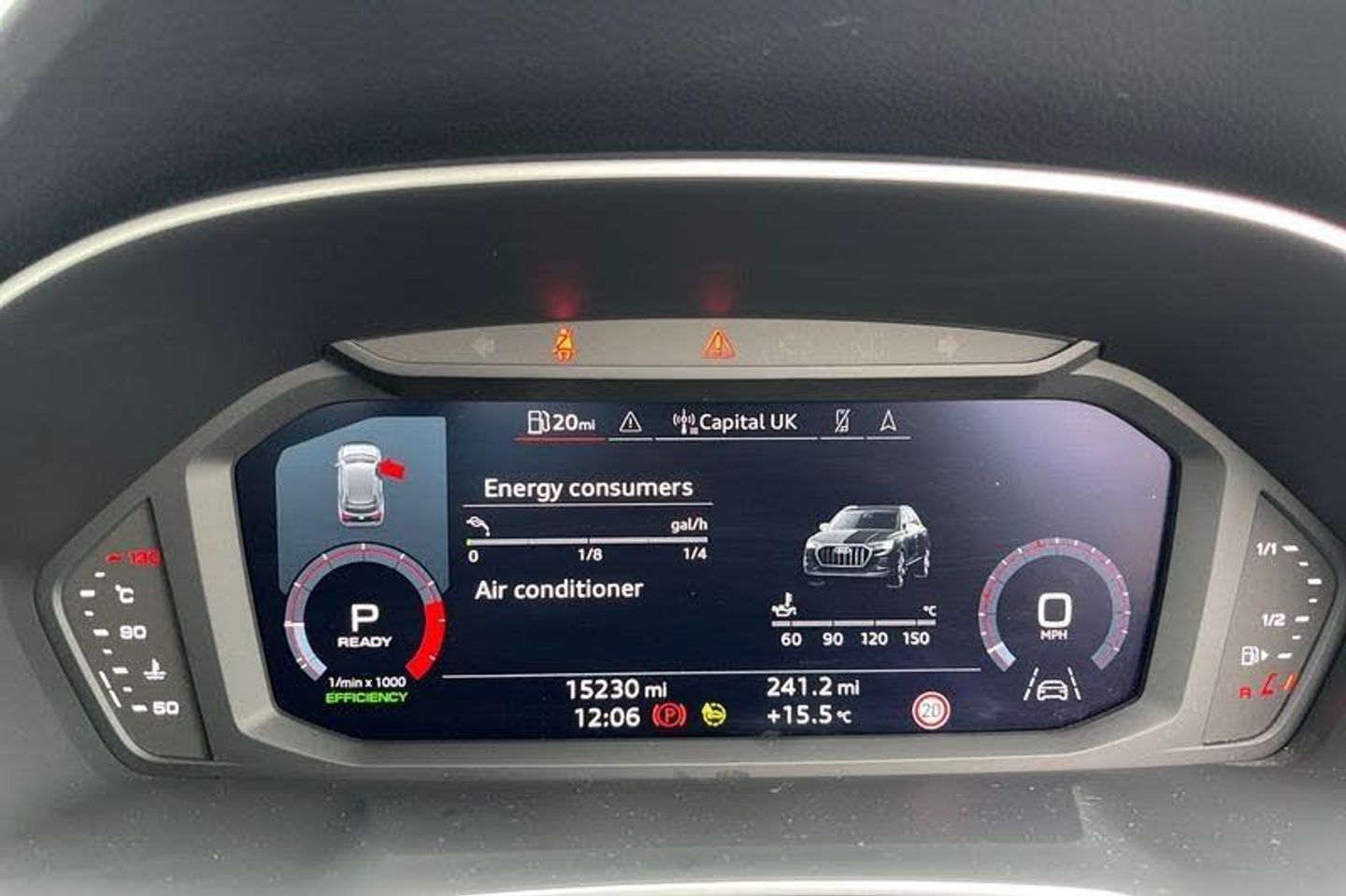 Amazon alexa Integration, Audi drive select, Audi lane departure warning, Audi Virtual Cockpit - 10.25 display, Bluetooth interface, Camera based traffic sign recognition, Legal emergency call, MMI Navigation Plus with high resolution 10.1 inch touchscreen colour display, Power operated tailgate, Progressive steering, Service interval indicator, Smartphone interface includes wireless Apple carplay/Android Auto, Start stop system with recuperation, Voice control system with natural language interaction, Acoustic windscreen, Auto dimming frameless rear view mirror, Black roof rails, Body colour door mirrors, Diffuser in grained anthracite, Electrically folding, adjustable and heated door mirrors with integrated LED side indicators and kerb view function for passenger side, Exterior bumper with wheel arch trims and side sill trims in grained black matt, Front and rear electric windows, Grained radiator protective grille, Halogen rear lights, LED headlights with LED daytime running lights, Rain and light sensors, Rear side wing doors, Rear wiper, Third brake light, Variable front intermittent wipers, 12V socket in rear centre console, 3 seat bench in 2nd row, 3 spoke multi-function leather steering wheel, 40:20:40 folding with manual adjustment for 60:40 forwards/backwards position and backrest angle, Dual zone electronic climate control, Front and rear floor mats, Front and rear headrests, Front and rear roof module including reading lights, Front centre armrest, Glove compartment lighting, Height and reach adjustable steering wheel, ISOFIX child seat mounting for front passenger with airbag deactivation and outer rear seat including top tether attachment point for outer rear seats, Luggage compartment light, Lunar silver cloth headlining, Manual front seats with height adjustment, Single front passenger seat, Stainless steel luggage compartment sill finisher, 3x3 point rear seatbelts, 6 airbags - Driver, front passenger, curtain and side windows, Audi pre-sense front with pedestrain and cyclist recognition, Electrically operated child locks on rear doors, Electromechanical parking brake, Electronic stabilisation control including ABS, ASR and EDL, Front seatbelt reminder, Hill descent control, Hill hold assist, Pre sense basic, Seatbelt monitoring, Tyre pressure warning, Warning triangle and first aid kit