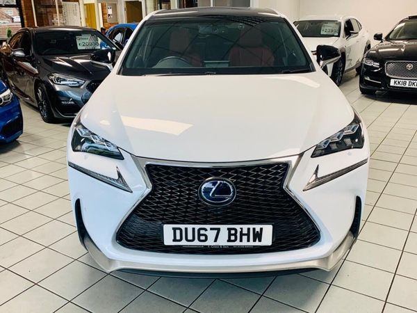 PANORAMIC SUNROOF HEATED LEATH-** RESERVE ONLINE FOR £199 ** ** STILL UNDER LEXUS WARRANTY TIL 62533 MILES OR 12/09/2026 ** Just Arrived A Great Specification Lexus NX 300h F-Sport Finished In F White, Full Lexus Service History, Serviced At 6916 Miles, 15228 Miles, 17462 Miles, 24094 Miles, 32661 Miles, 39588 Miles, 45521 Miles, 52533 Miles, 18in Gloss Black Diamond Cut Alloy Wheels, 10.3'' Touch Screen Satellite Navigation, Panoramic Sunroof, Bluetooth Connectivity, DAB Digital Radio / Cd / 2 x USB / AUX In, Electrically Adjustable Flare Red Perforated Heated Leather Seats, Leather Multi Function Steering Wheel With Paddle Shift, Automatic Triple LED Headlights With High Beam Assist, Front And Rear Parking Sensors With Rear View Camera Assist, Keyless Entry, Power Operated Rear Tailgate, Rear Privacy Glass, Adaptive Cruise Control, Heated Power Folding Door Mirrors,