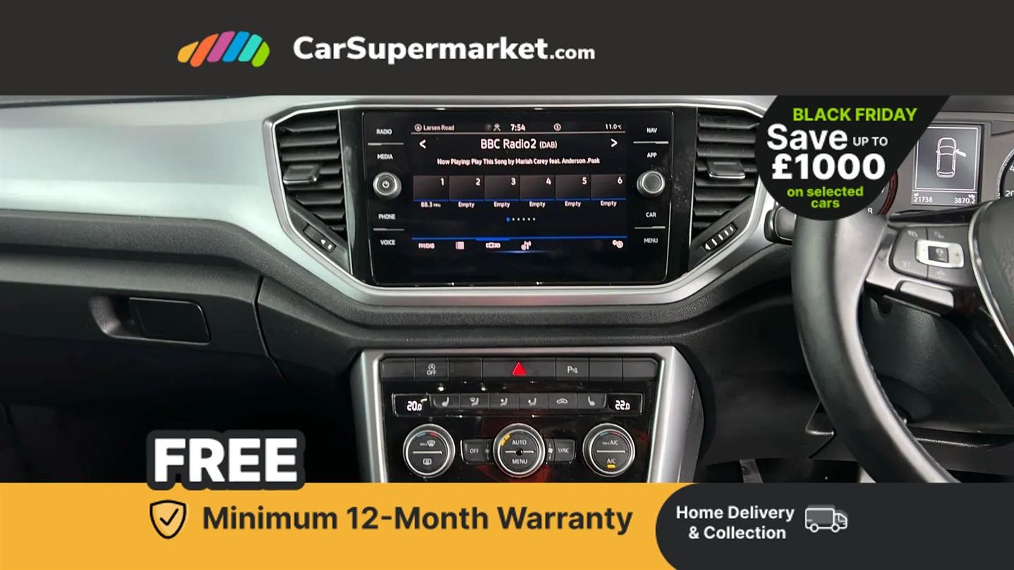 Adaptive Cruise Control, Bluetooth, Sat Nav, Traffic Sign Recognition, Apple CarPlay, Wireless Phone Charging, Digital Radio, Android Auto, Heated Front Seats, 17" Alloy Wheels, Privacy Glass;With only one owner and exceptionally low mileage for its age, this 2021 Volkswagen T-Roc TSI Active presents a superb opportunity. A recent service was completed on the 31st January 2025 at 16,576 miles, and a clear vehicle history check confirms its sound provenance. Notable features include Adaptive Cruise Control for effortless journeys and a Dusk Sensor that automatically activates the headlights.