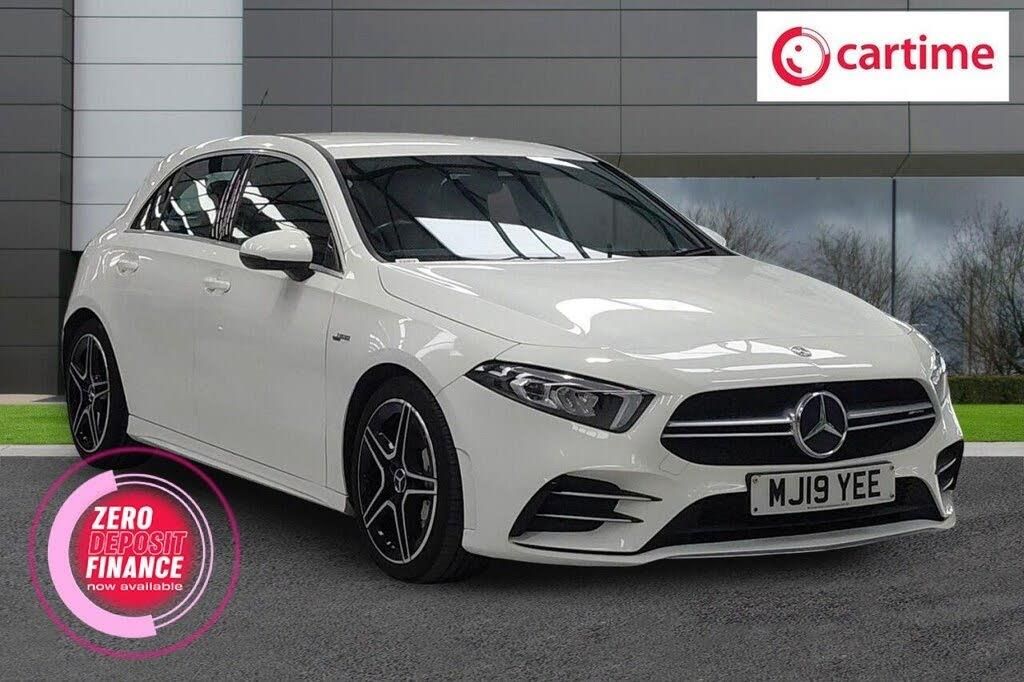 This 2019 Mercedes Benz A Class A35 AMG boasts a clear vehicle history check, offering you peace of mind. This Euro 6 compliant model features a powerful 2.0L petrol engine paired with a four wheel drive drivetrain, ensuring excellent performance and control. The AMG trim level enhances its sporty appeal, and with an MOT valid until March 2026, this car is ready for the road. Inside, you'll find a 7 inch Media Display with touch screen functionality, a 180 degree reversing camera with parking guidelines, and dual Bluetooth connectivity with two USB Type C ports. Automatic LED High Performance Headlamps with integrated daytime running lights and automatic headlamp activation further add to its sophisticated and practical design. Experience exhilarating performance with this A35 AMG, capable of accelerating from 0 to 60mph in a remarkable 4.7 seconds, a figure that sets it apart from many other vehicles in its class. This impressive acceleration is complemented by the spacious boot, offering ample room for all your luggage or shopping needs. The combination of its dynamic capabilities, advanced technology, and practicality makes this Mercedes Benz A Class a truly compelling choice for those seeking a premium driving experience. Lifetime warranty available on this car, plus a £1,000 finance contribution when you part exchange. Voted UK Car Supermarket of the Year two years running, we offer 0% finance, part exchange, and lifetime warranties across our entire range. Every car is thoroughly inspected before sale and comes with a full history check, so you can buy with complete peace of mind. Buy with confidence on our best finance rates. Proud winners of the CarGurus Top-Rated Dealer 2022 and the MotoNovo Extra Mile Award.