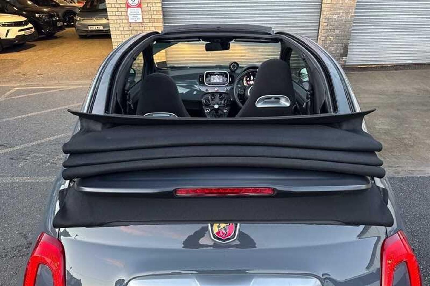 16in Alloy Wheels - 8-Spoke Anthracite,,"},{"G":"Entertainment,7in TFT Instrument Cluster with Sports Mode,,"},{"G":"Security,ABS - Anti-Lock Braking System,,"},{"G":"Security,Airbags - Driver,,"},{"G":"Security,Airbags - Passenger,,"},{"G":"Entertainment,Apple Carplay and Android Auto,,"},{"G":"Exterior Features,Electric Body Colour External Mirrors,,"},{"G":"General,Electric Power Steering,,"},{"G":"Exterior Features,Electric Windows - Front,,"},{"G":"Exterior Features,Electrically Operated Soft Top,,"},{"G":"General,Front Fog Lights,,"},{"G":"General,Koni Suspension with FSD Technology - Frequency Selective Damping,,"},{"G":"General,LED Day Running Lights - DRL,,"},{"G":"Exterior Features,Matt Black Front and Rear Bumper Insert,,"},{"G":"General,Poly-Elliptical Headlights,,"},{"G":"Driver Convenience,Rear Parking Sensors,,"},{"G":"Exterior Features,Satin Chrome Finished Handles and Badge Surrounds,,"},{"G":"Interior Features,Seats - Abarth Sports Seats,,"},{"G":"Interior Features,Seats - Height Adjustable - Front,,"},{"G":"Driver Convenience,Sport Button,,"},{"G":"Interior Features,Sports Leather Steering Wheel with Controls and Satin-Chrome Detailing,,"},{"G":"General,TTC - Torque Transfer Control,,"},{"G":"Exterior Features,Twin Exhausts with Satin Steel Tailpipes,,"},{"G":"Entertainment,Uconnect 7in Touschscreen DAB with 6 Speakers - Bluetooth with Audio Streaming and USB,,"},{"G":"Entertainment,Uconnect Live Services,,"},{"G":"Paint,Pastel - Circuit Grey