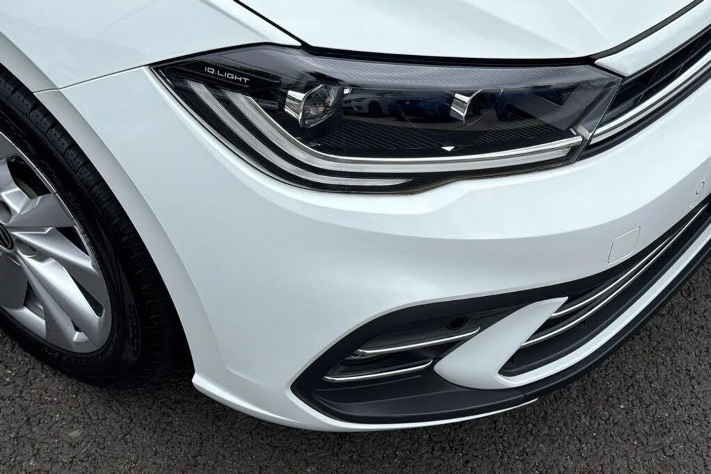 Electric panoramic sunroof with glass sliding and tilting,Black roof pack - Polo,Special solid - Pure white with deep black pearl roof,Electric front windows,Heat insulating darkened glass in side and rear windows,Heat insulating glass windscreen,Rain sensor,Rear electric windows,Rear windscreen washer and wiper with interval delay,Front wheel drive,Rear shock absorpion,Body colour door handles,Body coloured bumpers and radiator grille with chrome trims,Rear side wing doors,Automatic headlights,LED separate daytime running lights with coming/leaving home function,Rear fog light,Third brake light,ABS,ESC (Electronic stability control) + EDL (Electronic Differntial lock) and ASR (Traction control),Front disc brakes,Hill hold control,Rear drum brakes,Adaptive cruise control without follow-to-stop and speed limiter,Driver alert system,Dynamic road sign display,Power assisted speed sensitive steering,Automatic dimming interior rear view mirror,Power folding adjustable/heated exterior mirrors and front passenger exterior mirror lowering function,3 point height adj front seatbelts + pretensioners,3x3 point rear seatbelts,Driver and front passenger airbag with front passenger airbag deactivation,Drivers and front passengers safety optimised head restraints,Extended and predictive pedestrian/ cyclist protection,Front curtain and side airbags with center airbag,Manual child lock in rear doors,Single tone horn,Tyre pressure loss indicator,Front + rear carpet mats in recycled material,Air care climatronic air conditoning system with active combination filter and 2-zone temperature control,12V power socket in centre console,2 USB-C ports in the front,2 USB-C charging sockets on the center console in the rear,Chrome plated radiator grille inserts,air vent surrounds and light switch surrounds,Door and side trim panel,Front centre armrest,Handbrake lever handle in leather,Headliner in recycled material,Leather trimmed gear knob,Luggage compartment cover,Luggage compartment floor,Multifunction steering wheel,Standard pedal cluster,Ambient lighting,Front footwell illumination,LED interior light with switch off delay and dimmer,2 reading lights front and rear,Luggage compartment lighting,Driver/passenger sunvisors with illuminated vanity mirrors,Bluetooth mobile phone interface,Preparation for We connect and We connect plus,Wireless app connect,DAB Digital radio,Diversity antenna for FM reception,Front and rear 6 speakers,Standard rear axle,Travel Assist - Lane keeping system and traffic jam assist,Digital Cockpit Pro with 10.25" Display,Emergency call service,Speedo and rev counter,electronic odometer,trip,service interval display and fuel gauge,Travel assist including emergency assist,Trip computer,Warning signal and warning light for front and rear seatbelts not fastened,Washer fluid level indicator,Start-stop system with battery regeneration (recuperation - energy recovery during braking),Chrome applications on rotary light,mirror adjustment,window regulator switches,outlet with frame in black,Deep iron gloss decorative inserts in dash and front door panels,3 rear head restraints,60/40 split folding rear seat and rear seat bench not split,Driver and front passenger seat height adjustment,Front seat backrest storage pockets,Front sports comfort seats,Isofix child seat preparation easy-fit (for two outer rear seats,and front passenger seat) compatible with I-size,Lumbar adjustment for front seats,Single front passenger seat,IQ LED matrix headlights pack - Polo,Light and vision pack - Polo,Alarm with interior protection,Anti-theft alarm system with interior monitoring,backup horn,and towing protection,Anti-theft wheel bolts,Electronic engine immobiliser,Low rolling resistance tyres