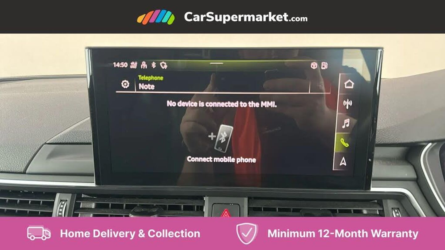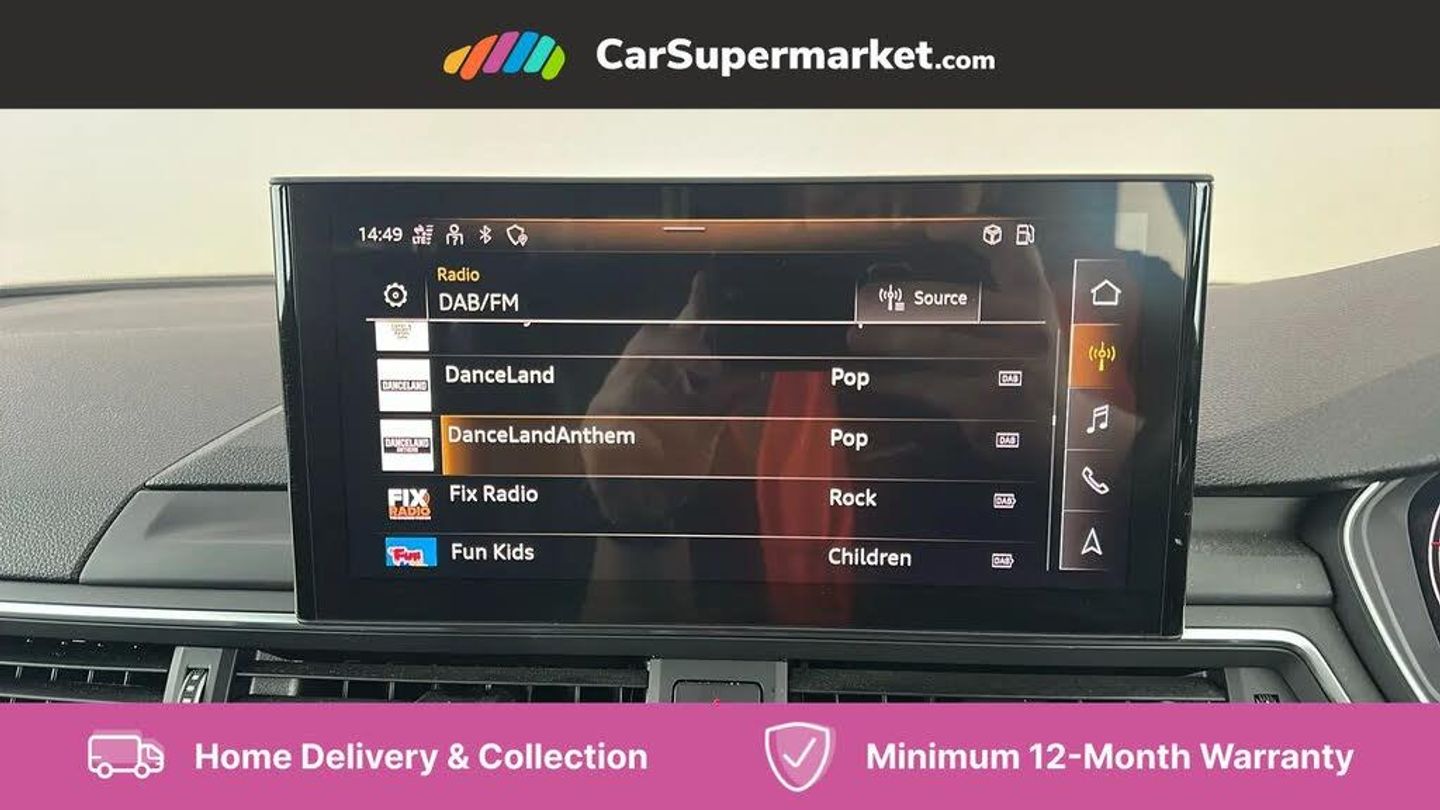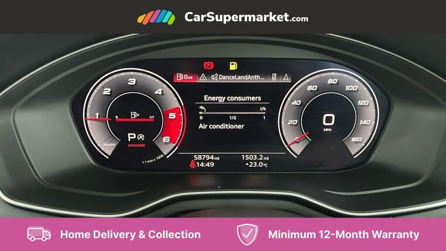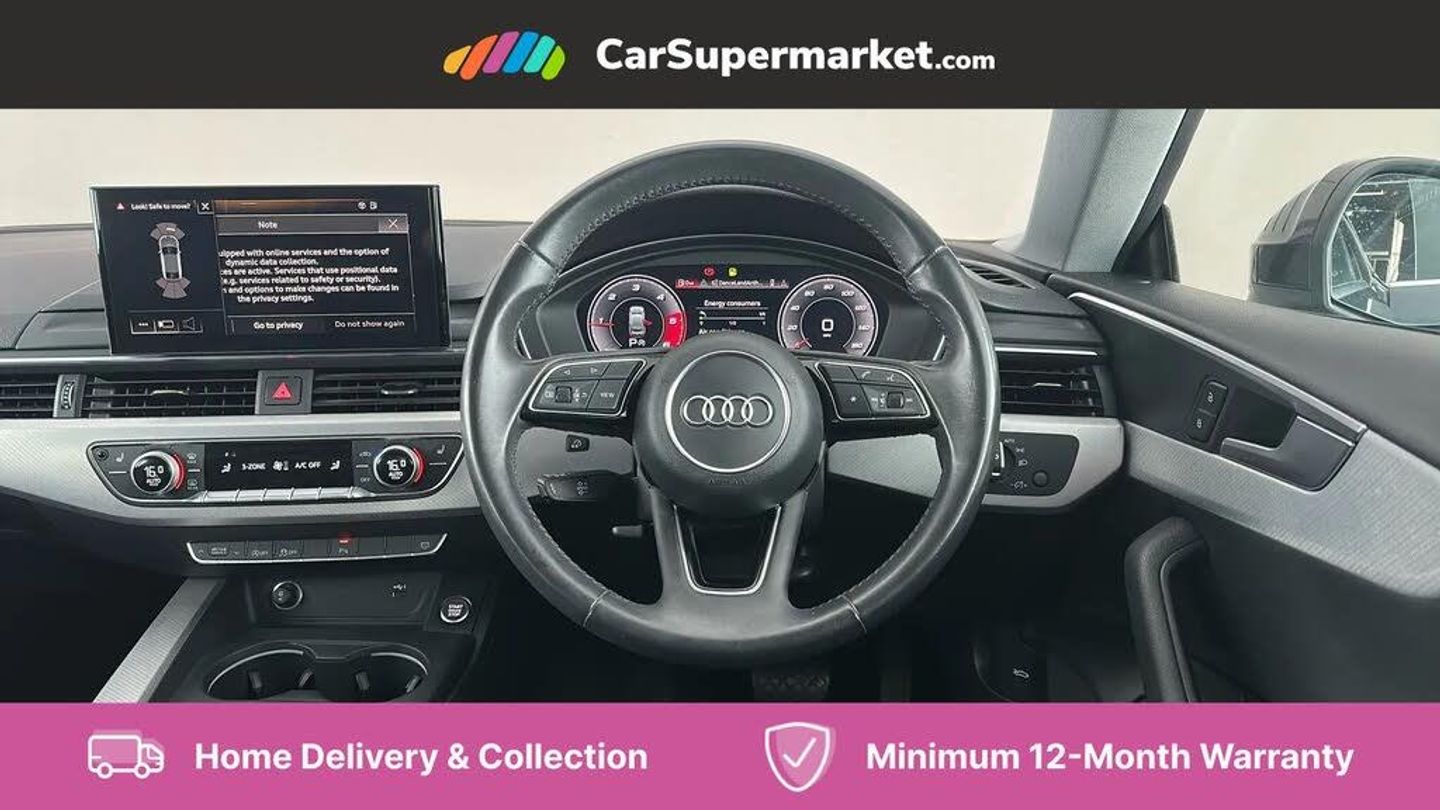 Parking Sensors, Wireless Phone Charging, Apple CarPlay/Android Auto, Audi Virtual Cockpit, Bluetooth, Cruise Control, Sat Nav, Digital Radio, Heated Front Seats;This 2020 Audi A5 TDI Sport boasts an MOT valid until August 2026, offering peace of mind for the coming years. This Euro 6 compliant 2.0 litre diesel model, registered in 2020, comes with a clear vehicle history check and a comprehensive service history, with the last service completed on 15th August 2025 at 58,793 miles. Inside, you'll find the convenience of the Audi Smartphone Interface, compatible with both Android Auto and Apple CarPlay, alongside a Bluetooth Interface for seamless connectivity. The Audi Phone Box provides wireless phone charging, and the heated front seats ensure comfort during colder journeys.