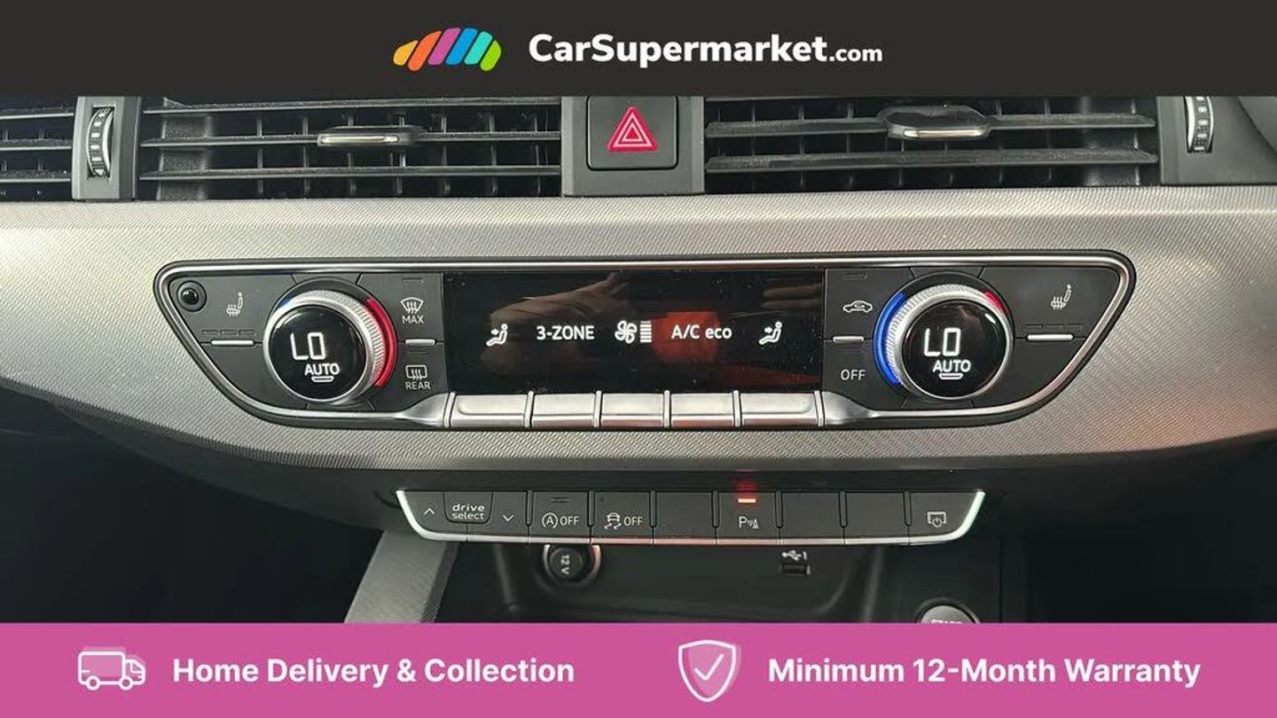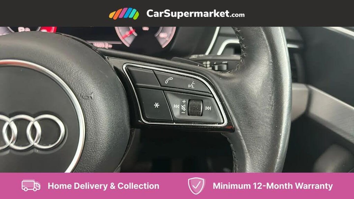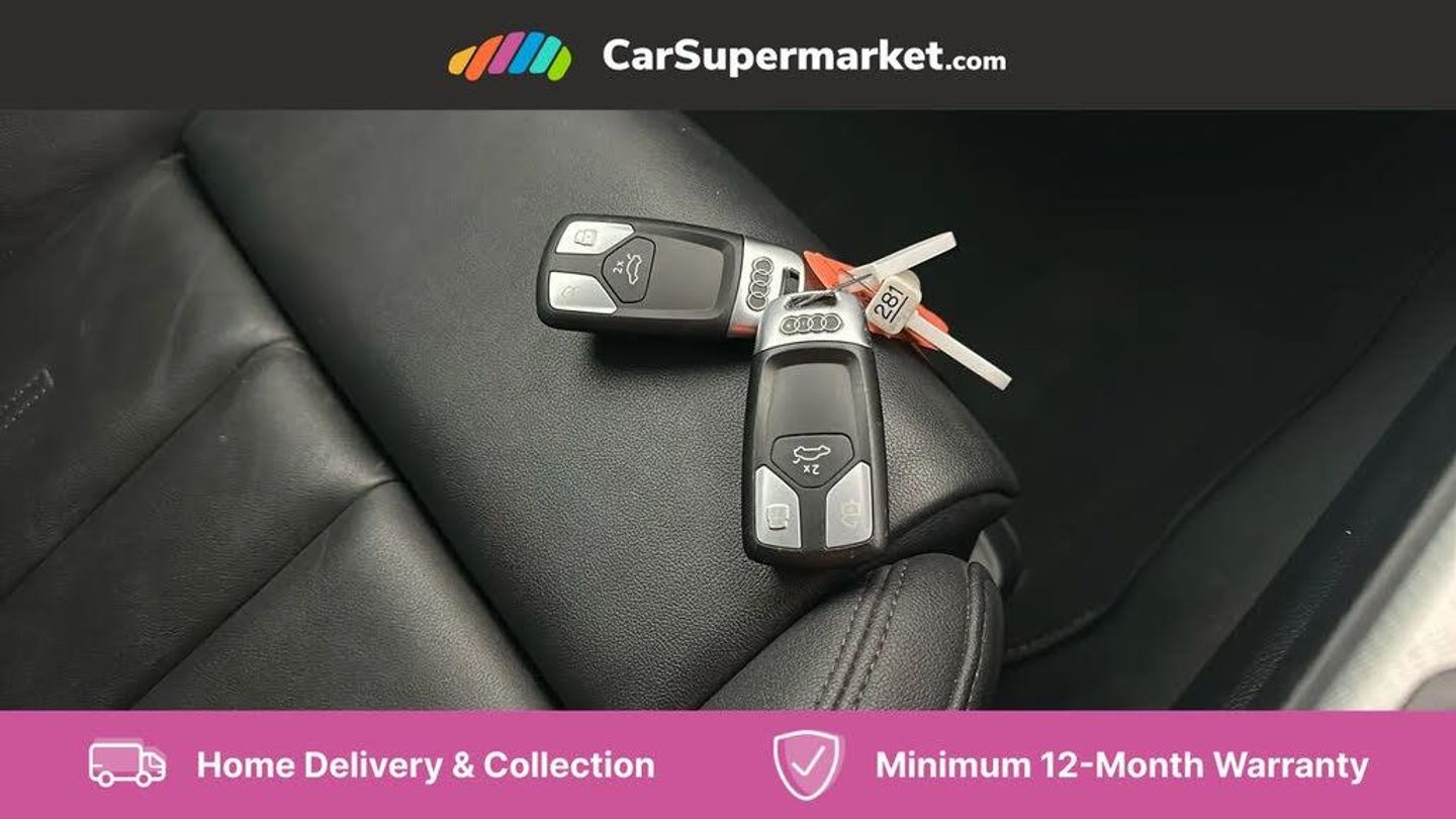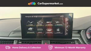 Audi connect safety and service (e-call),Audi drive select (Auto, Comfort, Dynamic, Efficiency and Individual),Audi parking system plus with front and rear sensors,Audi phone box with wireless charging,Audi smartphone interface,Audi virtual cockpit - 12.3" full colour digital instrument cluster,vehicle/engine speed,Radio/media information+Driver assistance systems,Automatic start-stop system with coasting functionality and efficiency programme,Bluetooth interface,Cruise control system with speed limiter with free wheeling capability,Electro-mechanical power steering,Email, calendar and text messages displayed via MMI,MMI nav+ with MMI touch - 10.1" high resolution MMI display, touch sensitive, 3D map, route/country info, dynamic route guide, personal route assist,Power operated tailgate,Rear view camera,Service interval indicator,Voice control system,Comfort dynamic suspension,Diesel particulate filter,8 passive loudspeakers,CD player,DAB digital radio reception,Two additional USB ports for rear passenger in rear centre console,Two SDXC card slots,Auto dimming rear view mirror,Body colour bumpers,Body colour door handles,Body colour side sill trim,Body coloured door mirrors,Electric adjustable heated door mirrors,Electric folding door mirrors,Electric front windows,Front fog lights,LED headlights and rear lights with LED daytime running lights,Matt aluminium silver tailpipe trim,Radiator grille and air inlets in titanium black with matt aluminium silver inserts,Rain and light sensors,Rear diffuser in matt titanium black with trim strip in matt aluminium silver,Sport front and rear bumpers with side skirts,Towbar preparation,Windscreen with acoustic glazing,3 spoke high multi-function leather sport steering wheel with paddle shift and height and reach adjustable,4 way electric lumbar support for driver and front passenger,40/20/40 split folding 3 seater rear bench seat,Deluxe 3 zone electronic climate control,Door sill trims with aluminium inlay,Front centre armrest,Front head restraints,Heated front seats,ISOFIX child seat mounting and top tether,Luggage compartment mat,Manual seat adjustment,Rear headrests,Sunvisors with vanity mirrors,Twin leather upholstery + front sports seats,LED interior light pack - A5/RS5,3x3 point rear seatbelts,6 airbags - Driver, front passenger, curtain and side airbags,Electromechanical parking brake,Electronic Stabilisation Control (ESC) including ABS, ASR and EDL,Front passenger airbag deactivation,Height adjustable front seatbelts,Hill hold assist,Multi collision brake assist,Pop-up bonnet for pedestrian protection,Pre sense city,Seatbelt monitoring,Tyre pressure warning,Variable restraint system,Warning triangle and first aid kit,Anti theft alarm system,Anti theft wheel bolts,Immobiliser,Keyless Go,Remote central locking,Aluminium ellipse silver inlays,Tool kit,Tyre repair kit