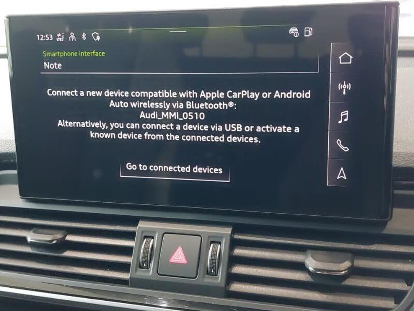 Audi virtual cockpit plus with 12.3" screen and three different layout designs, MMI navigation plus with 10.1" touch screen, Heated front seats, LED interior light pack - Q5, High gloss pack - Q5, Audi drive select, Audi connect safety and service (e-call), Acoustic front and rear parking sensor, Audi wireless smartphone interface, Bluetooth interface, Camera based traffic sign recognition, Lane departure warning, Power tailgate, Reversing camera, Voice control system with Audi hotword activation "Hey Audi", S line sports suspension, Quattro on demand, 2 x USB charging port with aux input socket, LED headlights and LED tail lights, LED 3rd brake light