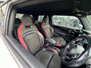 12V Socket in Centre Console, 17in Alloy Wheels - Track Spoke in Black, 3 Point Seatbelts on all Seats, 4 Lashing Eyes in Luggage Compartment, 4 Speakers - in Front Door Trims and Underneath Front Seats, 6.5in Screen with LED Ring, Air Conditioning - Manual, Airbags, Alarm System, Anti-Lock Braking System - ABS, Automatic Headlight Activation Switch, Bluetooth for Compatible Mobile Phone - with Audio Streaming, Bonnet Scoop, Carbon Black Colour Line - Knee Roll and Door Armrests, Chrome Highlights, Cruise Control with Brake Function, Cup Holders, Door Storage Compartments, Dynamic Brake Lights, Dynamic Stability Control - DSC, Electric Windows - Front, Electro-Mechanical Steering with Speed Dependant Steering Assistance, Electronic Vehicle Immobiliser, Exhaust Tailpipe - Double - Central with Chrome Finishers, FM Tuner and DAB Digital Radio, Foldable Rear Seats 60-40, Front and Rear ISOFIX - including Front Passenger Airbag Deactivation, Fuel Filler Cap in Chrome, Gearshift Paddles, Glove Compartment, Headliner - Anthracite, Heated Rear Window, Heated Windscreen Washer Jets, Instrument Cluster, Interior Lighting, Interior Surface - Black Chequered, John Cooper Works Aerodynamic Kit, John Cooper Works Leather Steering Wheel, John Cooper Works Roof Spoiler, John Cooper Works Sport Seats, LED Headlights with Closed Ring as Daytime Driving Lights, LED Reading Lights - Vanity Mirror Lights - Front Footwell Lights - Spotlights on Front Seats, Leatherette Gearshift Lever and Handbrake Gaiters, MINI E-Call, MINI Logo Projection on Floor from Drivers Exterior Mirror, MINI TeleServices, Mechanical Seat Adjustment, Model Logo Cooper S on Right of Tailgate, Multifunction Controls for Steering Wheel, On-Board Computer, Performance Control, Radiator Grille - Chrome Border with Honeycomb Structure - including S Badge, Rain Sensor Window Wipers, Rear Fog Light, Rear LED Lights with Union Jack Design, Rear Window Wiper, Roof and Mirror Caps - Body-Colour, Side Scuttle Panels with Integrated Indicators, Start-Stop Toggle including Keyless Go, Steering Column Height and Length Adjustment, Storage - Pockets on Back of Front Seats, Sun Visor with Vanity Mirrors, Sun-Heat Protection Glass, Tool Kit in Luggage Compartment, Two-Tone Horn, Tyre Pressure Monitoring System, White Direction Indicators Lights, Comfort Plus Pack, Dinamica-Leather - Carbon Black, Navigation Pack, Heated Front Windscreen, MINI Driving Modes, Darkened Rear Glass, Bonnet Stripes - Black, Roof and Mirror Caps - Black