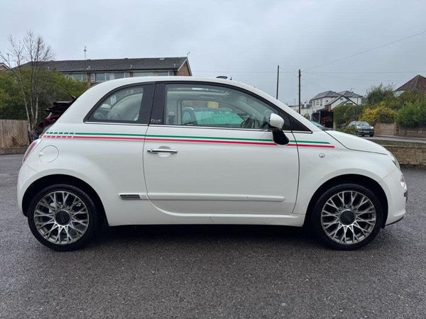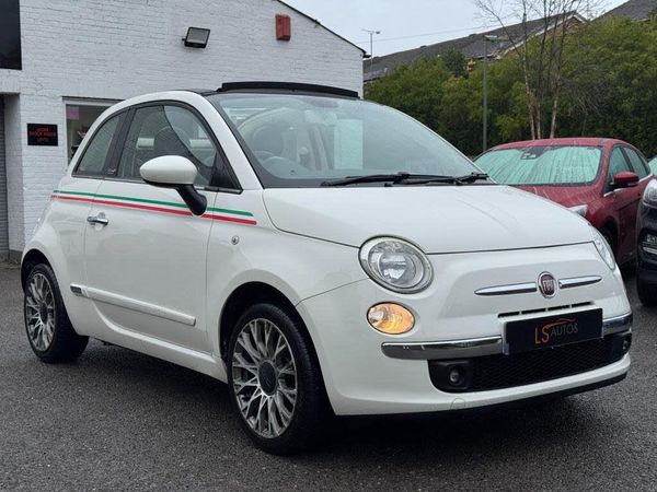 15in Alloy Wheels - 4WQ,Bumpers - Chrome Protectors,Spoiler Integrated with Soft Top,ABS - Anti-Lock Braking System,ASR - Anti-Slip Regulation,Airbags - Driver,Airbags - Front Side,Airbags - Passenger,Blue&Me - Hands Free System with USB Port,Body Coloured Bumpers,Body Coloured Door Mirrors,Bumpers - Chrome Inserts,Chrome Exhaust Tailpipe,Chrome Kit,Chrome Window Contours,Door Handles - Chrome,Drivers Knee Airbag,EBD - Electronic Brakeforce Distribution,ESP - Electronic Stability Programme,Electric Front Windows,Electrically Adjustable Heated Door Mirrors,Exterior Temperature Sensor,Head Restraints - Front Height Adjustment,Headlights - Height Adjustable,Heated Rear Window,Height Adjustable Drivers Seat,Hill Holder,Hood - Black,ISOFIX Child Seat Attachments,Lounge Interior Trim,MSR - Motor Slip Regulation,Passenger Seat with Under Seat Compartment,Power Steering - Dualdrive Electric,Radio-CD and MP3 Player,Rear Parking Sensors,Remote Central Locking,Seats - 50-50 Split Folding Rear,Seats - Passengers Back Pocket,Steering Wheel - Height Adjustment,Steering Wheel - Leather with Audio Controls,Steering Wheel Audio Controls,Sunvisor - Drivers with Mirror,USB Port,Window Airbags,12V Socket,15in Alloy Wheels,15in Alloy Wheels - 4WQ,Black ambience,Black soft- top,Body Colour Door Mirrors,Bumpers - Chrome Protectors,Climate Control - Automatic Dual Zone,Door Mirrors - Electrically Adjustable,Fog Lights,Head Restraints - Rear,Ivory ambience,Ivory soft top,Manual Air Conditioning,Red soft top,Seats - Folding Rear Back,Space Saver Spare Wheel,Split Folding 50:50 Rear Seat,Spoiler Integrated with Soft Top,Sports Kit,Sun Blinds with Small Courtesy Mirror,Climate Control - Automatic Dual Zone,Sun Blinds with Small Courtesy Mirror,Fog Lights,Space Saver Spare Wheel,Hi-Fi Sound System with Subwoofer,16in Alloy Wheels - 5EQ,Body Coloured Side Rubbing Strips with 500 Logo,Cloth - Ivory-Black with Black Ambience and Red Roof,Bossa Nova White
