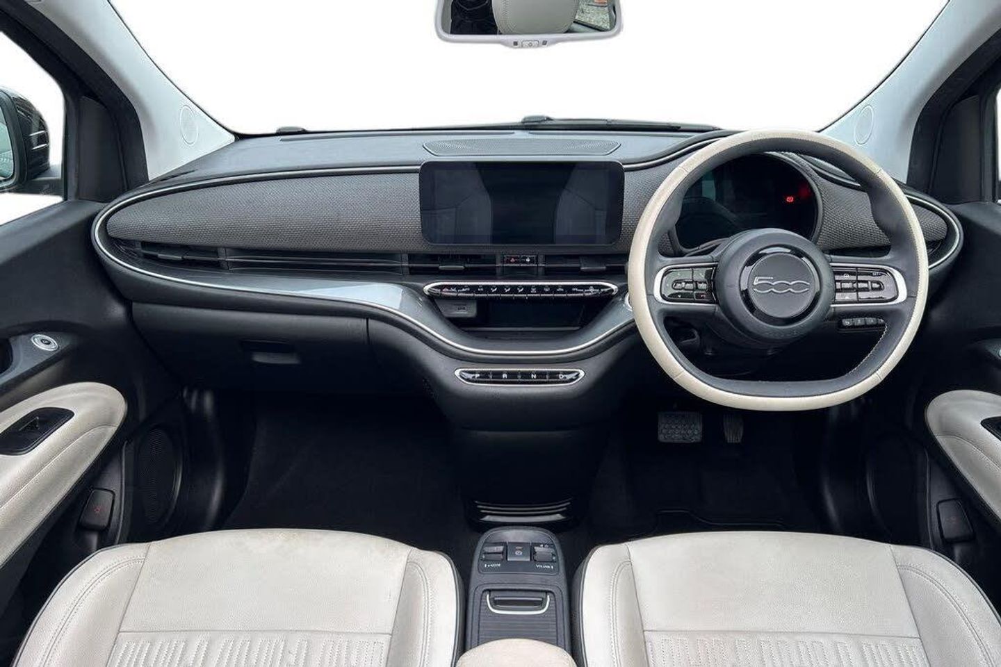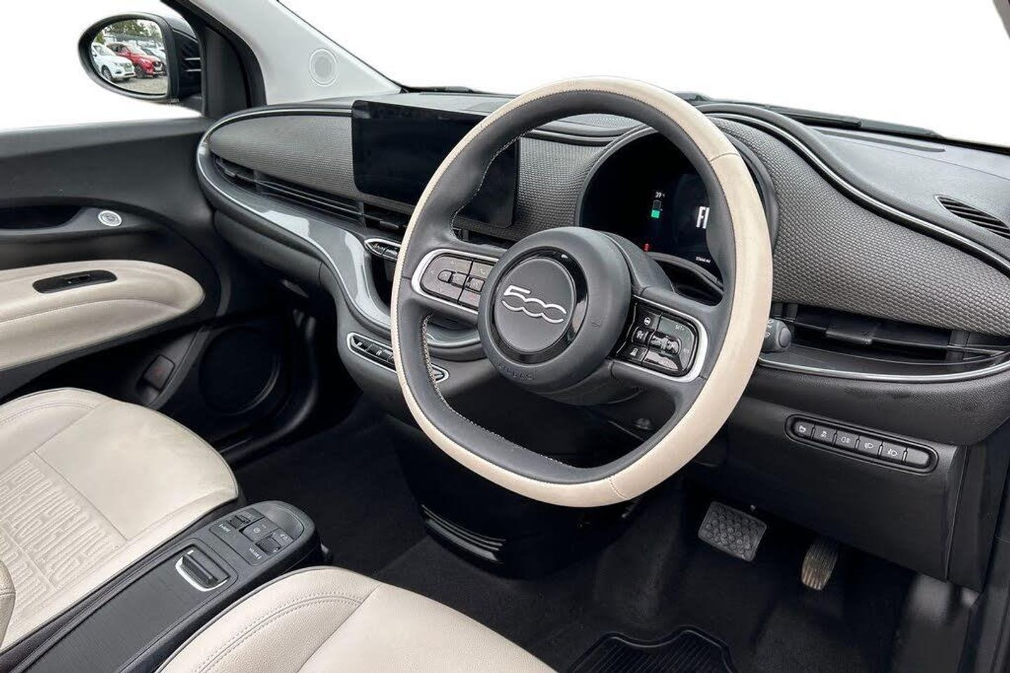 10.25in Infotainment Touchscreen with Navigation, 12V Socket - Front, 17in Alloy Wheels, 360 Degree Parking Sensors, 6-Way Manually Adjustable Front Seats, 7in TFT Digital Instrument Cluster, ABS - Anti-Lock Braking System, Airbags - Driver, Airbags - Passenger, Attention Assist, Automatic Air Conditioning, Automatic High-Low Beam, Autonomous Emergency Braking - AEB, BAS - Brake Assistance System, Bi-Colour Eco-Leather Steering Wheel with Audio Control, Blind Spot Monitoring, Central Console with Sliding Door Closing Storage Space, Charging Cable - Mode 3, Chrome Exterior Accents, Chrome Window Surrounding, Cruise Control, DAB Radio, Dusk Sensor, E-Call - SOS, EV Mode Selector, Easy Wallbox Home Charging, Eco Leather Seats, Eco-Leather Steering Wheel, Electric Adjustable Wing Mirror with Defrosting Function, Electric Windows - Driver and Passenger One Touch Up-Down, Electrochromatic Dipping Rearview Mirror, Electronic Parking Brake, Fiat Co-Driver - Autonomous Driving L2 with IACC - Intelligent Adaptive Cruise Control and Lane Centering, Floor Mats with 500 logo, Front Armrest, Intelligent Speed Assist and Traffic Sign Recognition, Keyless Entry, Keyless Start, Kick Plate, LED Daytime Running Lights, LED Headlights, LED Rear Lights, Lane Centering Assist, Rack and Pinion with Electric Power Steering, Rain Sensor, Rear Parking Sensors, Rear View Camera, Seats - 50-50 Split - Rear, Smartphone Cradle with Bluetooth, Speakers x6, Steering Wheel Audio Controls, Vehicle Start Button, Wireless Carplay and Android Auto, Wireless Mobile Phone Charger, x2 Front USB Ports, Easy Wallbox Home Charging, Winter Pack, Eco-leather - Beige - Grey Braided Dashboard - Monogram Roof