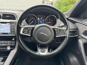 Ultimate Black, Space Saver Spare Wheel - Steel, Radiator Grille - Gloss Black Insert with Satin Chrome Surround, Lane Keep Assist and Driver Condition Monitor, InControl Secure for Warranty Period, Headlights - LED, Perforated Taurus Leather - Jet with Light Oyster Stitch, Gloss Black Veneer, Delete Powertrain Badge, Carpet Mats - Premium - Jet, Air Quality Sensor, Door Mirrors - Power Folding with Auto-dimming-Signature Approach Lamps and Blacked Side Repeaters, Incontrol Connect Pro Pack, InControl Touch Pro Pack with Meridian Digital Surround Sound System - 825w, InControl Touch Pro Pack with Meridian Digital Sound System - 380w, Configurable Dynamics, Rear View Camera, Meridian Sound System - 380W, 19in Alloy Wheels - Fan 5-Spoke - Black Finish, Privacy Glass, Black Pack - R-Sport, 12V Power Socket - Front, 12V Power Socket - Rear - Luggage Compartment, 12V Power Socket - Row Two, 19in Alloy Wheels -Bionic Twin 5-Spoke - Grey Diamond Turned Finish, 2-Zone Climate Control, 3 Month Trial Data Plan, 3-Flash Lane Change Indicators, 40-20-40 Split Fold Rear Seat, 80 Watt, ABS - Anti-locking Braking System, AEB - Autonomous Emergency Braking, AM-FM Radio, ASPC - All Surface Progress Control, Airbags - Driver, Airbags - Front Side, Airbags - Full Length Side Curtain, Airbags - Passenger, Analogue Dials with 5in Full Colour TFT Display, Approach Illumination - Automatic via Remote, Auto-Dimming Interior Rear View Mirror, Automatic Headlight On, Aux-In - 3.5mm, Bluetooth Audio Streaming, Bluetooth Telephone Connectivity, Bootlid - Powertrain Badging - 20d AWD, Bootlid Jaguar Leaper and Wordmarque, Bootlid Nameplate Badge, Brake Pad Wear Indicator, Bright Metallic Sports Pedals, Bumper Blade - Satin Chrome, Bumper Outer Grille Bezel and Mesh - Grained Black, Capacitive Touchscreen, Carpet Mats - Jet, Centre Console - Side Stowage, Centre Console - Storage Surround Finishers - Satin Chrome, Centre Lower Valence - Grained Black, Cruise Control with Adaptive Speed Limiter, DAB Radio + and DMB, Daytime Running Lights - LED, Door Claddings - Body Coloured with Grained Black Finisher - R-Sport, Door Mirrors - Body Coloured, Door Mirrors - Electric Adjustment-Heated with Blacked Side Repeaters, Door Trim - Luxtec, Dynamic Route Guidance, Dynamic Stability Control - DSC, Dynamic Volume Control, EBA - Emergency Brake Assist, ECO Data, EPB - Electric Parking Brake, Electric Windows - Front and Rear with One-Touch Open-Close and Anti-Trap, Etched Aluminium Veneer, Fold Flat 6 Degrees - Row 2 Seats, Follow Me Home Lighting, Front Armrest with Storage Compartment, Front Fog Lights, Front Parking Aid, Glove Compartment Lockable, Glovebox Finisher with Jaguar Wordmark, Hazard Lights Under Heavy Braking, Head Restraint - Rear Centre, Headlight Power Wash, Headlights - Self Leveling, Headlights - Xenon, Headlining - Morzine - Jet, Headrest - Manual Adjustable, Heat Insulating Glass - Green All-round, Heated Front Seats, Hill Launch Assist, ISOFIX Rear, InControl - Remote Esstentials, InControl Apps, InControl Protect, InControl Remote Premium, InControl Touch Navigation - SD, InControl WiFi, Instrument Panel Topper - Cuir Grain Wrapped, Instrument Panel Upper Fascia - Jet, Interior Front Door Handles with Separate Locking Switches, Interior Mood Lighting, Jaguar Sequential Shift, Jaguar Smart Key System with Keyless Start, Jaguar Sound System - 180W, Jaguar Tyre Repair System, JaguarDrive Control with Dynamic - Normal - ECO and Winter, JaguarSense - Overhead Light Console, JaguarVoice, LED Tail Lights, Lane Departure Warning, Loadbay - Premium Luggage Tie Downs, Metal Treadplates with R-Sport Branding, Optimised Assistance Call, Outside Temperature Gauge, Passive Front Head Restraints - Whiplash Protection, Perimeter Alarm, Power Operated Child Locks, Power Steering - Speed Sensitive, Powered Tailgate, R-Sport Front Bumper, Radiator Grille - Grained Black Insert with Satin Chrome Surround, Rain Sensing Windscreen Wipers, Rear Armrest with Cupholder, Rear Bumpers with Corners - Body Coloured - R-Sport, Rear Cup Holders in Armrest, Rear Parking Aid, Remote Control Central Locking, Reversible Boot Floor - Carpet-Rubber, Roof Rails - Gloss Black, Row 2 Air Vents, SOS Emergency Call with Automatic Collision Detection, Satin Chrome Frame - Touchscreen, Seat - Cushion Height - Manual, Seat - Squab Recline - Manual, Seat Belt Reminder, Seat Occupant Detector - Passenger, Seats - Front - Back Map Pockets, Seats - Front 8x8 Way Manual Adjustment, Seats - Front Height Adjustable - Manual, Seats - Sports, Shopping Bag Hook in Trunk, Side Fender Vents - Satin Chrome - R-Sport Badge, Side Window Finisher - Gloss Black, Single Sided Twin Tailpipes with 75mm Finishers, Speakers x6, Start Up Sequence, Steering Column - Reach and Rake, Steering Wheel - Black Paddles with Illumination, Steering Wheel - Multi-Function, Steering Wheel - R Sport Branded Sport Style Softgrain Leather with Satin Chrome Highlight, Sunglasses Holder in Overhead Console, Text To Speech, Torque Vectoring by Braking - TVBB, Traction Control, Traffic Sign Recognition with Intelligent Speed Limiter, Trailer Stability Control, Trip Computer, Twin Front Cupholders, Tyre Pressure Monitoring System, USB Socket - Row Two - x2, Valet Mode, Valet Mode - Lockable Trunk - Stowage - Glove Box, Variable Intermittent Wipers, Vehicle Immobiliser, Vertical Air Curtains - Body Coloured, Windscreen - Heated with Timer, iPod Integration