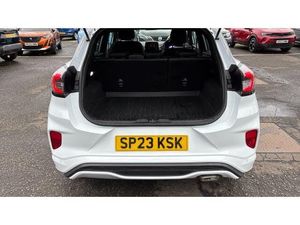 Enjoy sporty efficiency with the 2023 Ford Puma Hatchback 1.0 EcoBoost Hybrid mHEV ST-Line X This 2023 Ford Puma ST-Line X combines sharp styling with advanced mild hybrid technology, making it one of the most popular compact SUVs on the market. With under 9,000 miles and just one owner from new, it is a low-mileage example that has been very well cared for. Powered by the award-winning 1.0 EcoBoost petrol engine with mild hybrid technology, the Puma delivers an efficient yet lively drive. Its compact size makes it ideal for city driving, while the elevated seating position and refined suspension ensure comfort on longer journeys. As the ST-Line X trim, this Puma benefits from a high specification including sports styling, alloy wheels, satellite navigation, digital driver display, rear parking sensors, premium sound system and smartphone connectivity. This particular model also features the Winter Pack, adding heated front seats and a heated steering wheel for extra comfort in colder months. A personalised video is also available from the dealership on request.